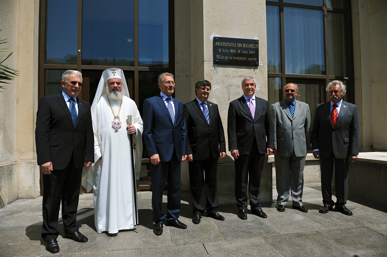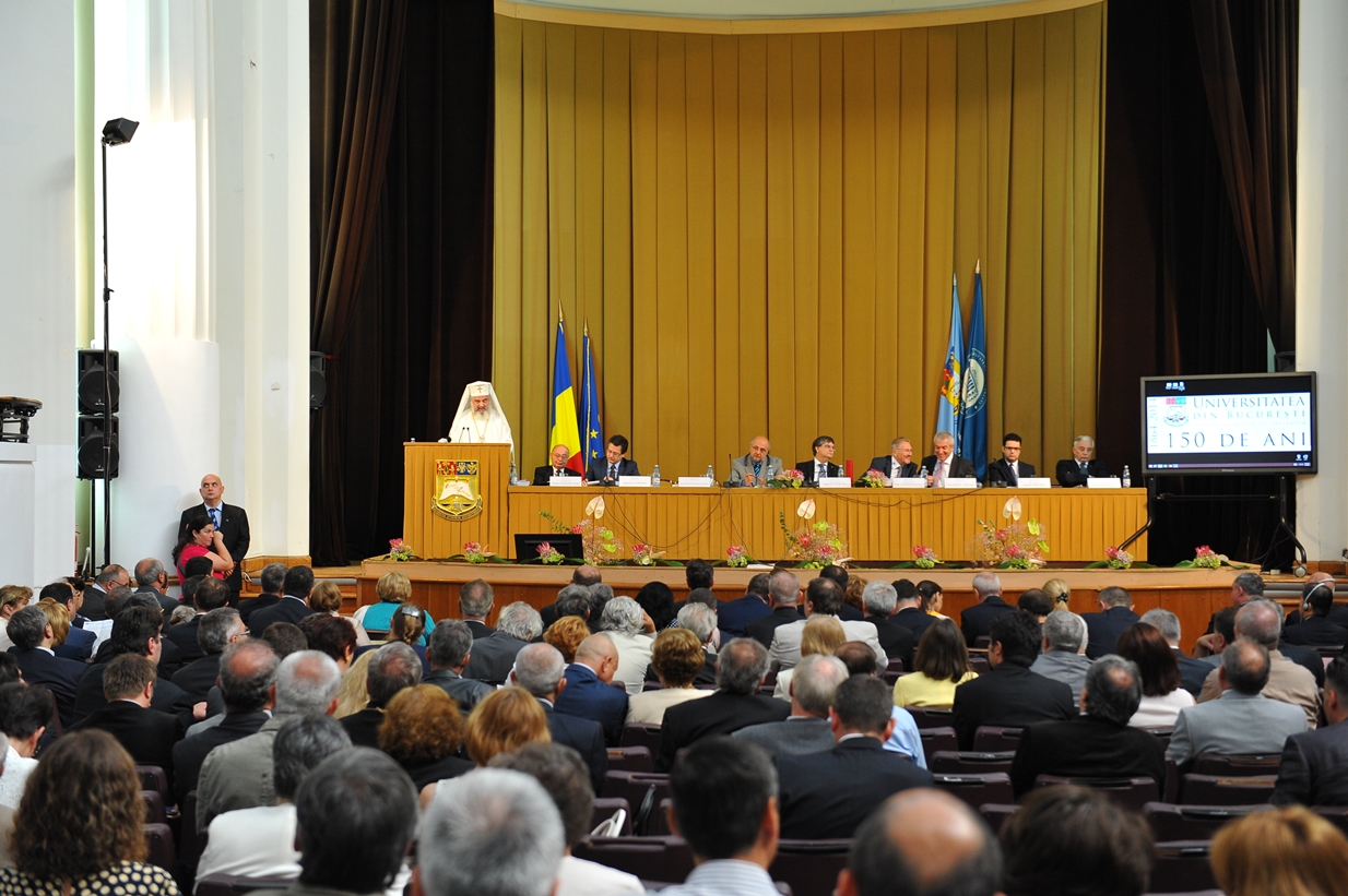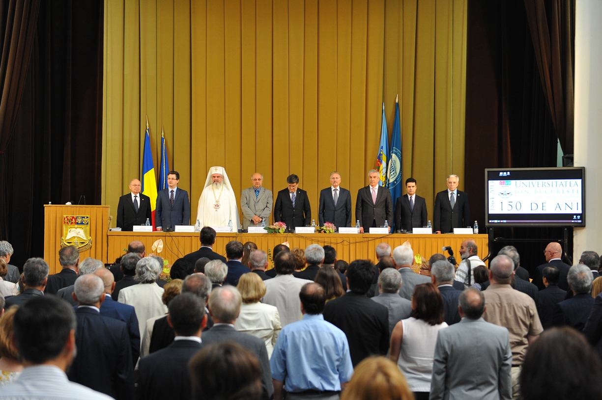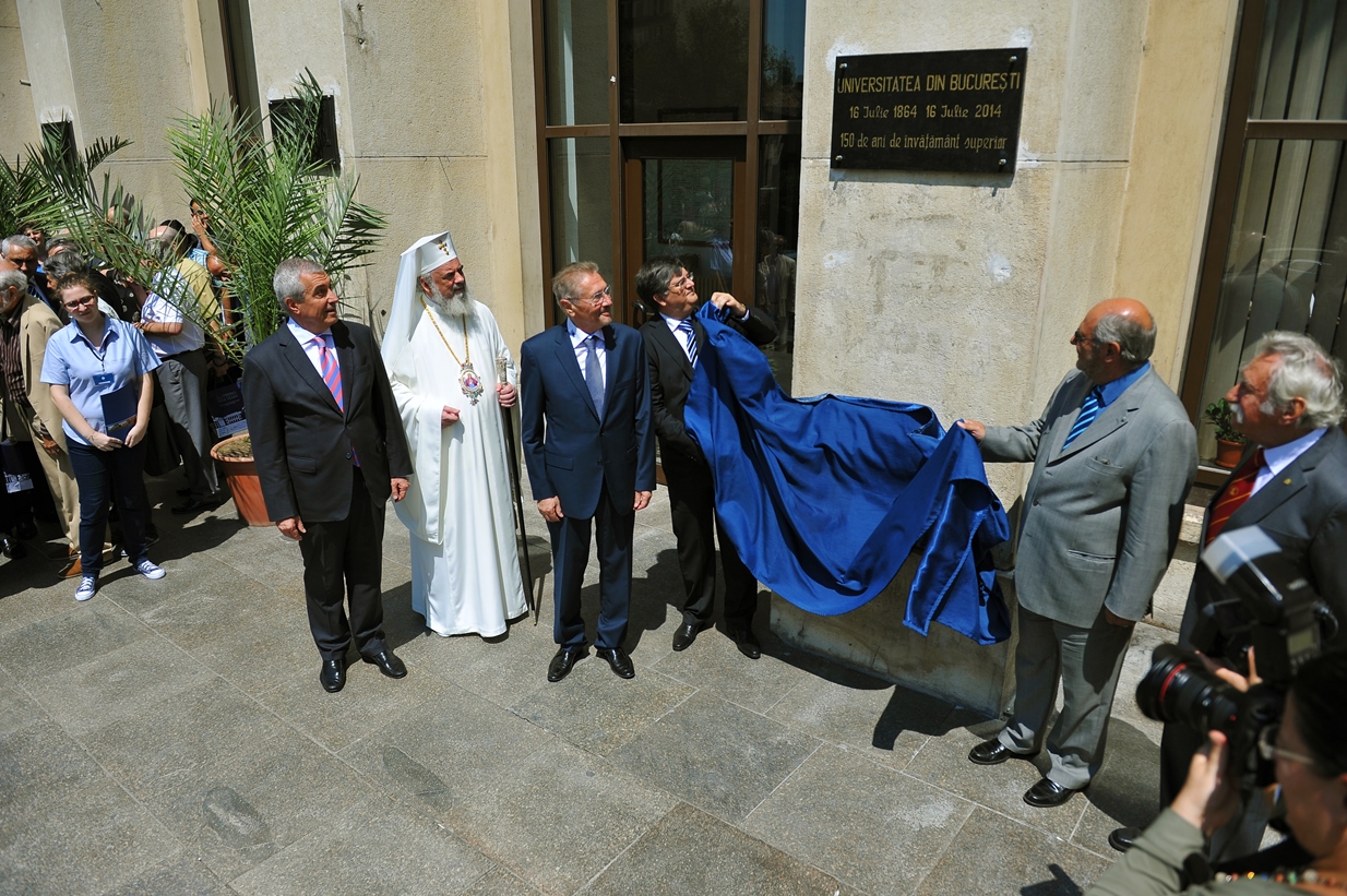 Universitatea din București a aniversat miercuri, 16 iulie 2014,150 de ani de la înființare. Evenimentul a avut loc la Facultatea de Drept, în prezența Preafericitului Părinte Daniel, Patriarhul României, oficialităților statului, ale mediului academic și universitar.
