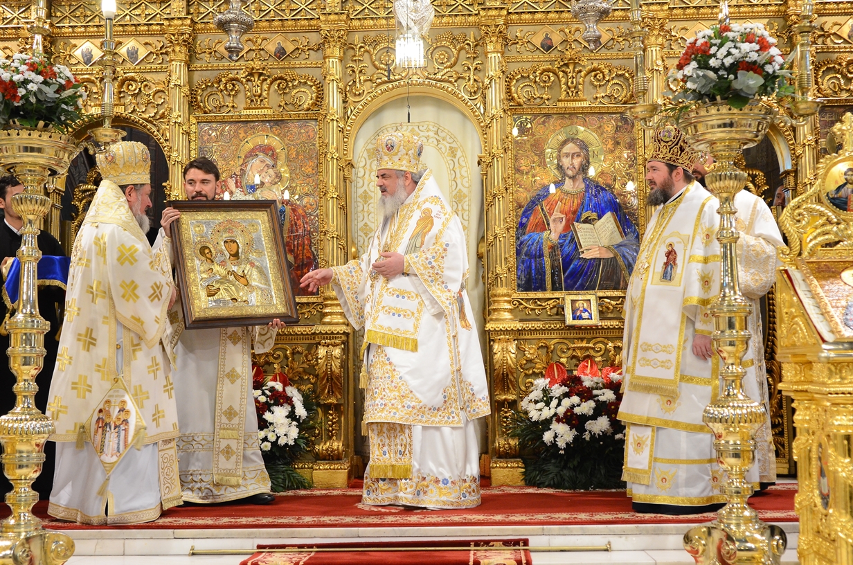 Apoi, Episcopul Oradiei a oferit Întâistătătorului Bisericii Ortodoxe Române, din partea membrilor Sfântului Sinod, un chivot realizat în Atelierele Patriarhiei Române, dar şi o icoană reprezentând pe Maica Domnului.