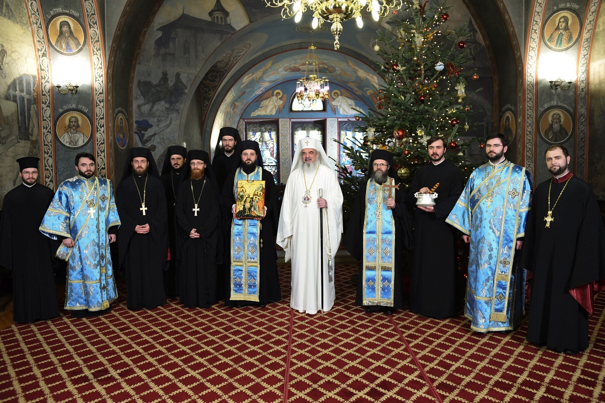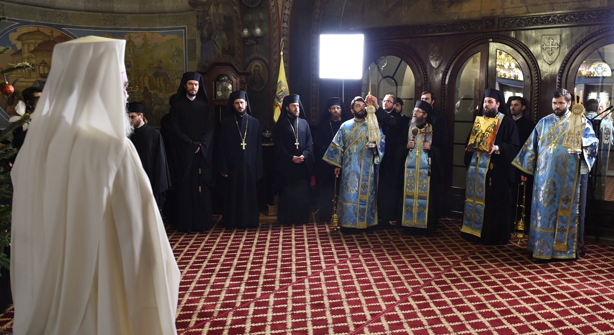 După săvârşirea slujbei Aghesmei celei Mari la Catedrala Patriarhală, soborul preoţilor slujitori şi cântăreţii de la Catedrala Patriarhală a mers la Reşedinţa Patriarhală.