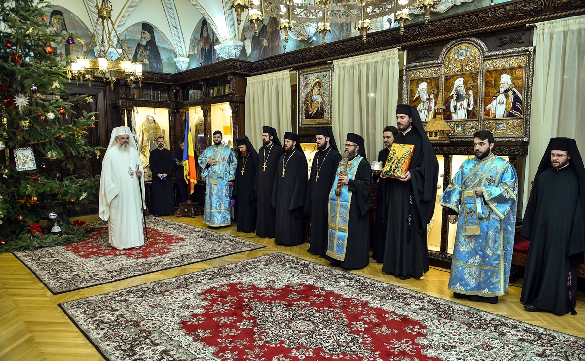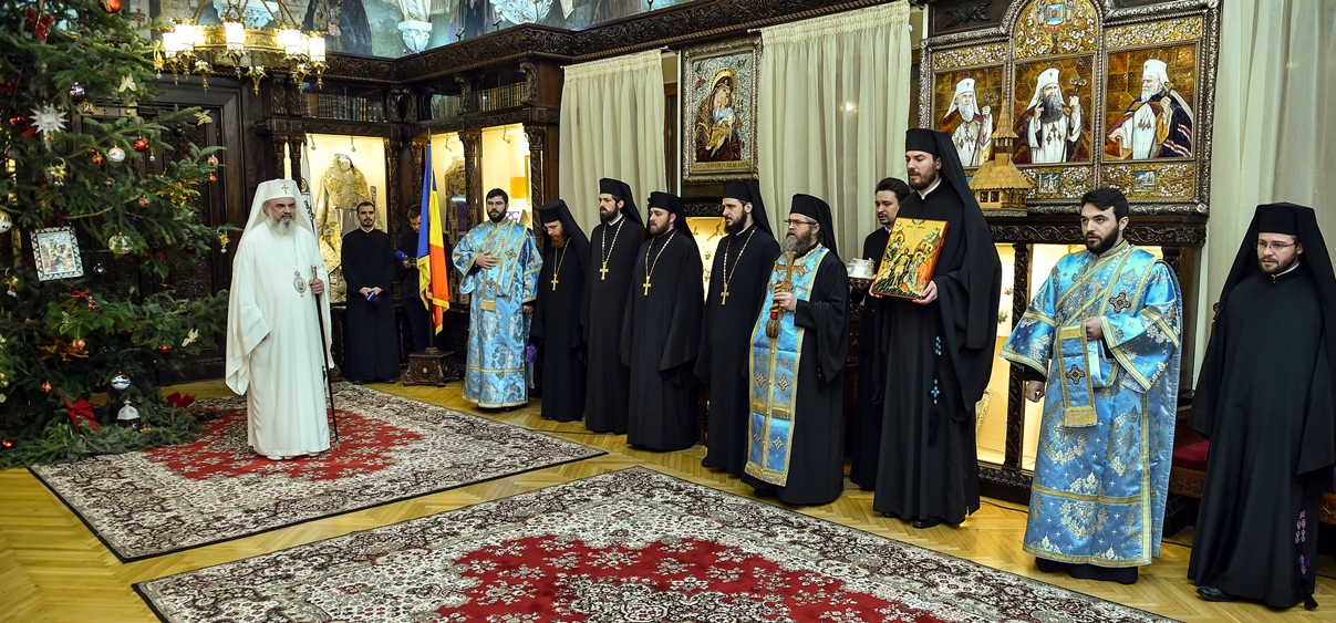 După săvârşirea slujbei Aghesmei celei Mari la Catedrala Patriarhală, soborul preoţilor slujitori şi cântăreţii de la Catedrala Patriarhală au mers la Reşedinţa Patriarhală.