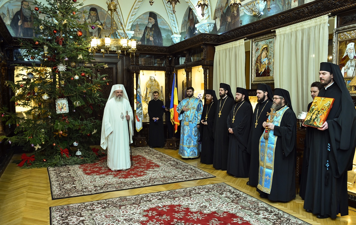 Preoţii slujitori ai Catedralei Patriarhale din Bucureşti au binevestit, marţi, 05 ianuarie 2015, Botezul Domnului, Preafericitului Părinte Daniel, Patriarhul Bisericii Ortodoxe Române, şi au sfinţit cu Aghiasmă Mare încăperile din Reşedinţa Patriarhală.