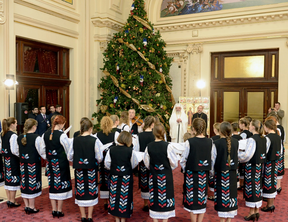 > Ansamblul „Izvoraşul” din Vaslui l-a colindat pe Patriarhul României (20 decembrie 2013)