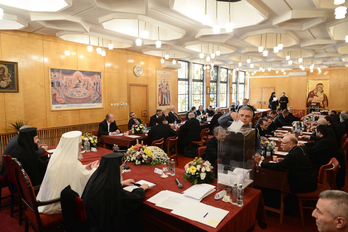 La începutul şedinţei, Preafericitul Părinte Patriarh Daniel, în calitate de Locţiitor de Arhiepiscop al Timişoarei şi Mitropolit al Banatului, a expus cerinţele pastorale ale Mitropoliei Banatului şi a prezentat lista celor 2 ierarhi eligibili pentru slujirea de Arhiepiscop al Timişoarei şi de Mitropolit al Banatului, stabilită de Sinodul Mitropolitan al Mitropoliei Banatului în şedinţa sa de lucru din 6 noiembrie 2014.