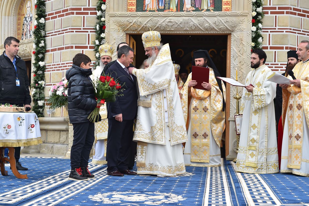 La final, Întâistătătorul Bisericii Ortodoxe Române a apreciat lucrările realizate la așezământul monahal și i-a felicitat pe ctitori.