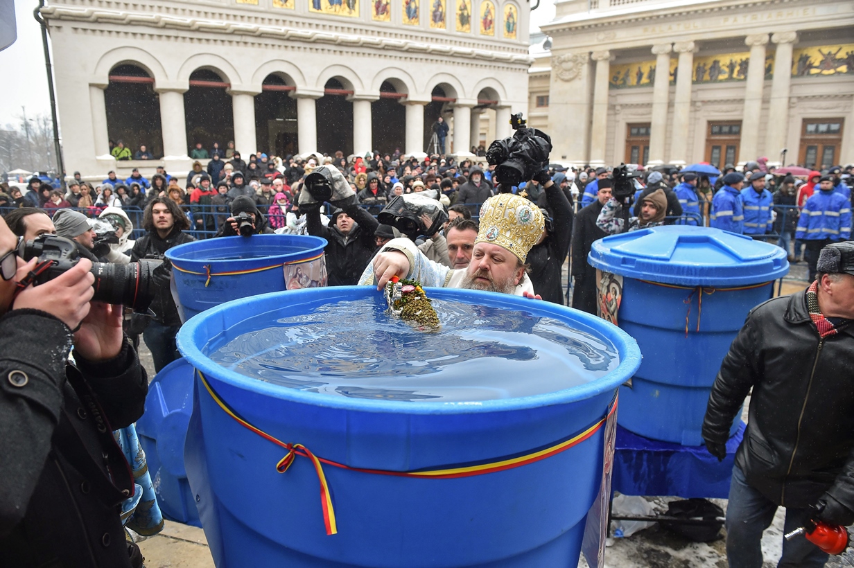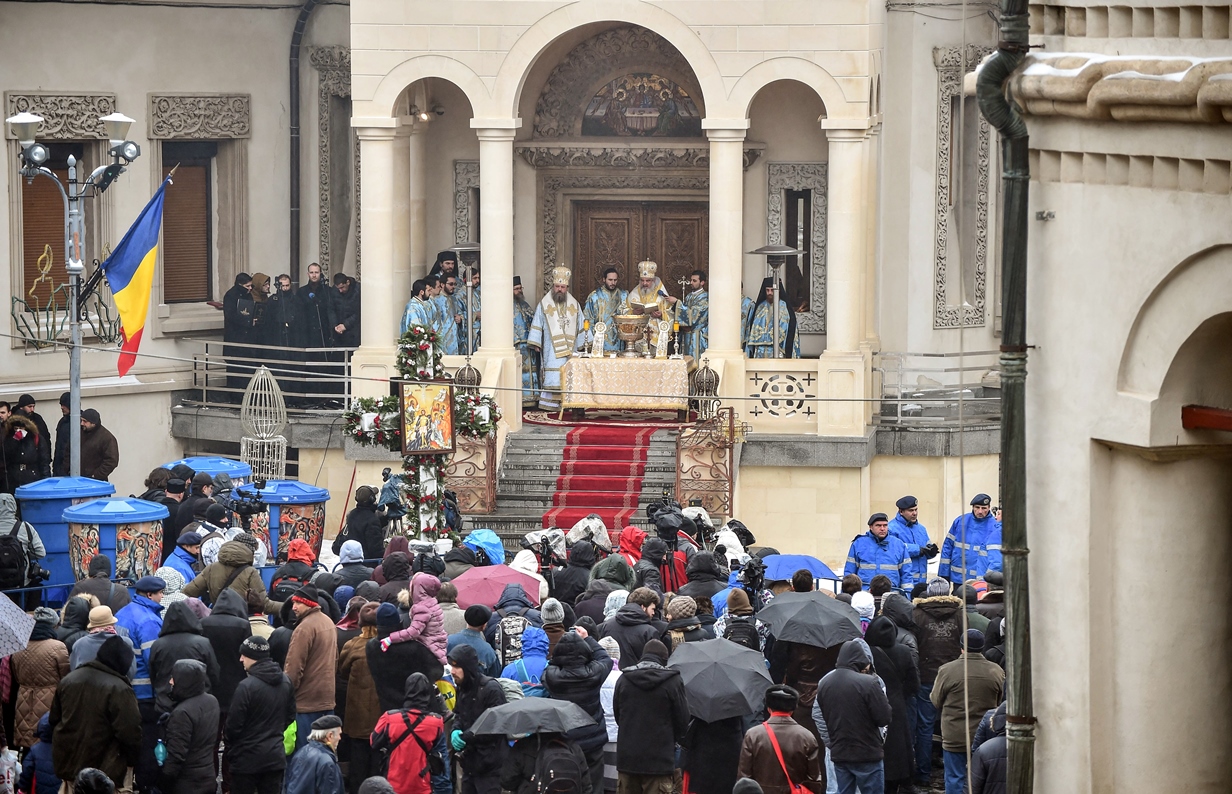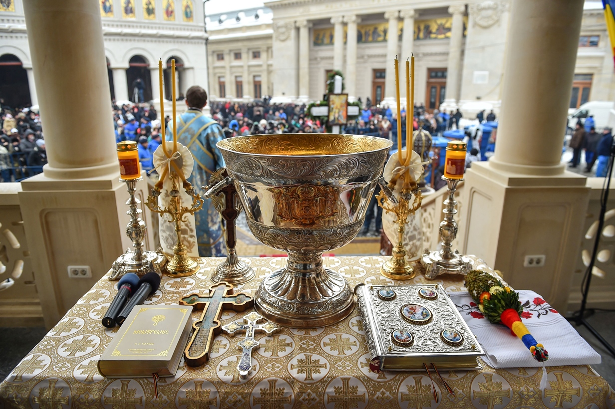 Credincioşii prezenţi au putut lua apa sfinţită din 24 de vase, care au o capacitate de 12.000 de litri. În curtea Catedralei a fost înălţată şi o cruce de gheaţă, împodobită cu cetină de brad, flori şi busuioc.