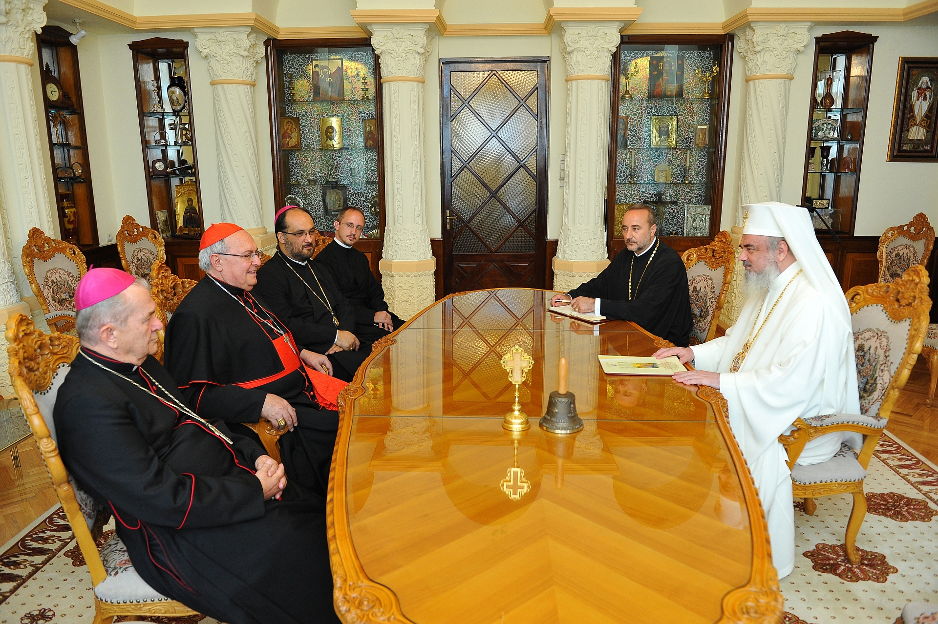 Preafericitul Părinte Patriarh Daniel a primit, astăzi, 30 august 2014, vizita Cardinalului Leonardo Sandri, Prefectul Congregaţiei pentru Bisericile Orientale la Vatican. Eminenţa Sa a fost însoţit Înaltpreasfinţitul Ioan Robu, Arhiepiscop şi Mitropolit romano-catolic de Bucureşti, şi de Preasfinţitul Mihai Frăţilă, Episcop al noii Eparhii Greco-Catolice de Bucureşti.