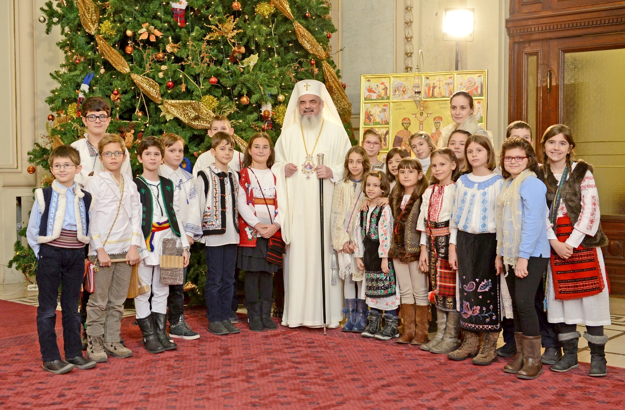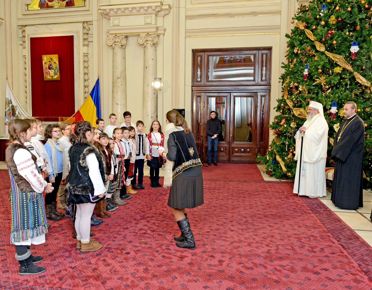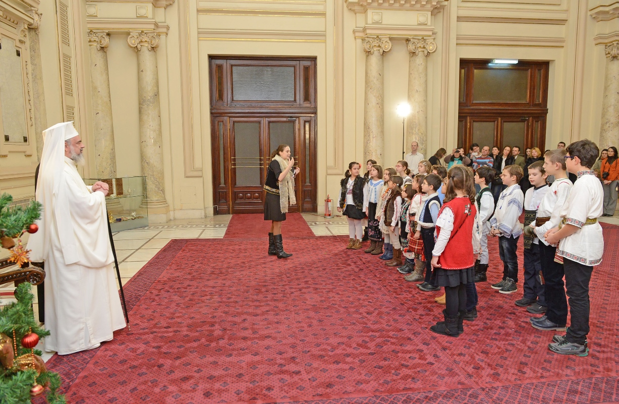 > Colindători de la Şcoala Ortodoxă „Anastasia Popescu” din Bucureşti, la Patriarhie (20 decembrie 2013)