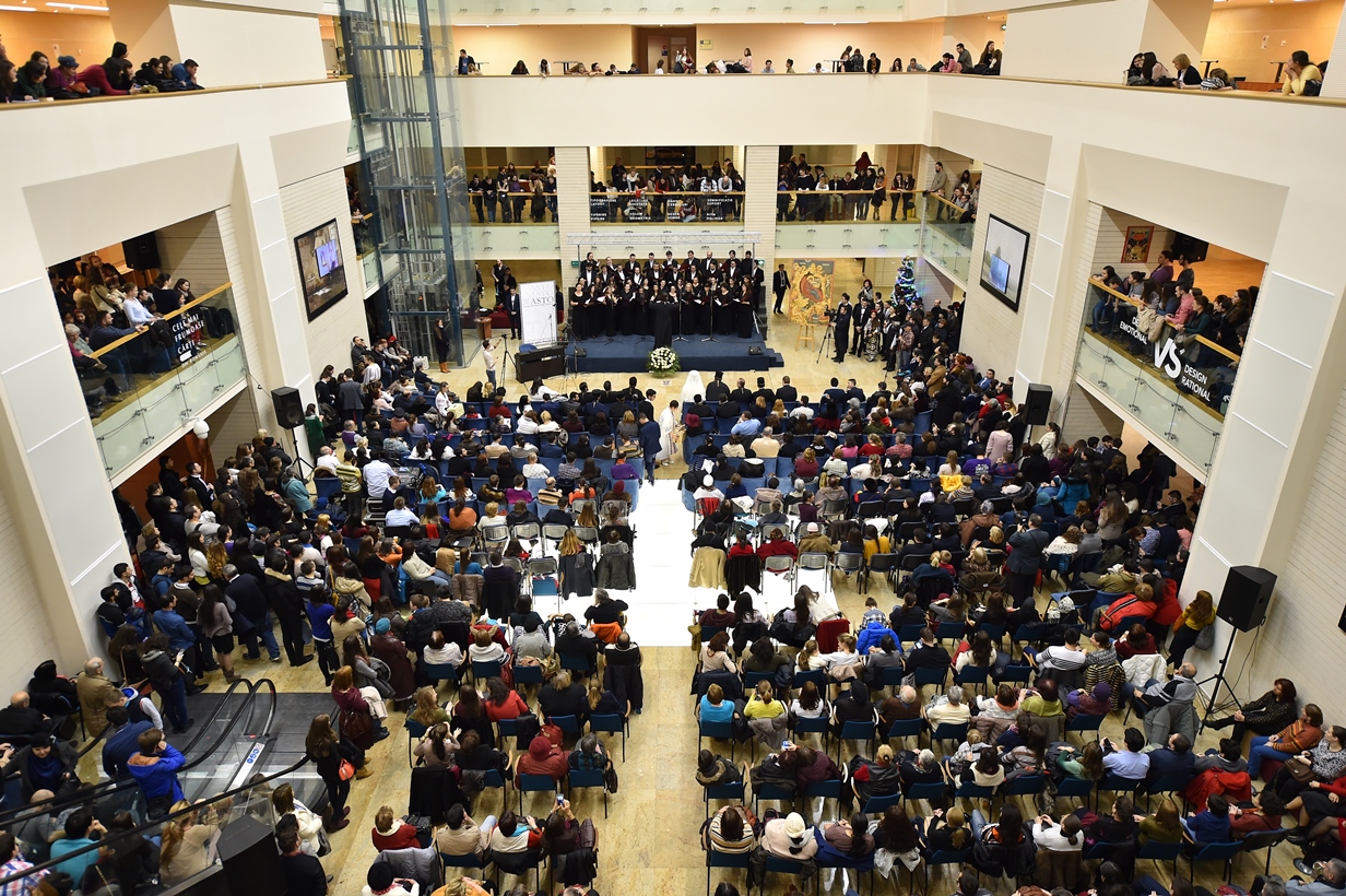 La Biblioteca Naţională a României s-a desfăşurat, luni, 14 decembrie 2015, cu binecuvântarea și în prezența Preafericitului Părinte Daniel, Patriarhul Bisericii Ortodoxe Române, Concertul caritabil După datini colindăm, aflat la a V-a ediţie.