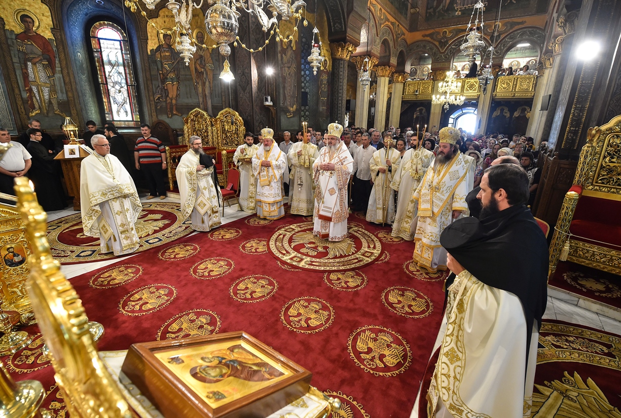 Cu acest prilej, astăzi, 14 iunie 2015, la Catedrala Patriarhală slujba Sfintei Liturghii a fost oficiată de către Preafericitul Părinte Daniel, Patriarhul României. Alături de Preafericirea Sa s-au aflat şi Episcopii Vicari Patriarhali, Preasfinţitul Părinte Varlaam Ploieşteanul şi Preasfinţitul Ieronim Sinaitul.
