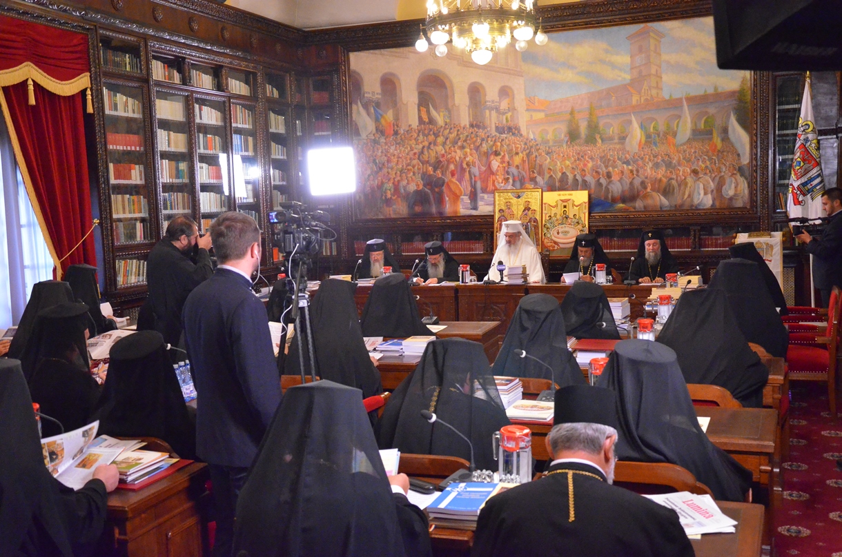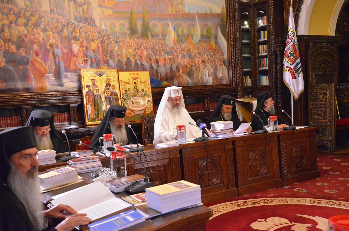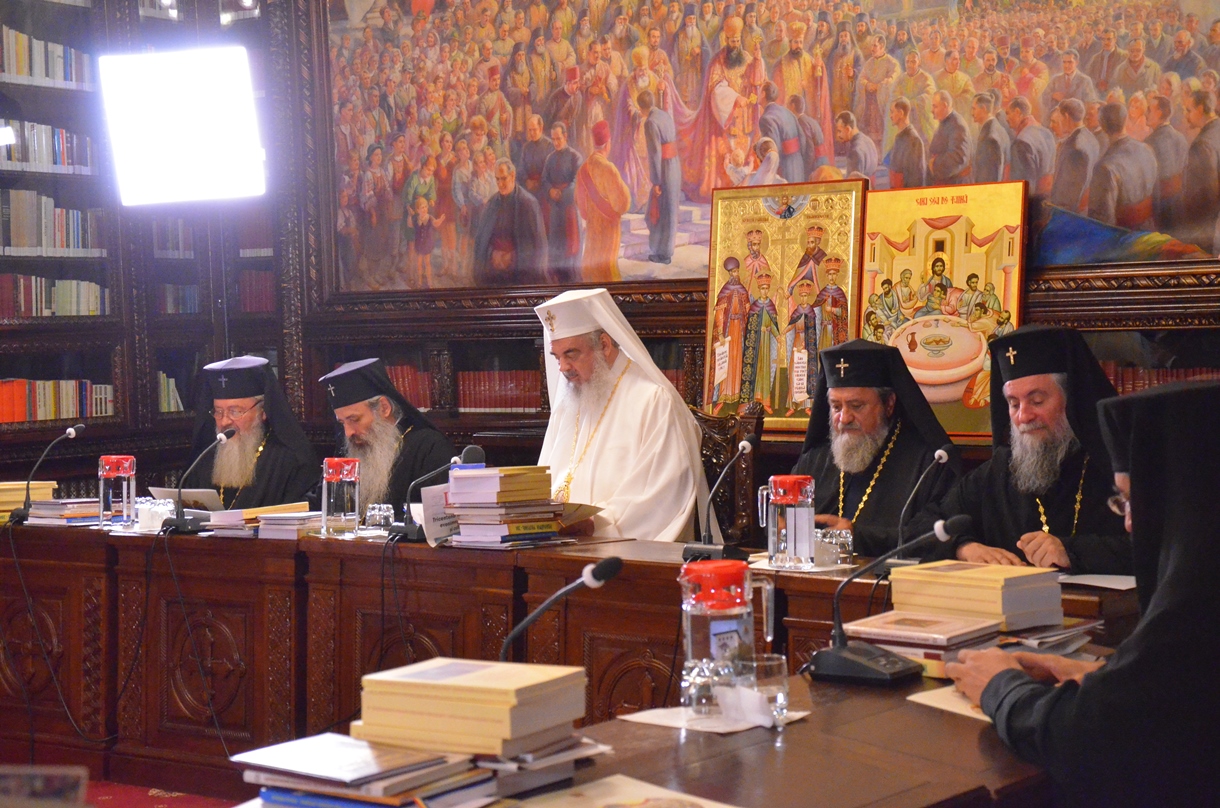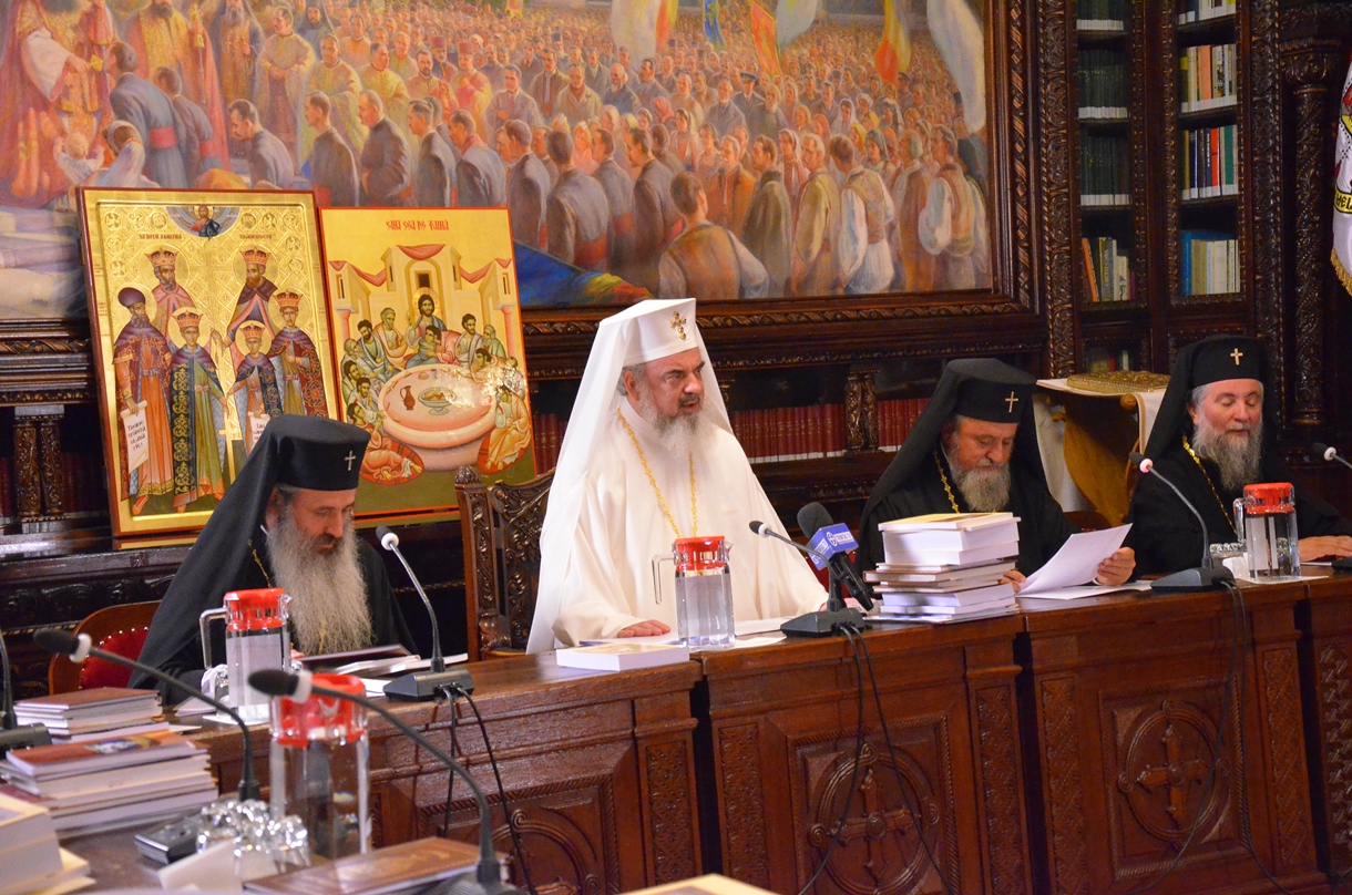 În Sala Sinodală din Reşedinţa Patriarhală are loc astăzi şedinţa de lucru a Sfântului Sinod al Bisericii Ortodoxe Române prezidată de Preafericitul Părinte Patriarh Daniel.