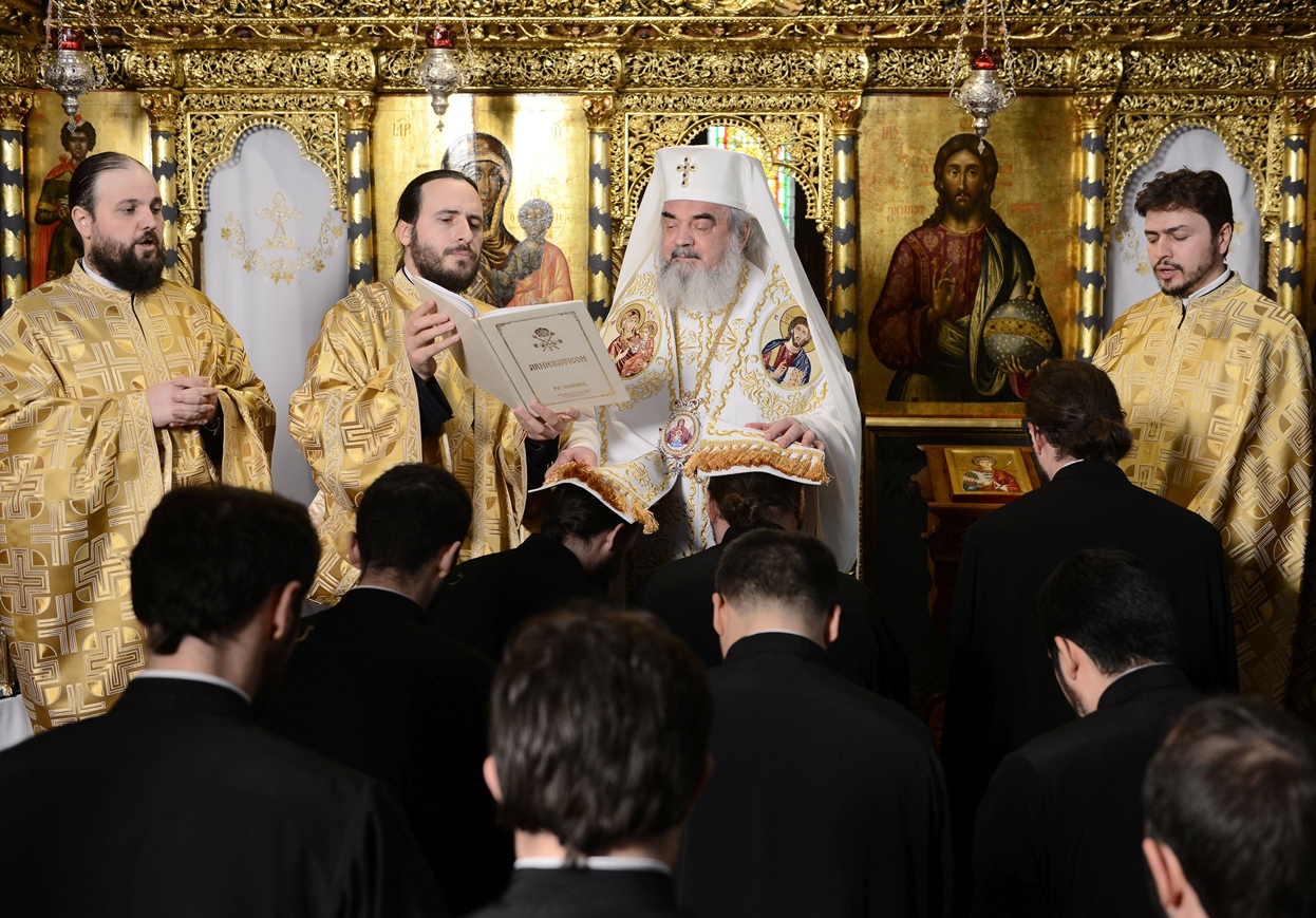Preafericitul Părinte Daniel, Patriarhul României a hirotesit întru duhovnic, astăzi, 10 noiembrie 2014, trei ieromonahi și şapte preoți din Arhiepiscopia Bucureștilor. Slujba a fost săvârșită în Paraclisul istoric al Reședinței Patriarhale cu hramul Sfântul Mare Mucenic Gheorghe.