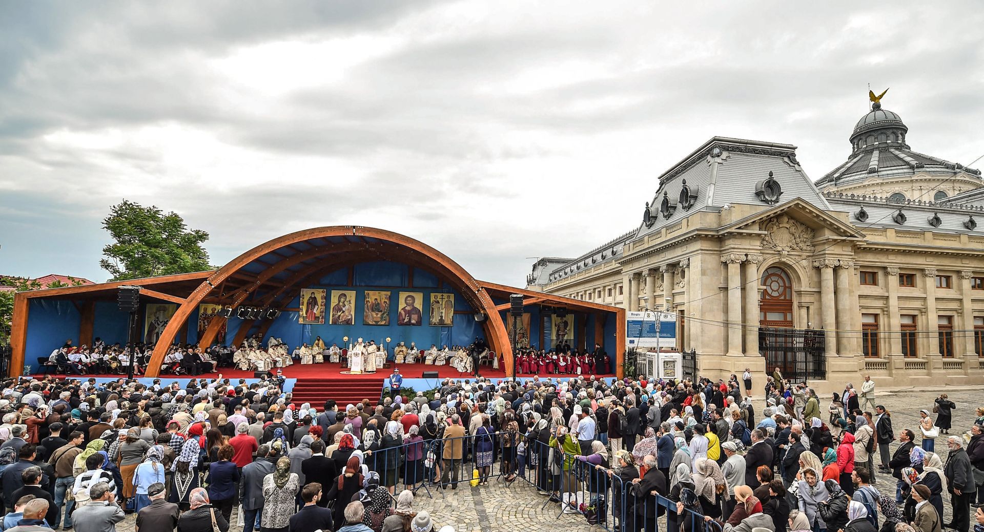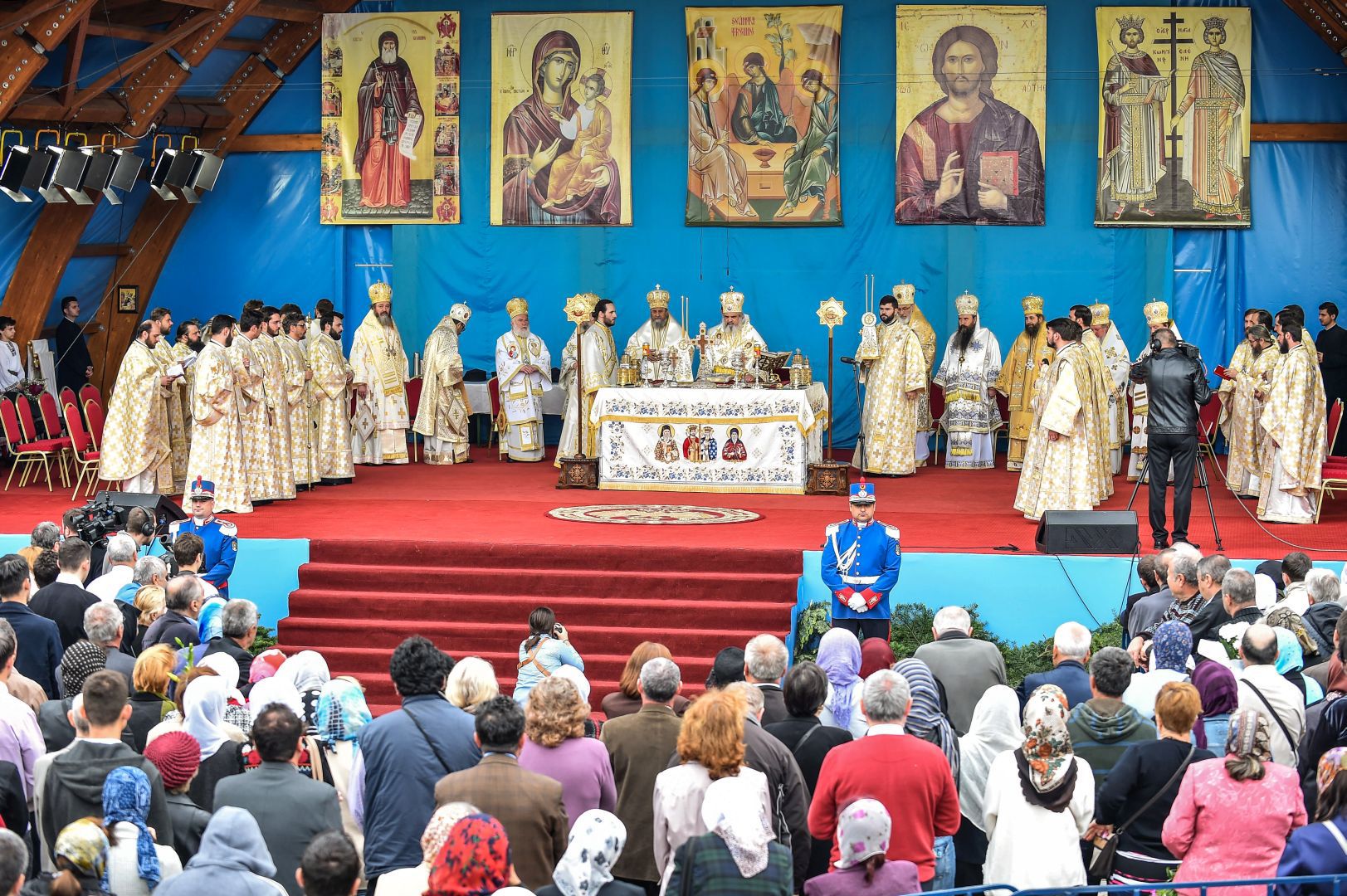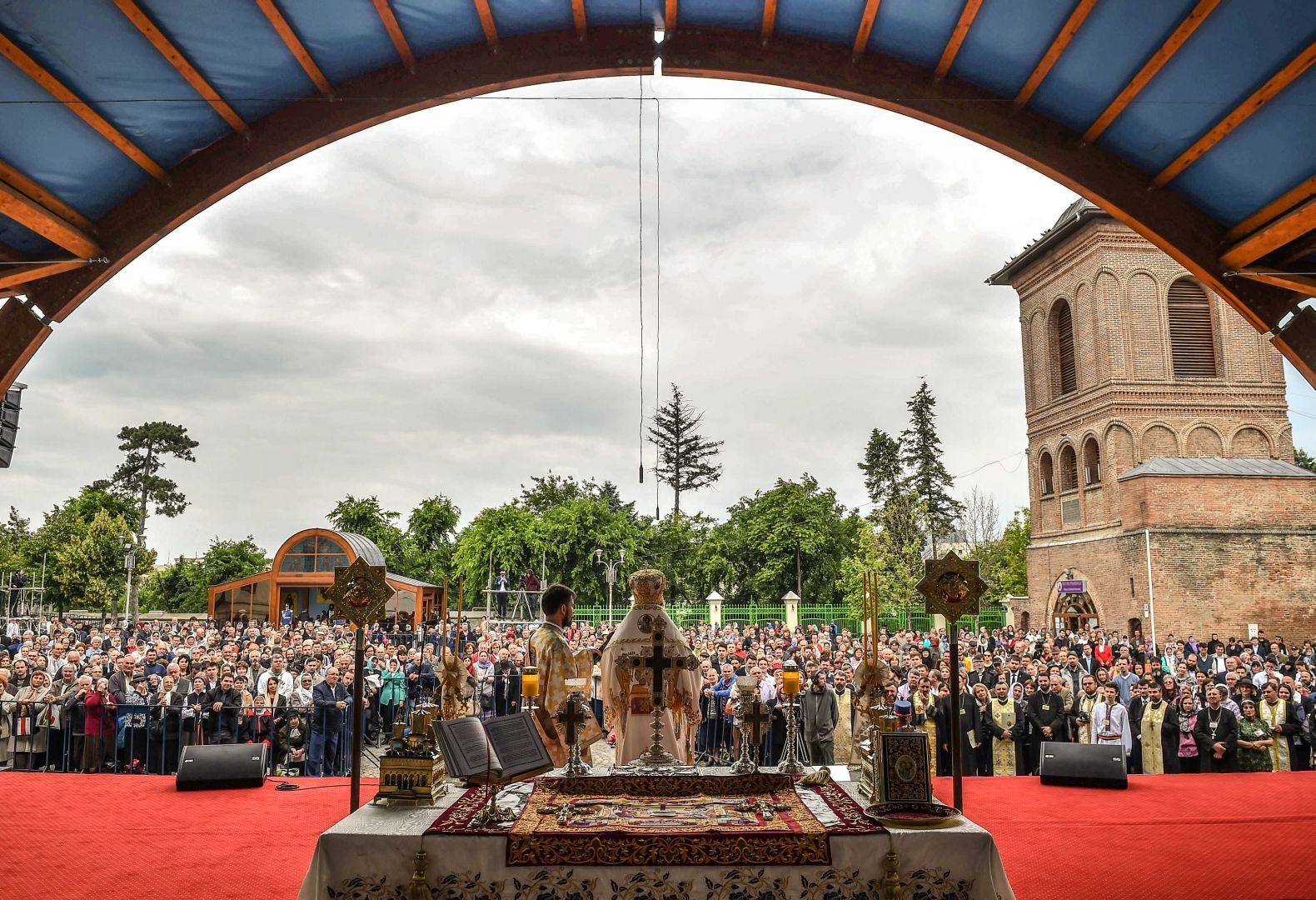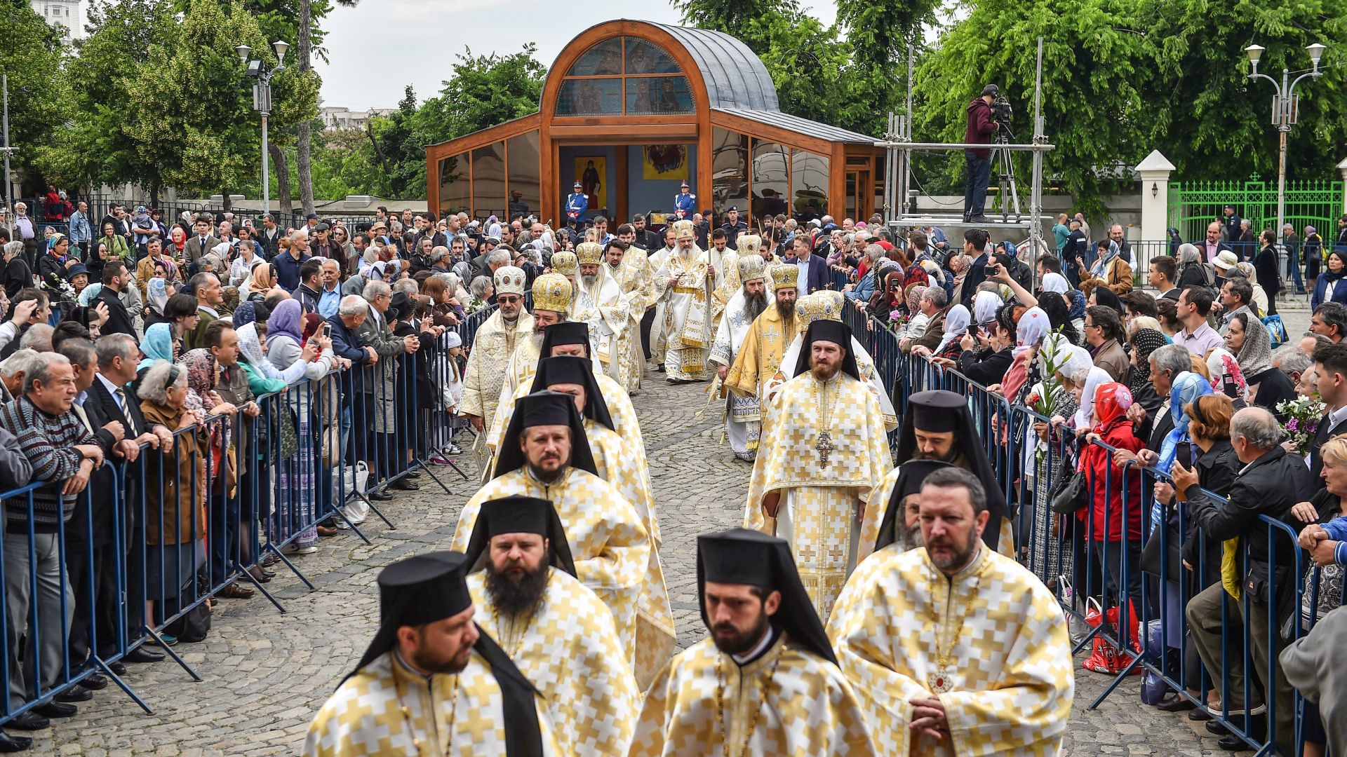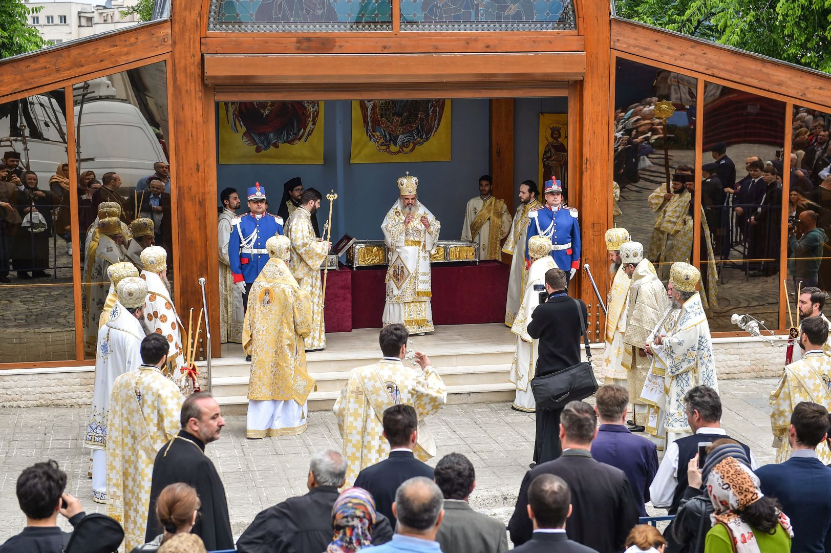 The faithful present at the Hill of Joycould venerate the relics of the Holy Emperors Constantine and Helen and of Saint Demetrius, Protector of Bucharest, which were taken in procession (in the morning) out of the Patriarchal Cathedral and laid for the veneration of the faithful under the canopy specially set up next to the place of worship.