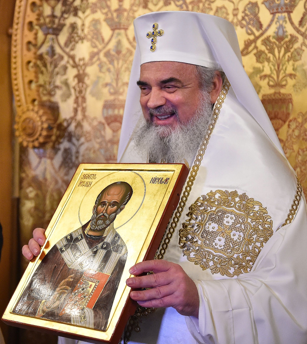 De asemenea, părintele paroh Nicolae Burlan a mulţumit Preafericitului Părinte Patriarh Daniel şi i-a dăruit o icoană reprezentând pe Sfântul Nicolae.
