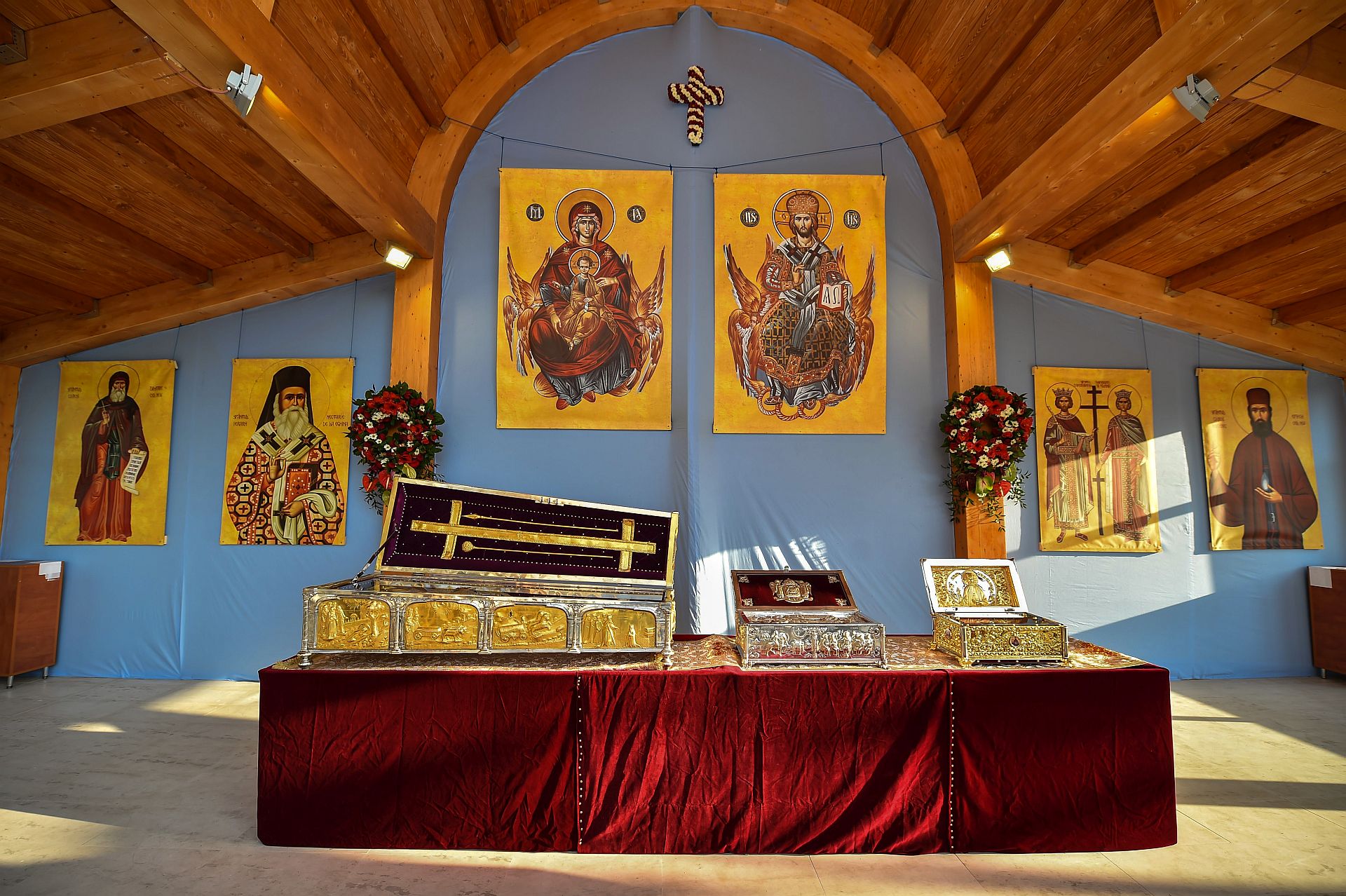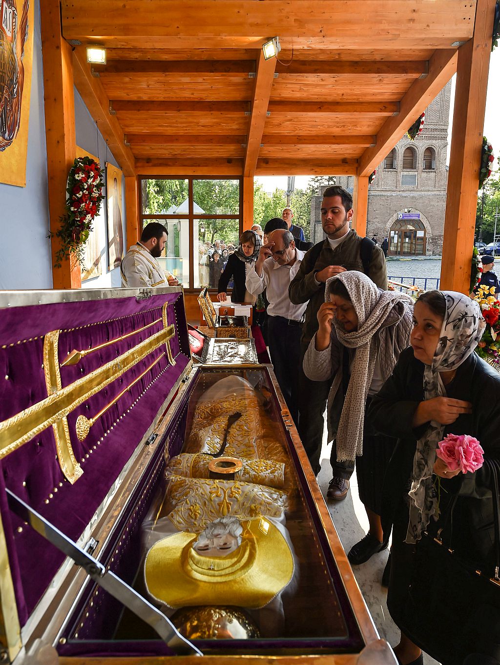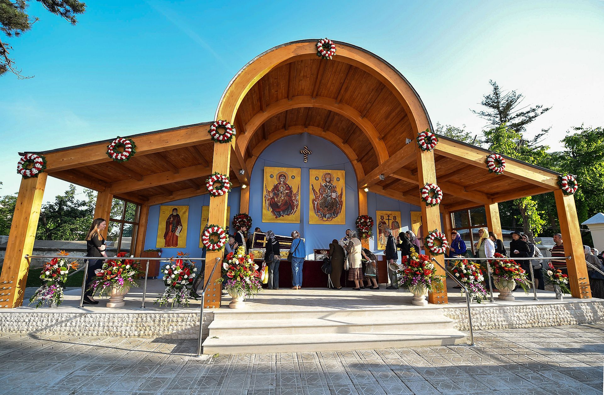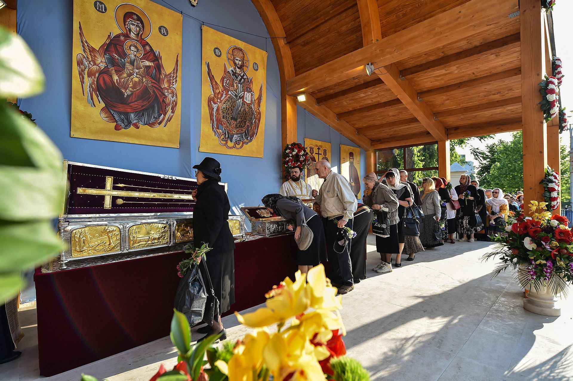 Credincioşii prezenţi astăzi au putut aduce cinstire sfintelor moaşte ale Sfinţilor Împăraţi Constantin şi Elena, ale Sfântului Cuvios Dimitrie cel Nou, Ocrotitorul Bucureştilor şi ale Sfântului Mare Mucenic Efrem cel Nou aşezate spre închinare în baldachinul special amenajat de pe esplanada din faţa Catedralei Patriarhale.