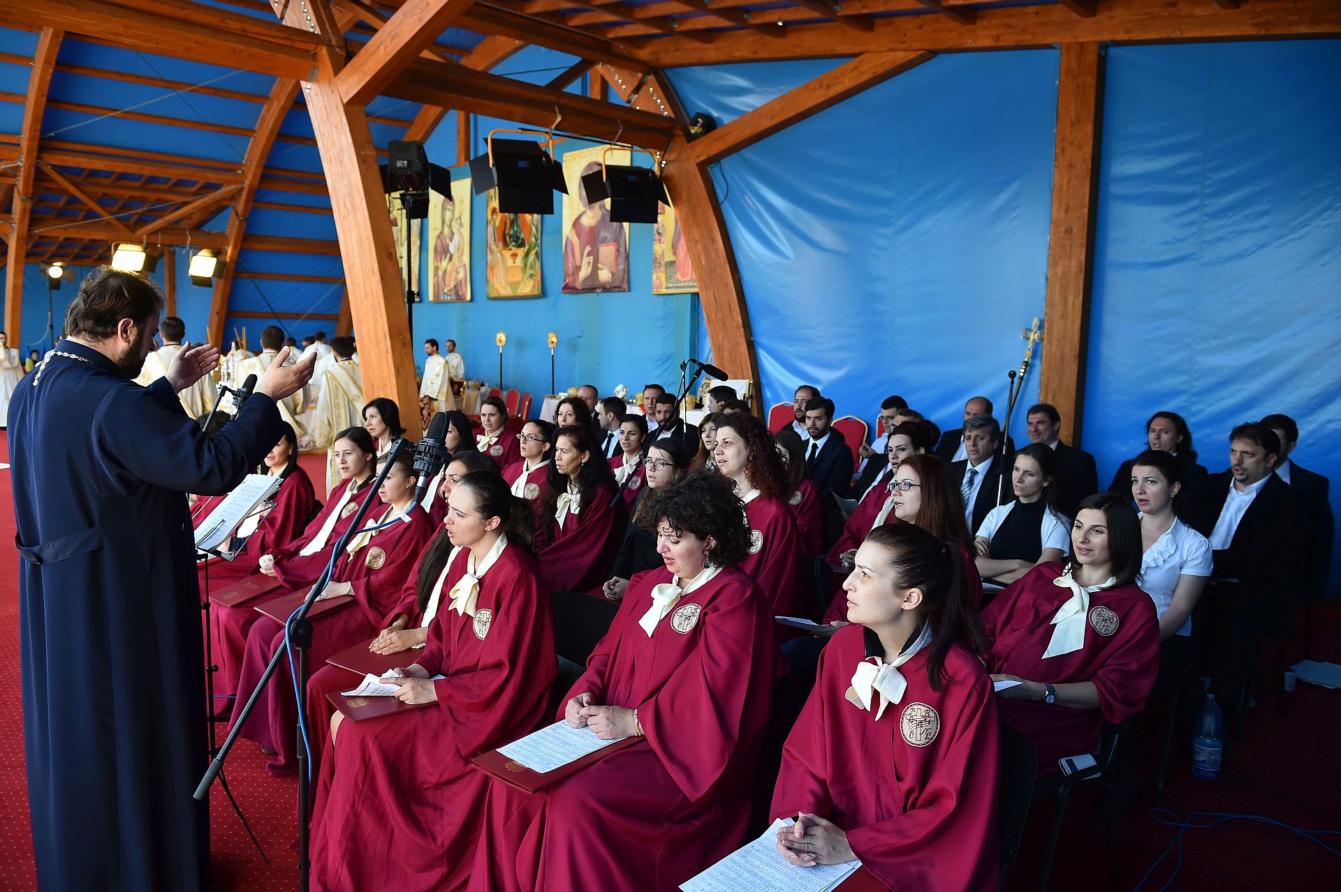 Răspunsurile la Sfânta Liturghie au fost date de Corala Nicolae Lungu a Patriarhiei Române dirijată de Pr. Conf. Dr. Stelian Ionaşcu.