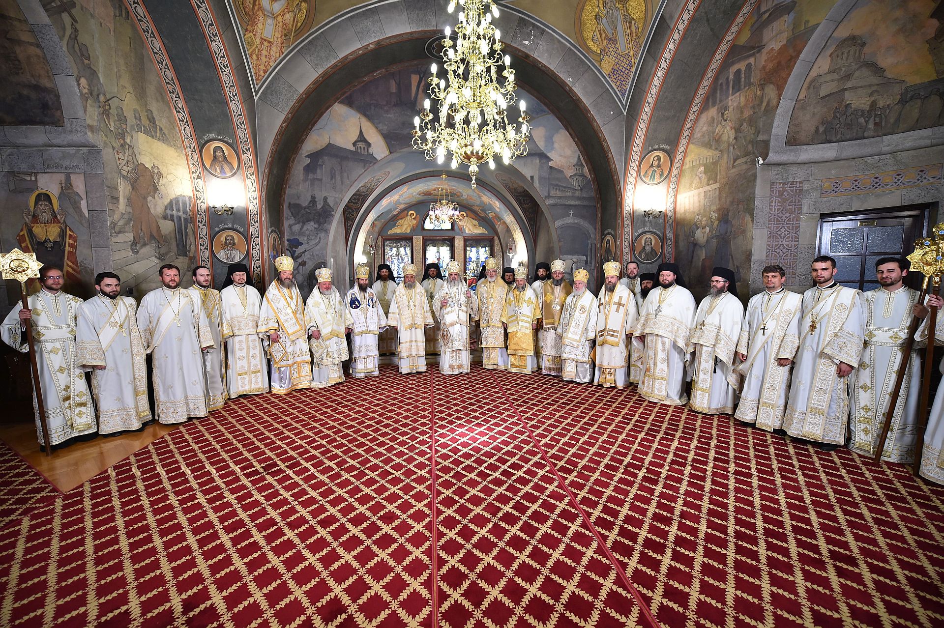 Alături de Preafericirea Sa s-au aflat următorii ierarhi: Înaltpreasfinţitul Laurenţiu, Mitropolitul Ardealului, Înaltpreasfinţitul Calinic, Arhiepiscopul Argeşului şi Muscelului, Înaltpreasfinţitul Casian, Arhiepiscopul Dunării de Jos, Preasfinţitul Ambrozie, Episcopul Giurgiului, Preasfinţitul Visarion, Episcopul Tulcii, Preasfinţitul Siluan, Episcopul românilor ortodocşi din Ungaria, Preasfinţitul Varlaam Ploieşteanul, Episcop-vicar patriarhal, Preasfinţitul Ieronim Sinaitul, Episcop-vicar patriarhal şi Preasfinţitul Timotei Prahoveanul, Episcop-vicar al Arhiepiscopiei Bucureştilor.