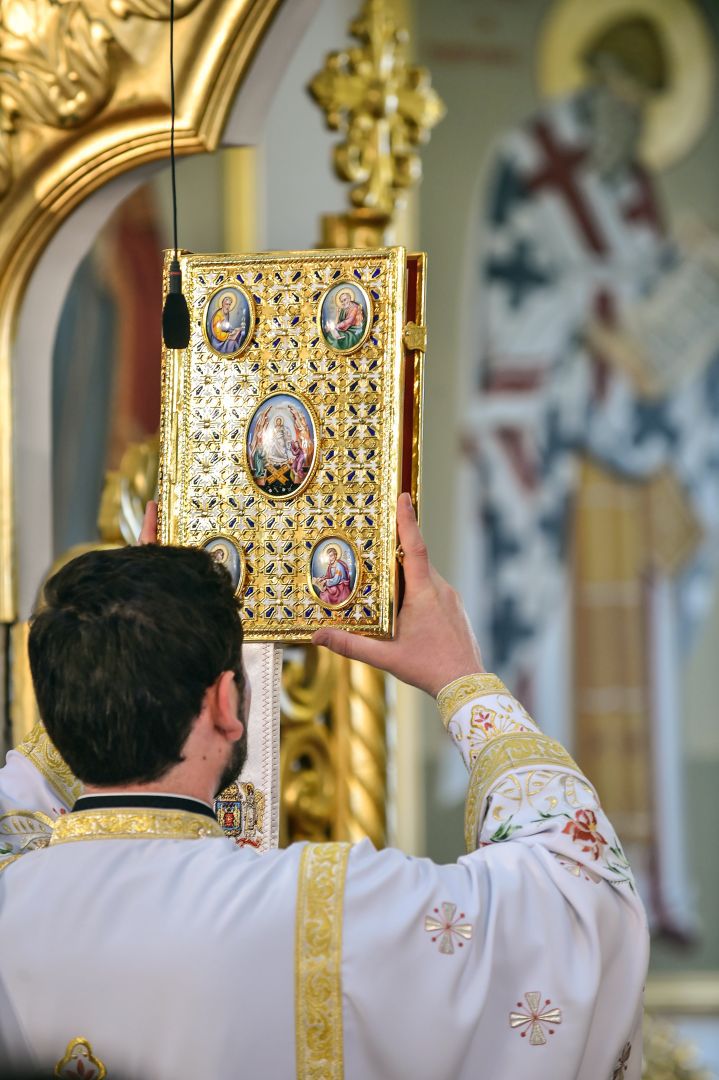 „Dorim să vă oferim un dar simbolic, o Sfântă Evanghelie care poartă în mijloc icoana Învierii Domnului nostru Iisus Hristos, în legătură cu hramul Paraclisului şi cu misiunea pe care ne-aţi încredinţat-o încă de la sfinţire atunci când aţi spus că acest hram – Învierea Domnului – este ca o «reparaţie morală pentru Bisericile demolate, răstignite în perioada comunistă» pentru a se construi Casa Poporului. Şi pentru că noi trebui să păstrăm mereu în amintire, chiar şi în aceste momente de bucurie, tristeţea dărâmării unor altare ale credinţei dorim să arătăm că nu am uitat şi vă oferim această Sfântă Evanghelie”, a spus părintele arhimandrit Paisie Teodorescu.