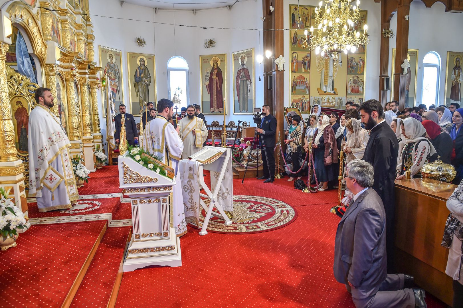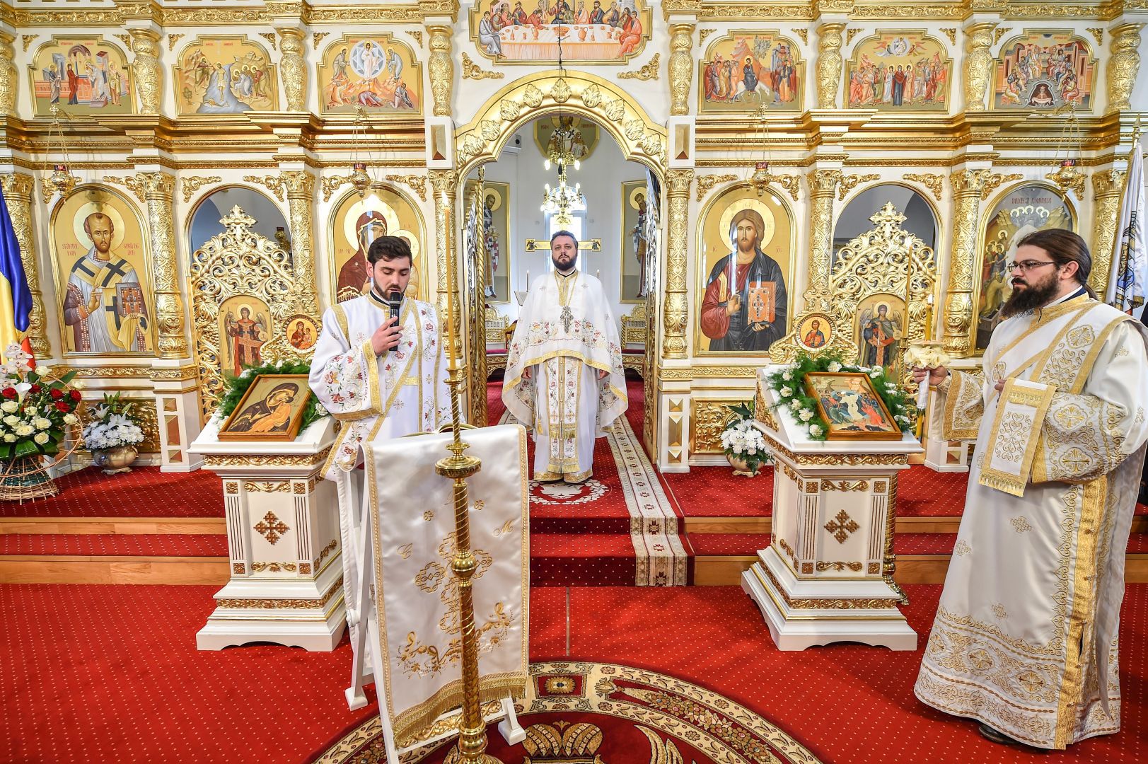 Sfânta Liturghie a fost oficiată de Arhim. Paisie Teodorescu, Vicar patriarhal, împreună cu un sobor de preoţi şi diaconi. Din sobor au făcut parte: Arhim. Dionisie Constantin, Consilier Patriarhal, Arhim. Veniamin Goreanu, Consilier Patriarhal, Arhim. Ciprian Grădinaru, Pr. Ioan Dragomir, Consilier Patriarhal, Pr. Ştefan Ababei, Consilier Patriarhal, Pr. Costin Spiridon, Consilier Patriarhal, Protos. Ioachim Bejenariu, Directorul Serviciului Colportaj al Arhiepiscopiei Bucureştilor.