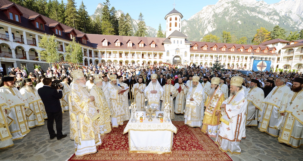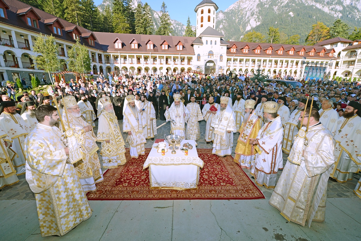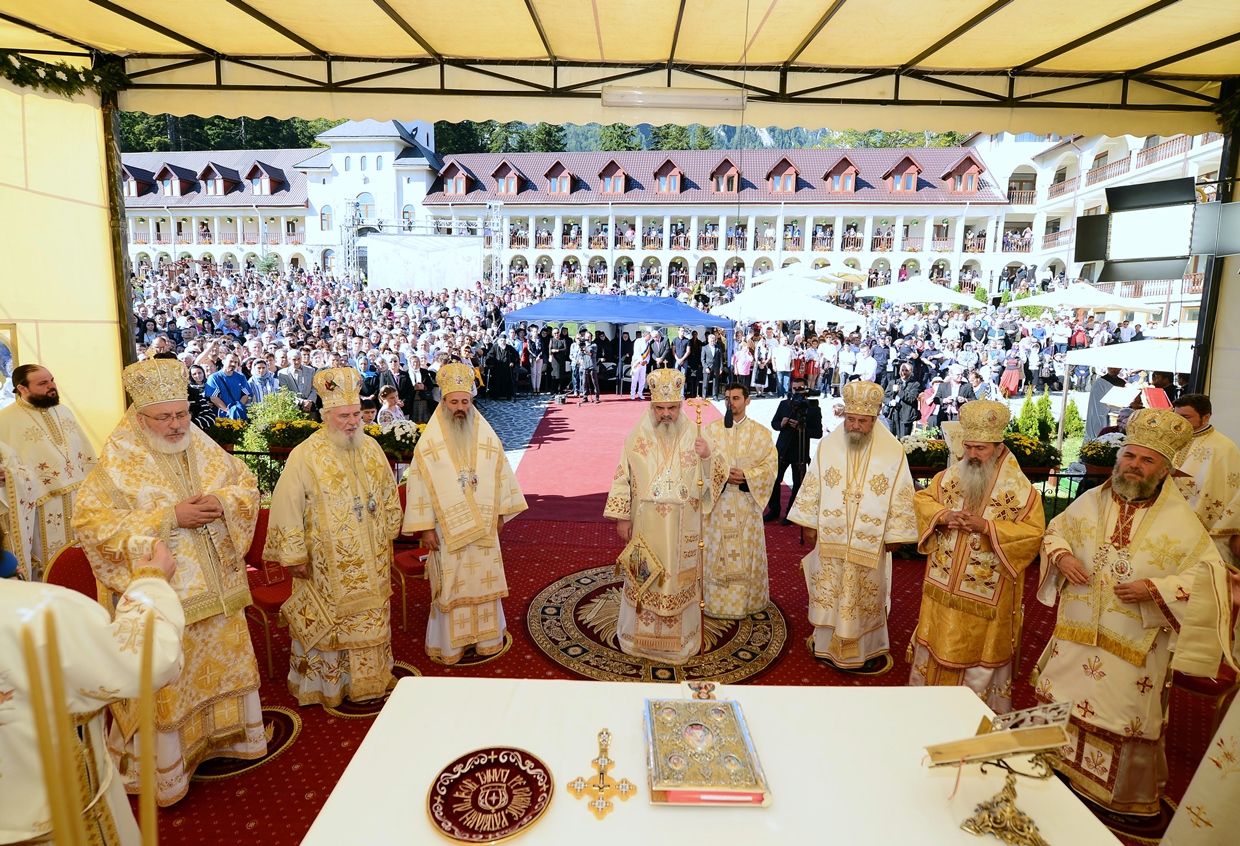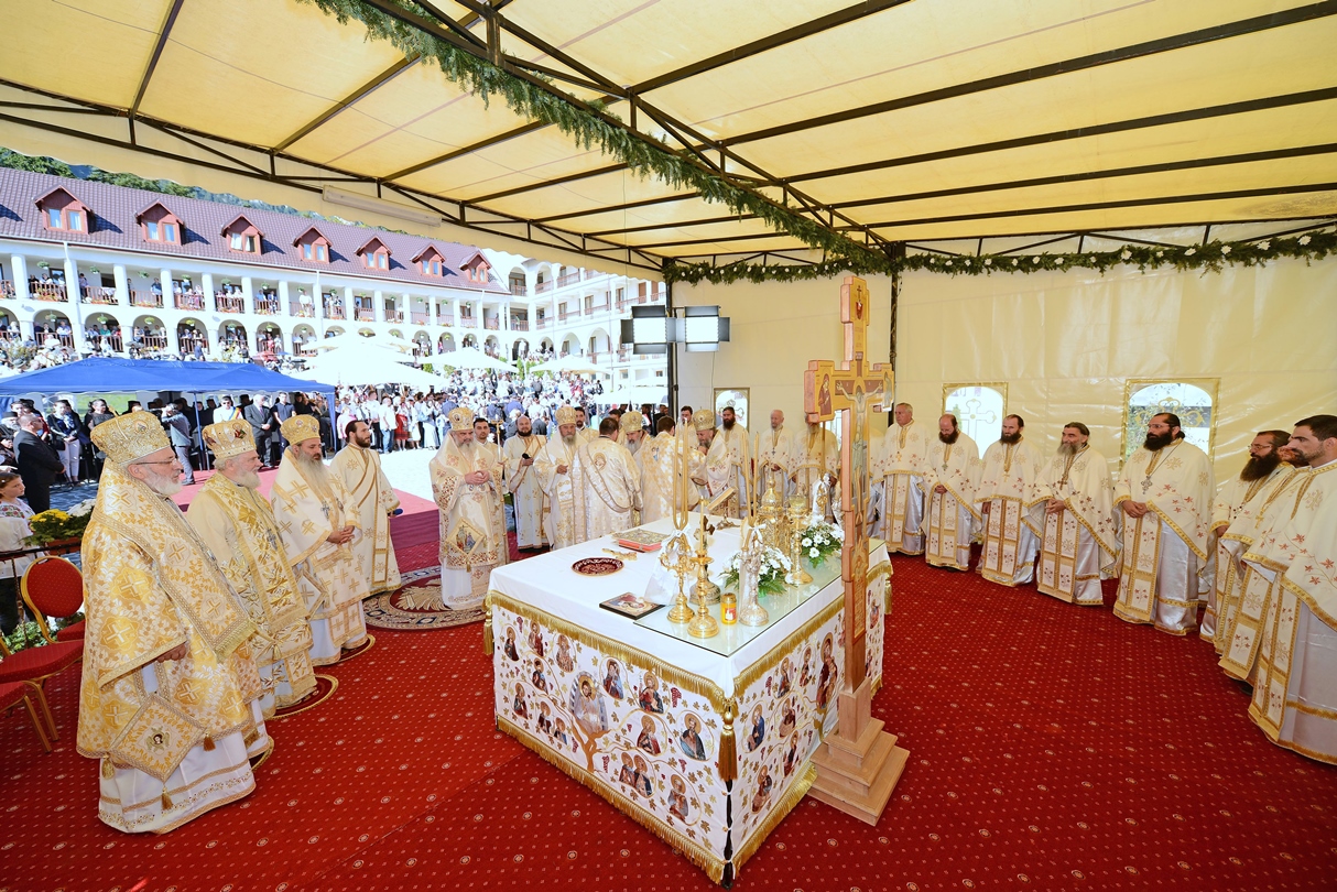 În ziua acestei mari sărbători, Preafericitul Părinte Daniel, Patriarhul Bisericii Ortodoxe Române a târnosit biserica mare a așezământului monahal, după 12 ani de la punerea pietrei de temelie. Din soborul slujitor au făcut parte și: Înaltpreasfințitul Teofan, Mitropolitul Moldovei și Bucovinei, Înaltpreasfințitul Laurenţiu, Mitropolitul Ardealului, Înaltpreasfințitul Mitropolit Nifon, arhiepiscopul Târgoviștei și exarh patriarhal, Înaltpreasfințitul Teodosie, Arhiepiscopul Tomisului, Înaltpreasfințitul Calinic, Arhiepiscopul Argeșului și Muscelului și Înaltpreasfințitul Casian, Arhiepiscopul Dunării de Jos, preoți și diaconi.