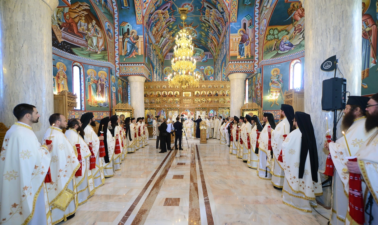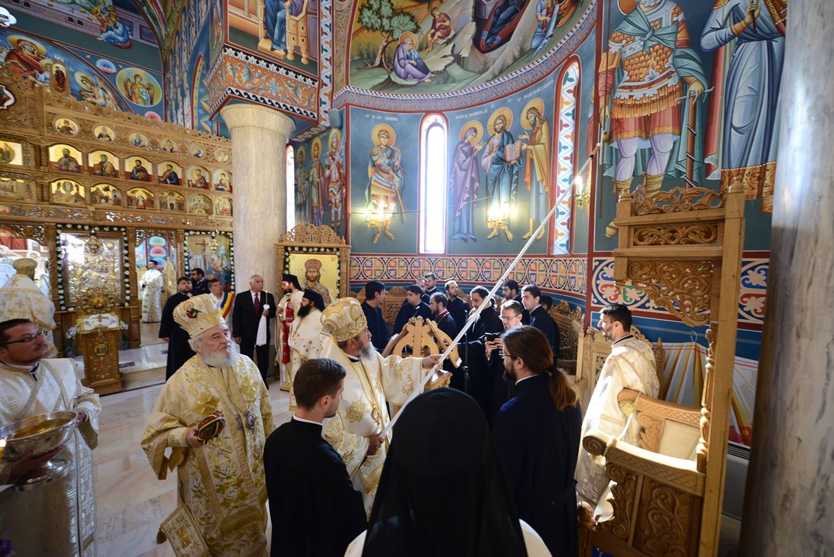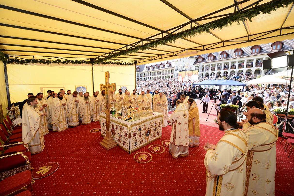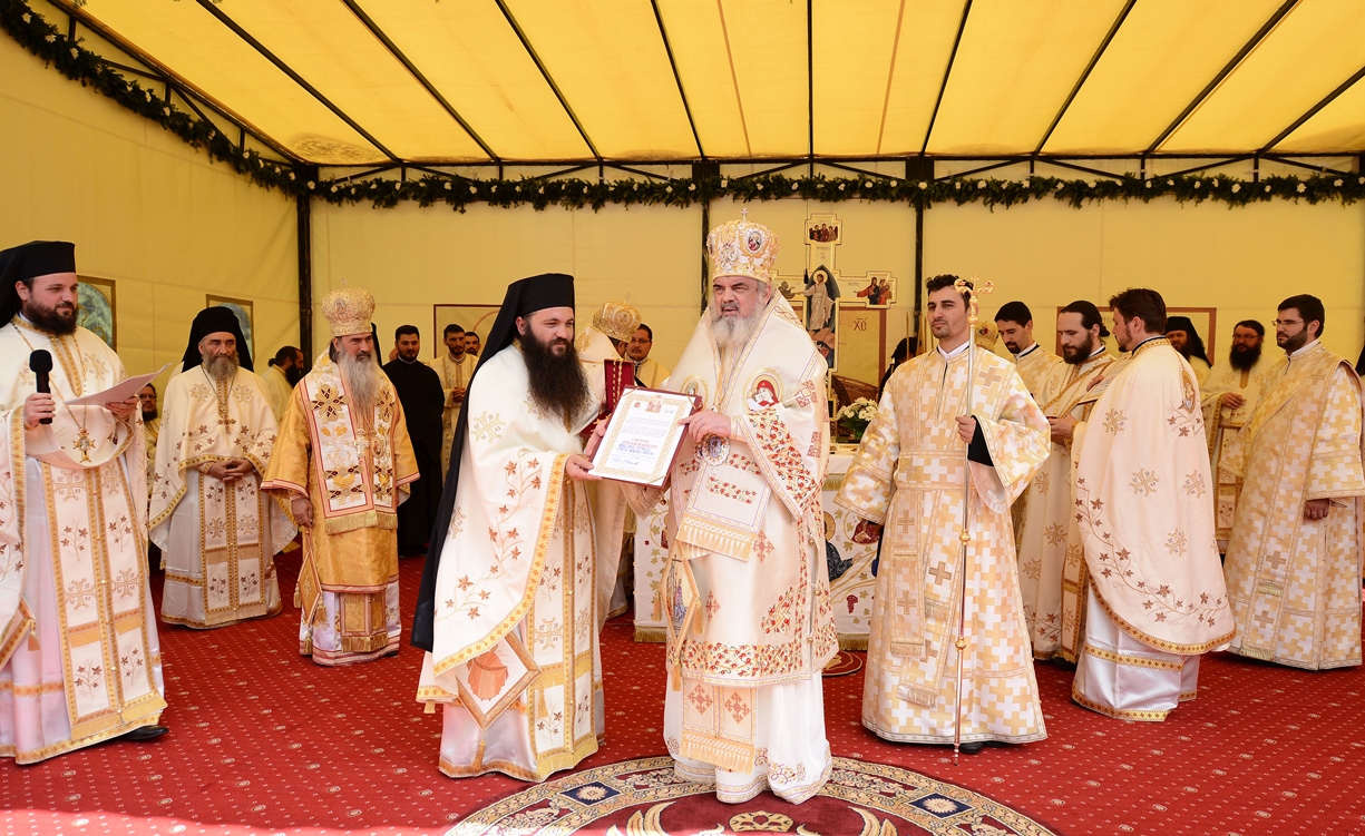 În ziua acestei mari sărbători, Preafericitul Părinte Daniel, Patriarhul Bisericii Ortodoxe Române a târnosit biserica mare a așezământului monahal, după 12 ani de la punerea pietrei de temelie. Din soborul slujitor au făcut parte și: Înaltpreasfințitul Teofan, Mitropolitul Moldovei și Bucovinei, Înaltpreasfințitul Laurenţiu, Mitropolitul Ardealului, Înaltpreasfințitul Mitropolit Nifon, arhiepiscopul Târgoviștei și exarh patriarhal, Înaltpreasfințitul Teodosie, Arhiepiscopul Tomisului, Înaltpreasfințitul Calinic, Arhiepiscopul Argeșului și Muscelului și Înaltpreasfințitul Casian, Arhiepiscopul Dunării de Jos, preoți și diaconi.