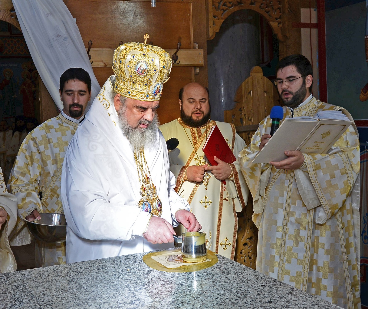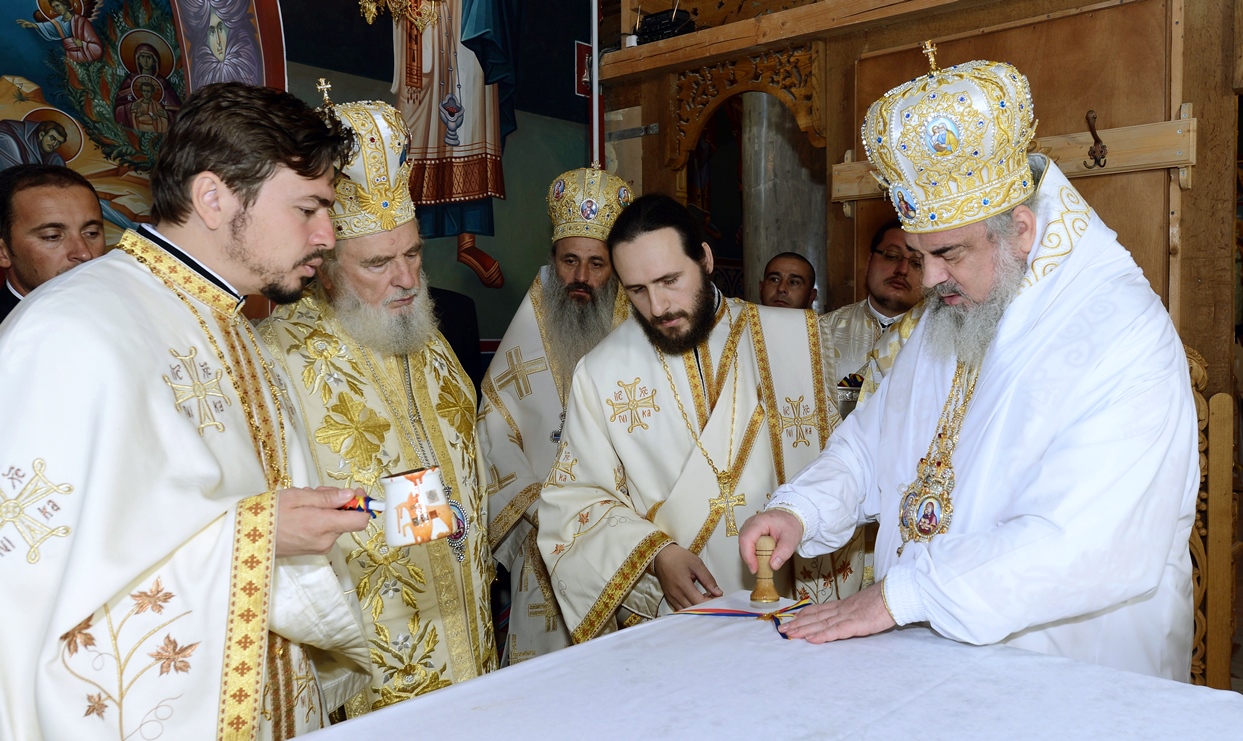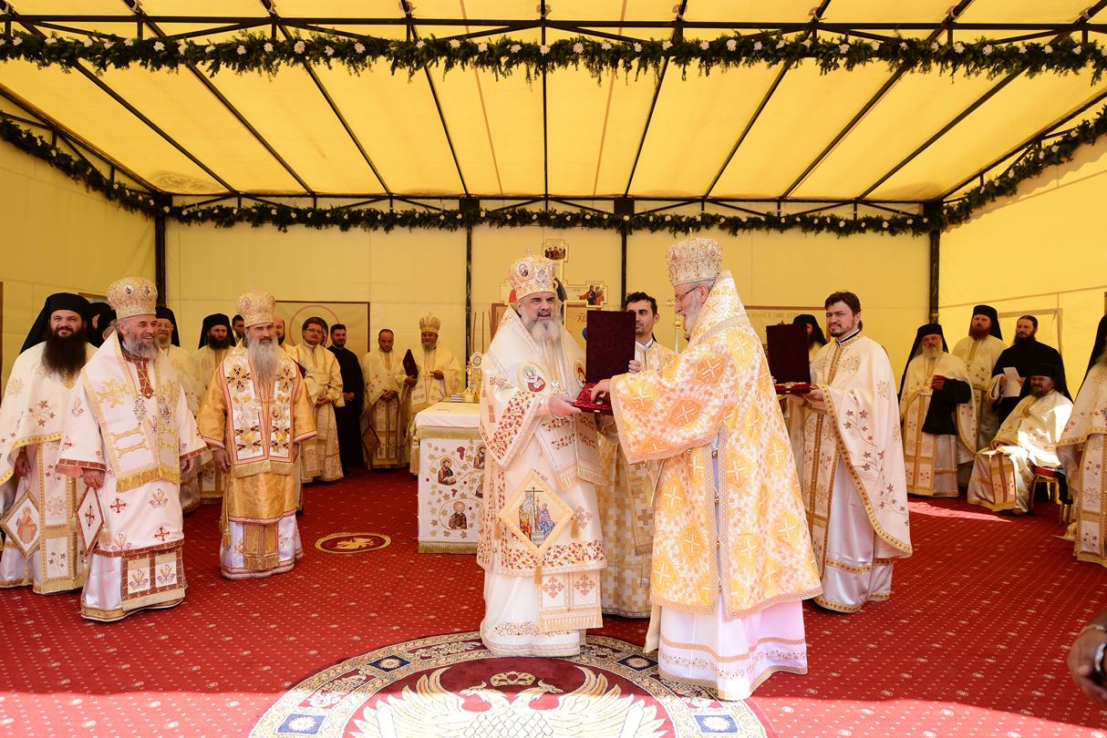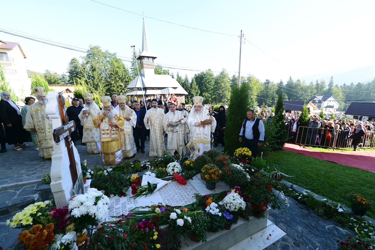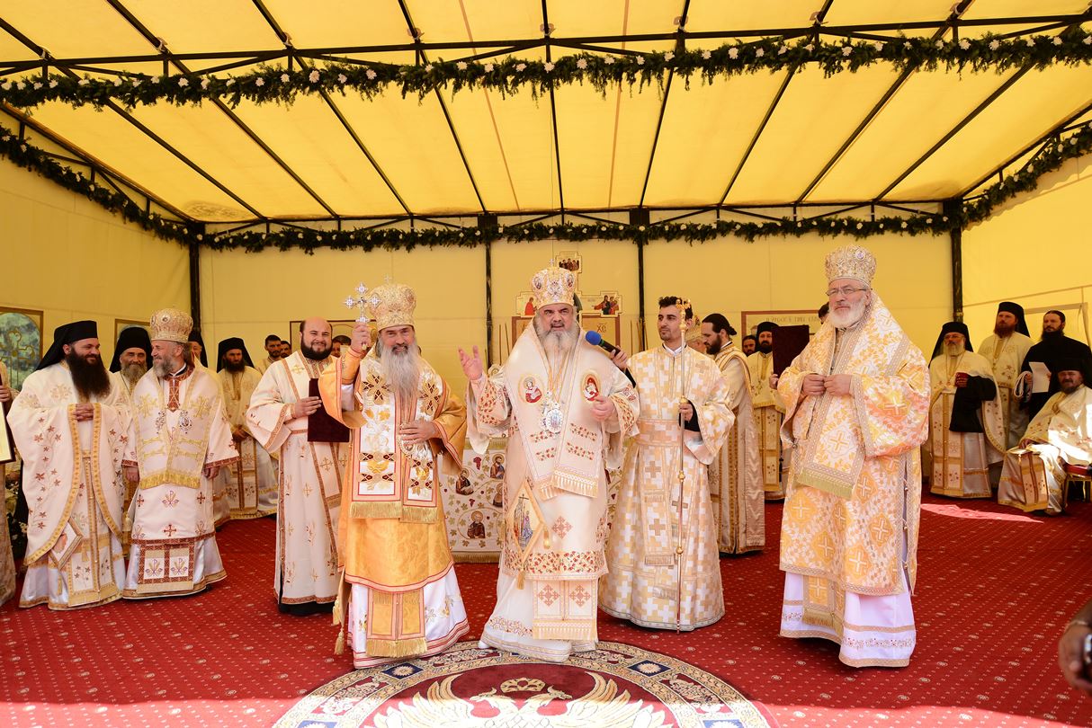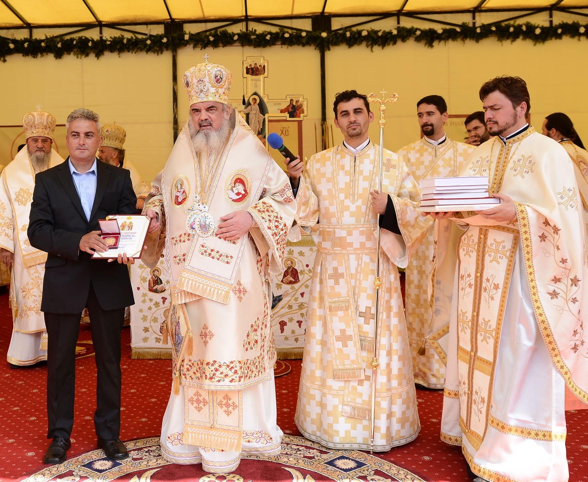 „Zidirea acestei biserici a durat din anul 2002 până în anul 2007 când s-au finalizat lucrările de construire a acestui sfânt lăcaş. Începând cu luna august 2012 au fost începute lucrările de pictură care au durat până în luna septembrie, anul curent. Pictura a fost realizată de dl. Sebastian Ene. Toate aceste lucrări au fost realizate cu purtarea de grijă şi cu ajutorul Maicii Domnului şi cu marea dragoste a credincioşilor din toate colţurile ţării şi chiar de peste hotare, care au contribuit fiecare după putere, dar toţi cu dragoste pentru sfintele locaşuri de rugăciune”, a spus Arhim. David Petrovici.bStarețul Mănăstirii Caraiman a oferit la final Preafericirii Sale și ierarhilor prezenți câte o icoană cu praznicul Înălțării Sfintei Cruci.