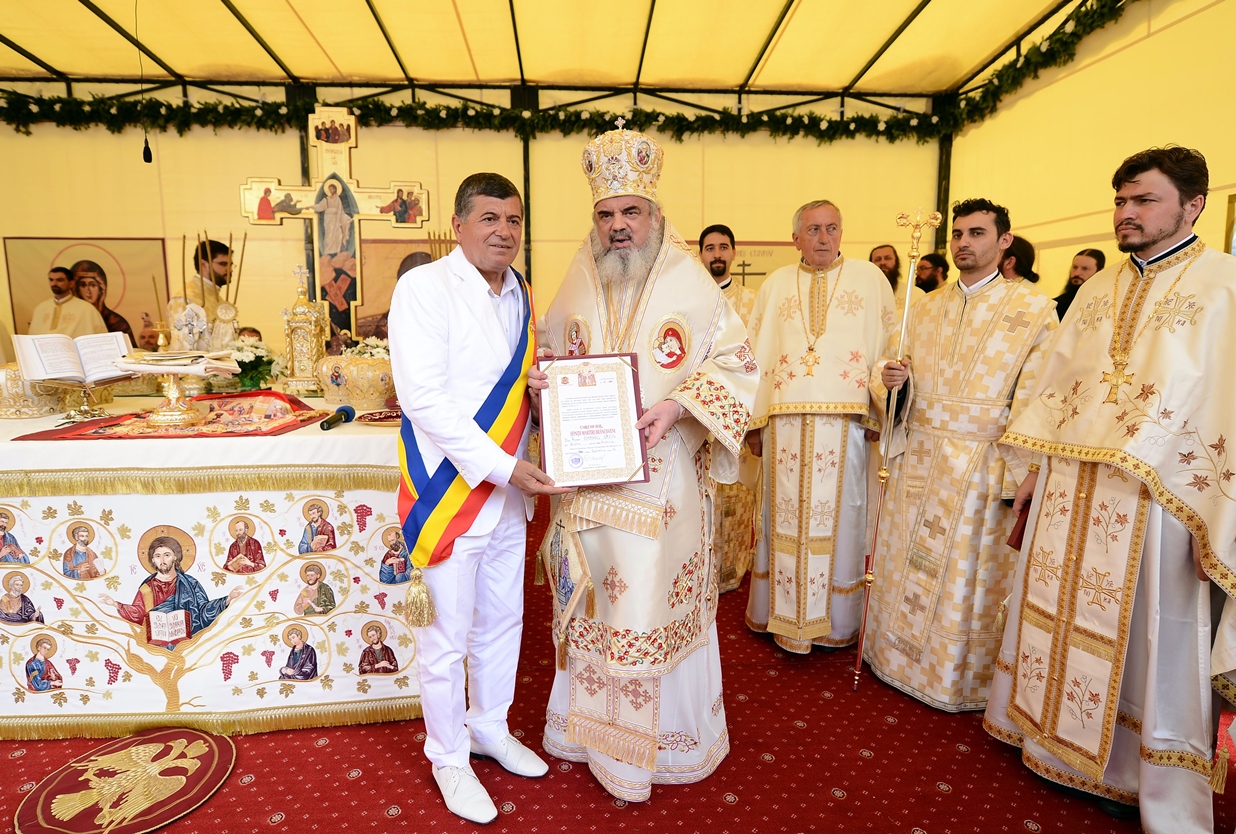„Mulţumim domnului primar pentru că a contribuit mult, împreună cu domnul vice-primar, la hotărârea Consiliului Local pentru atribuire a 3000 de mp2 pentru noua biserică de pe platoul Bucegi. Acolo unde este o cruce mare a eroilor este nevoie şi de o biserică. Va fi o biserică mică, dar solidă, din beton cu placare de cărămidă în interior pentru pictură şi de piatră de munte în exterior ca să se încadreze în contextul Parcului Naţional”, a mai spus Patriarhul României, potrivit Radio TRINITAS.