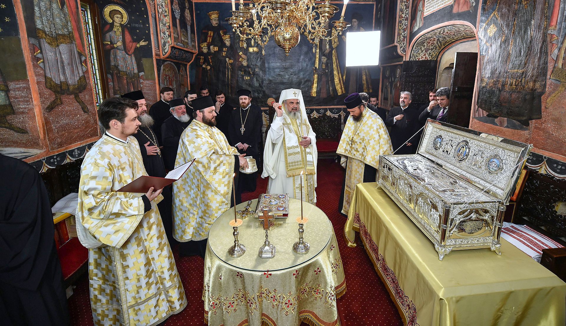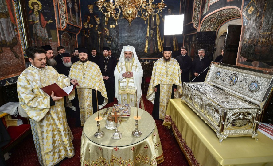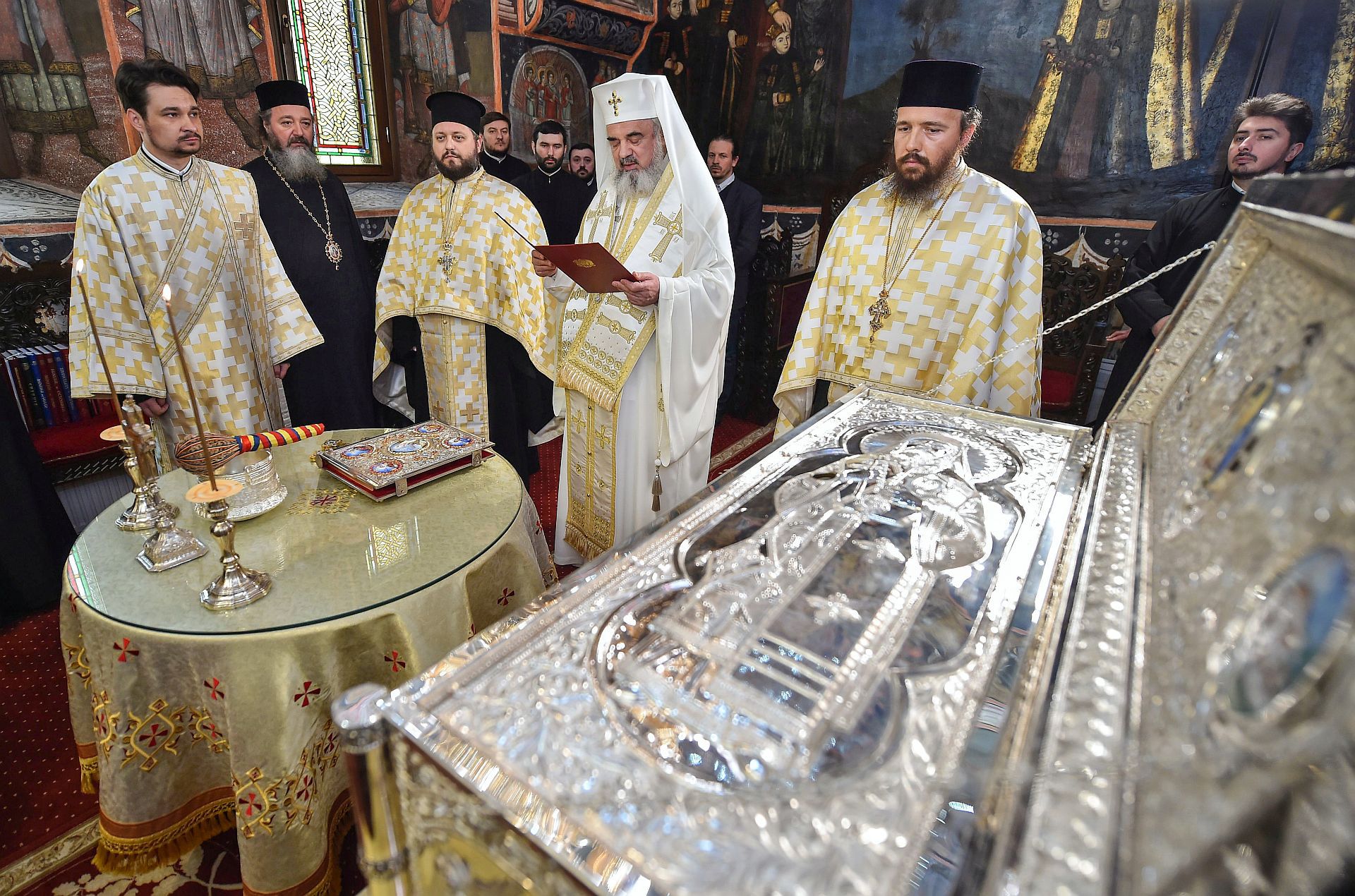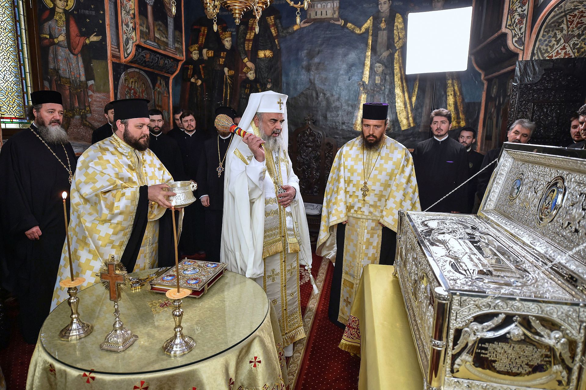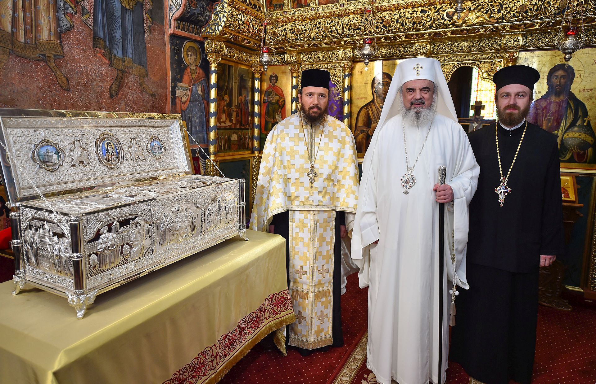 Preafericitul Părinte Daniel, Patriarhul României, a sfinţit vineri, 15 aprilie 2016, racla în care a fost aşezat un fragment din moaştele Sfântului Ierarh Nectarie de la Eghina. Racla aparţine mănăstirii bihorene Izbuc. Slujba a fost oficiată în paraclisul istoric cu hramul Sfântul Gheorghe din cadrul Reşedinţei Patriarhale.