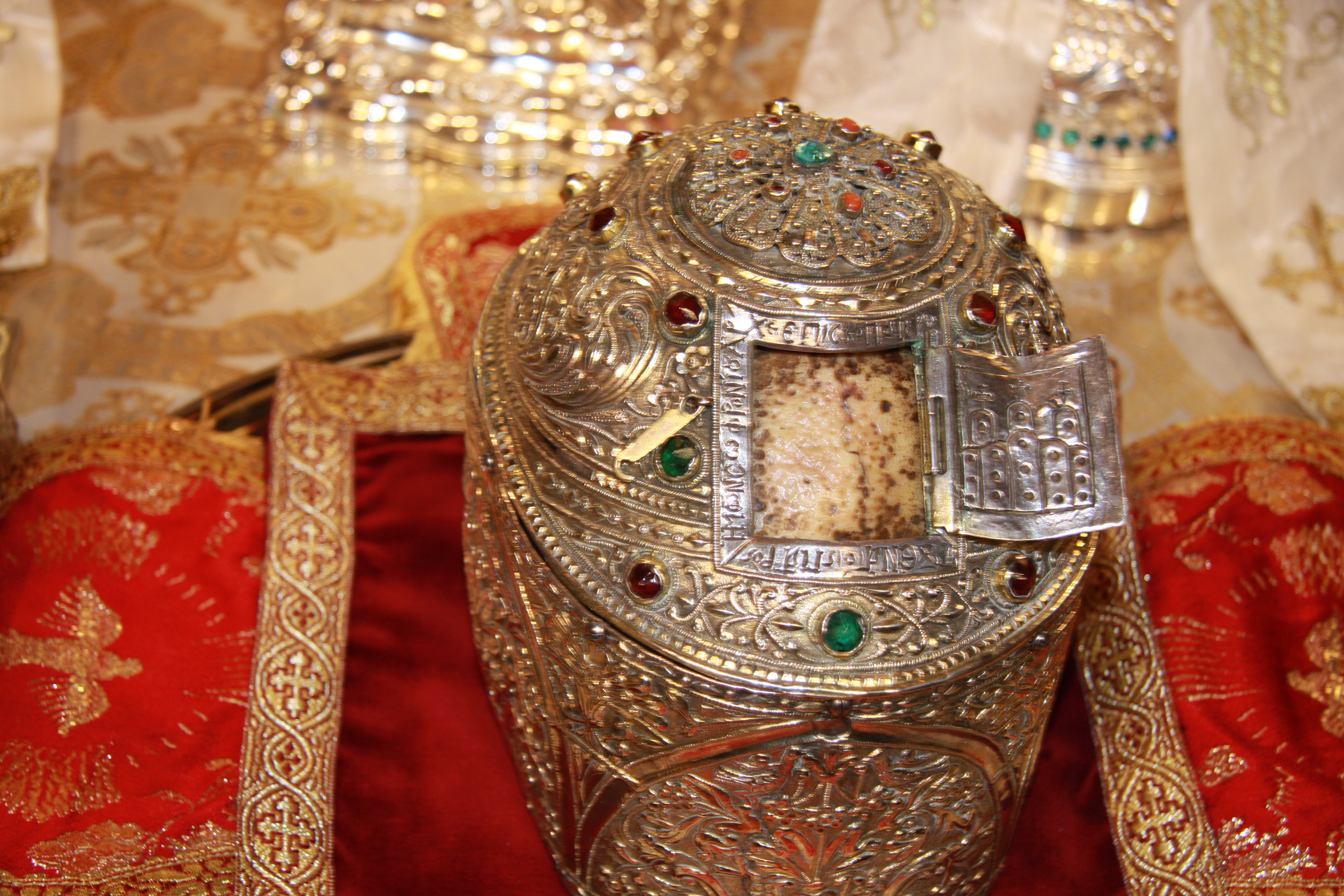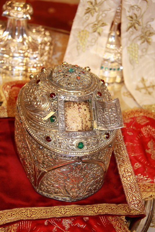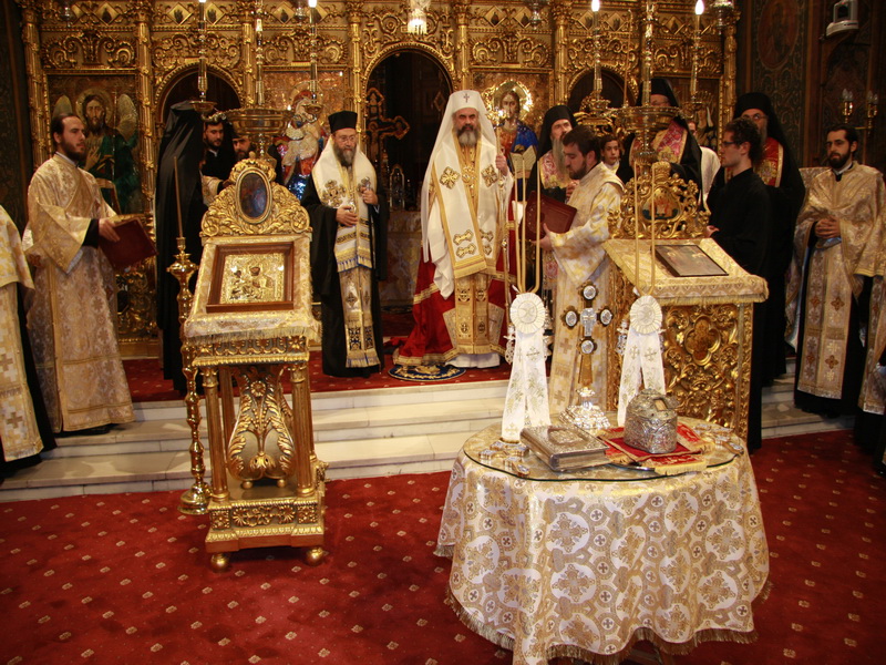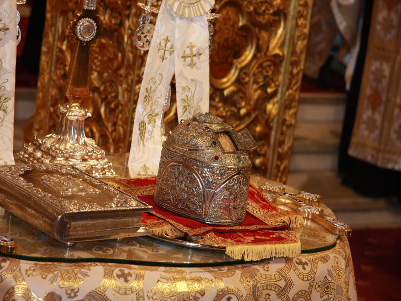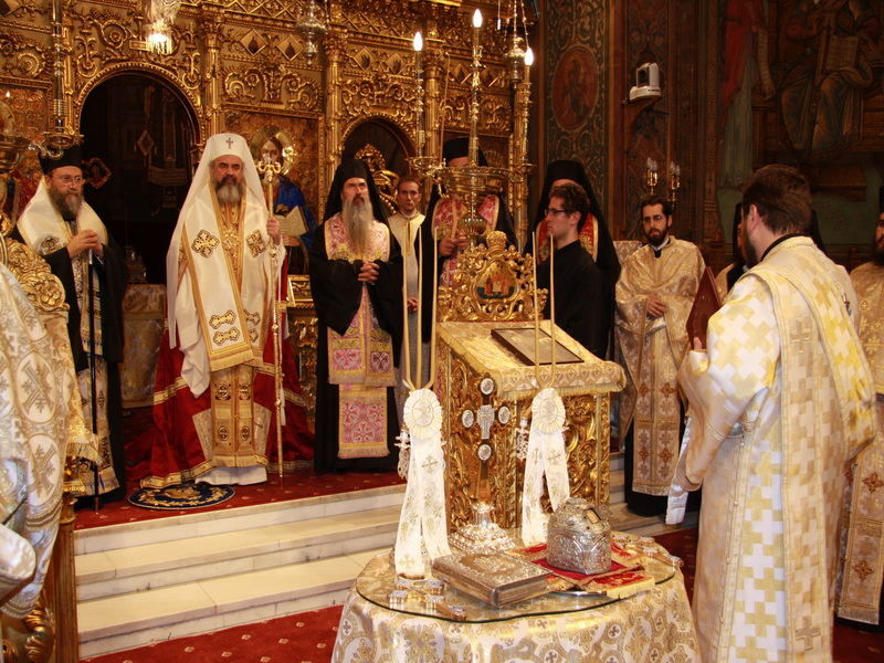 Moaştele Sfântului Sofronie, patriarhul Ierusalimului,au fost aduse la Catedrala Patriarhală din Bucureştide de către Înaltpreafinţitul Dionisie de Corint - Grecia (23 noiembrie 2008)