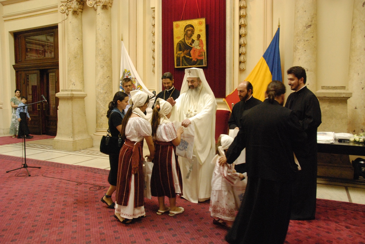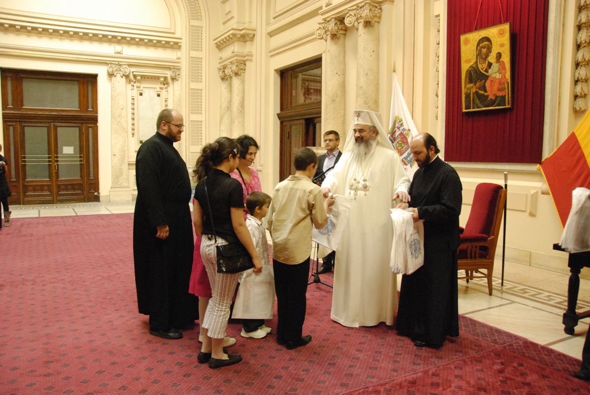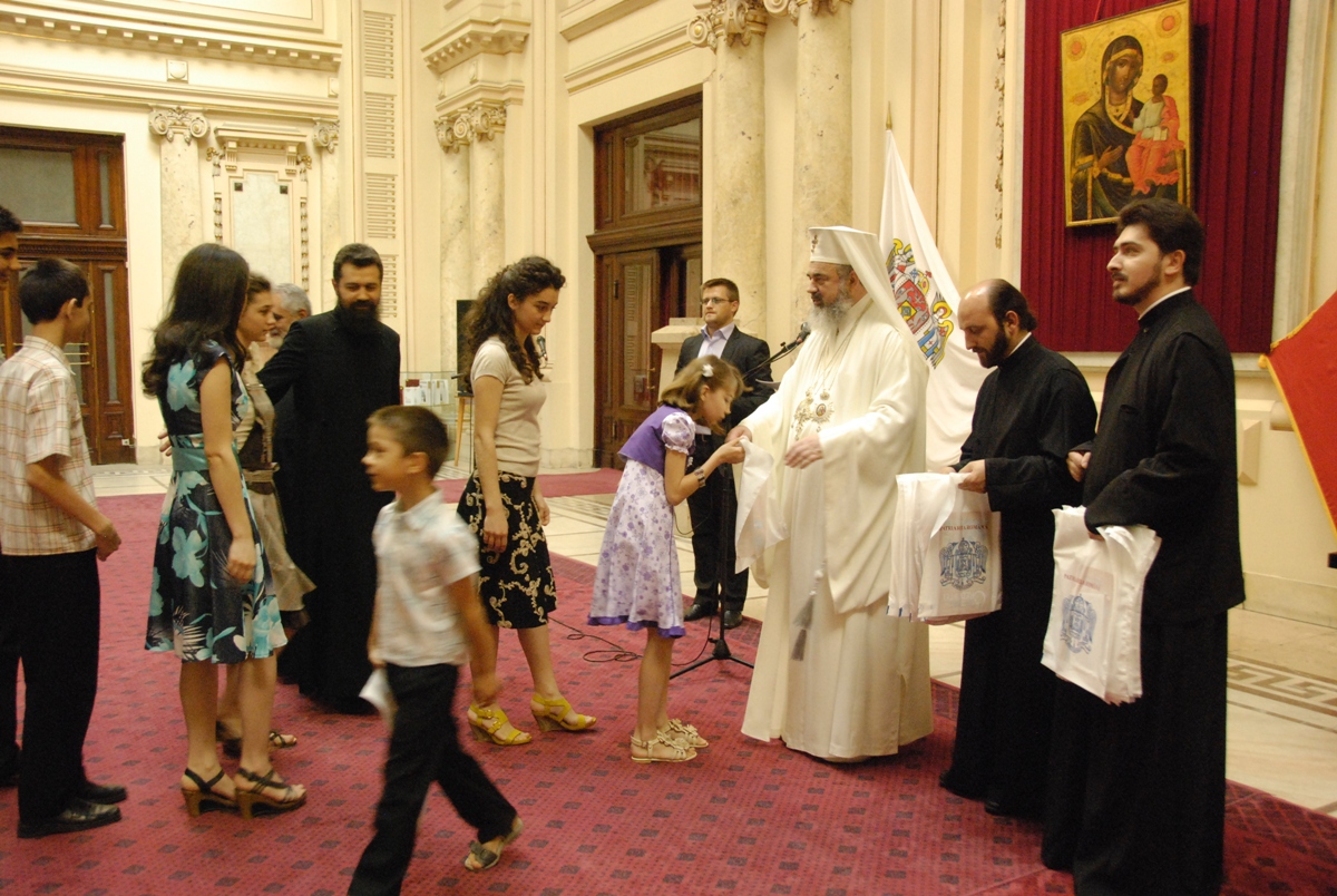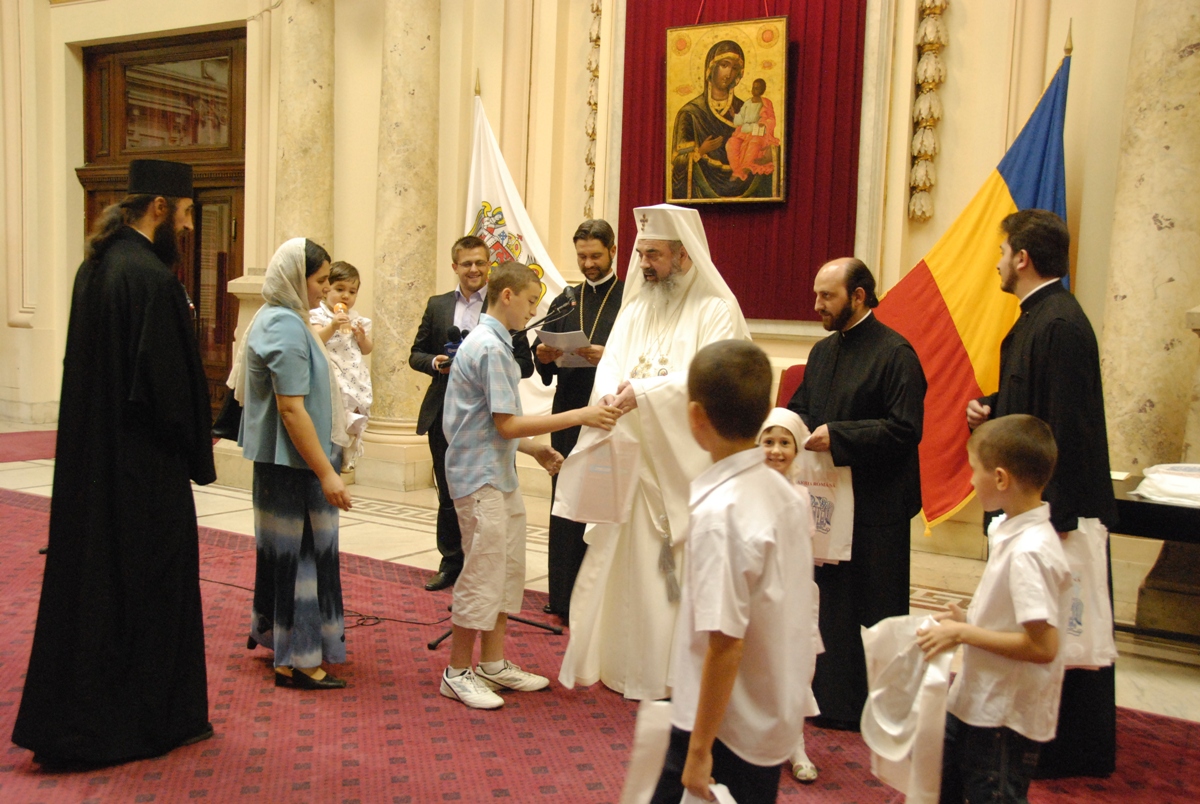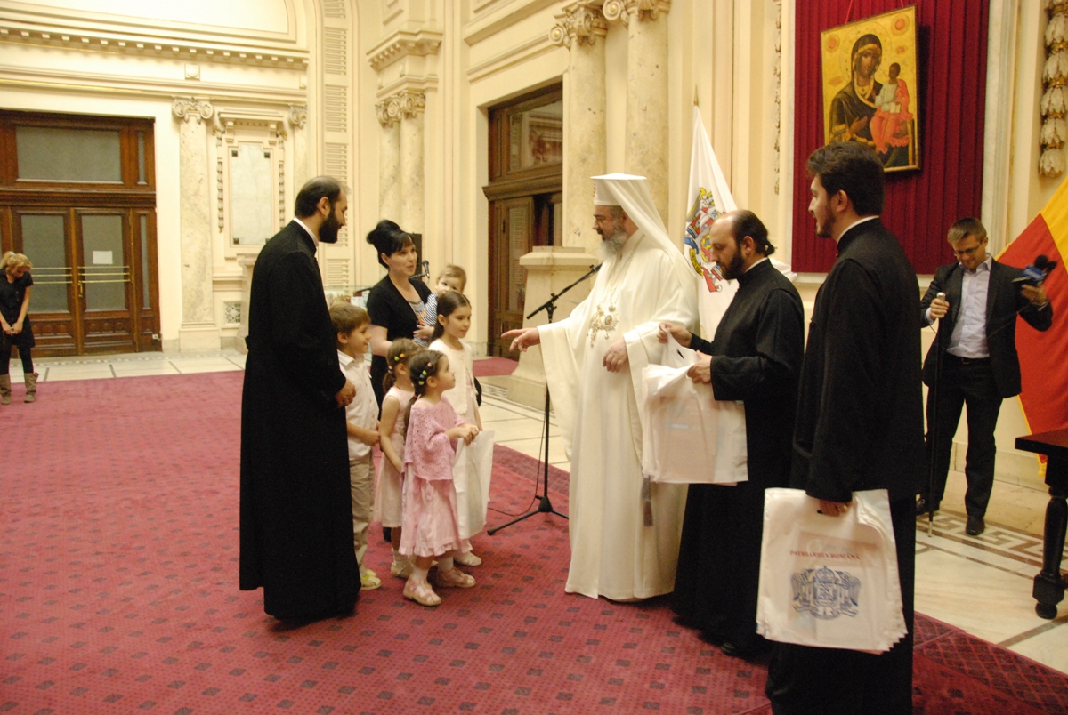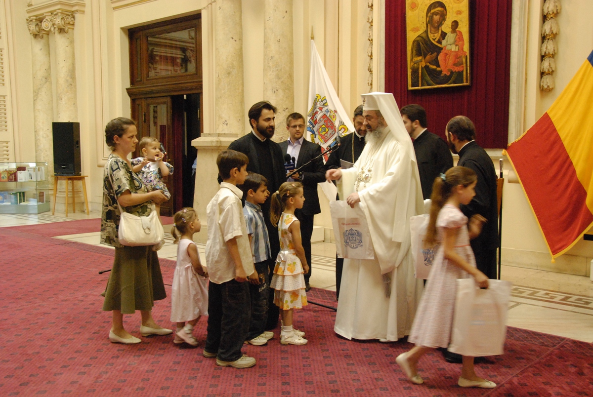 În „Duminica Părinţilor şi Copiilor” Patriarhul României a oferit daruri familiilor preoţilor cu mulţi copii din Arhiepiscopia Bucureştilor (6 iunie 2010)