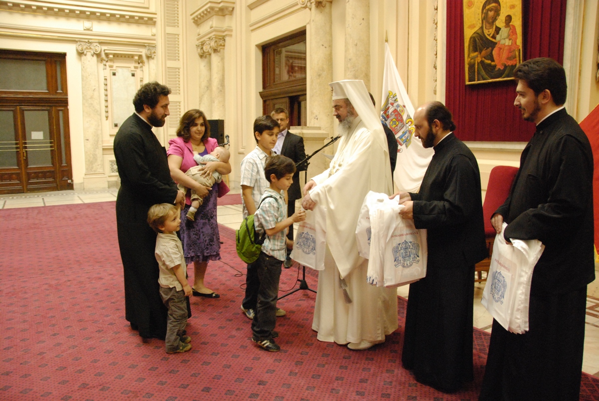 Iunie > În „Duminica Părinţilor şi Copiilor” Patriarhul României a oferit daruri familiilor preoţilor cu mulţi copii din Arhiepiscopia Bucureştilor (6 iunie 2010)