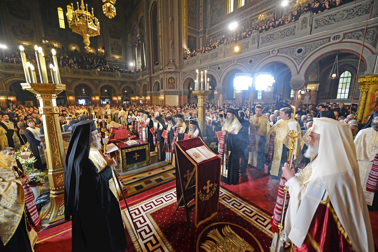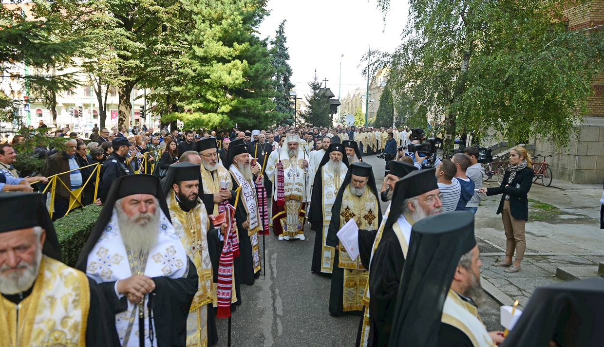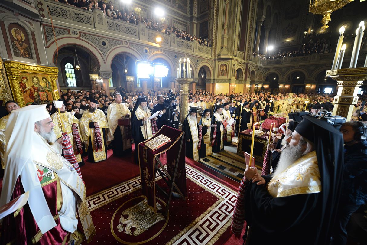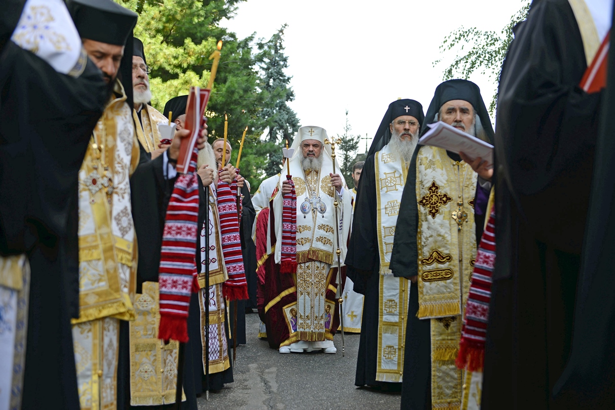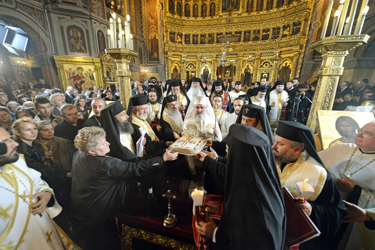 După Sfânta Liturghie s-a săvârşit slujba înmormântării de Preafericitul Părinte Patriarh Daniel alături de care au slujit următorii ierarhi: ÎPS Teofan, Arhiepiscopul Iaşilor şi Mitropolitul Moldovei şi Bucovinei, ÎPS Laurenţiu, Arhiepiscopul Sibiului şi Mitropolitul Ardealului, ÎPS Andrei, Arhiepiscopul Vadului, Feleacului şi Clujului şi Mitropolitul Clujului, Maramureşului şi Sălajului, ÎPS Serafim, Arhiepiscopul Ortodox Român al Germaniei, Austriei şi Luxemburgului şi Mitropolitul Ortodox Român al Germaniei, Europei Centrale şi de Nord , ÎPS Calinic, Arhiepiscopul Argeşului şi Muscelului, ÎPS Timotei, Arhiepiscopul Aradului, ÎPS Ioan, Arhiepiscop onorific, Episcopul Covasnei şi Harghitei, PS Lukian, Episcopul ortodox sârb al Ungariei şi administrator al Vicariatului ortodox sârb din Timişoara, PS Lucian, Episcopul Caransebeşului, PS Sofronie, Episcopul Ortodox Român al Oradiei, PS Nicodim, Episcopul Severinului şi Strehaiei, PS Gurie, Episcopul Devei şi Hunedoarei, PS Daniil, Episcop-locţiitor al Episcopiei Daciei Felix, PS Siluan, Episcopul Ortodox Român al Ungariei, PS Macarie, Episcopul Ortodox Român al Europei de Nord, PS Paisie Lugojeanul, Episcop-vicar al Arhiepiscopiei Timişoarei.