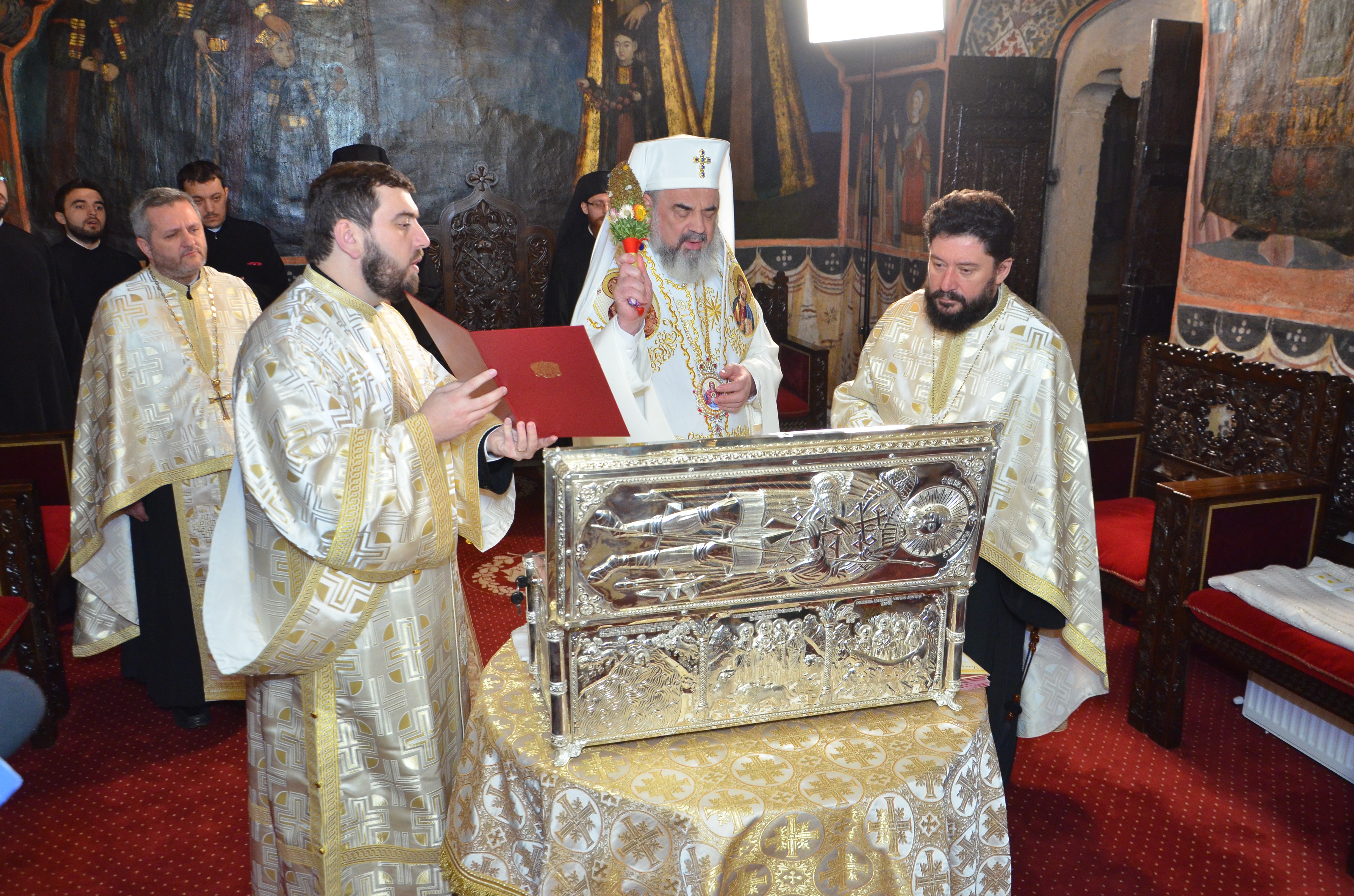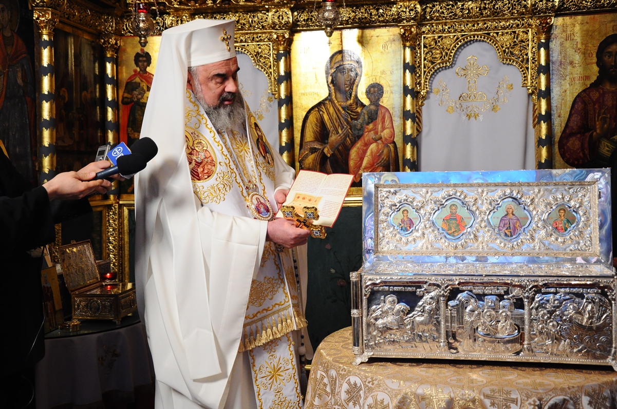 Noua raclă pentru moaştele sfinţilor ocrotitori ai Parohiei Iancu Vechi - Mătăsari a fost sfinţită de Patriarhul României (30 martie 2013)