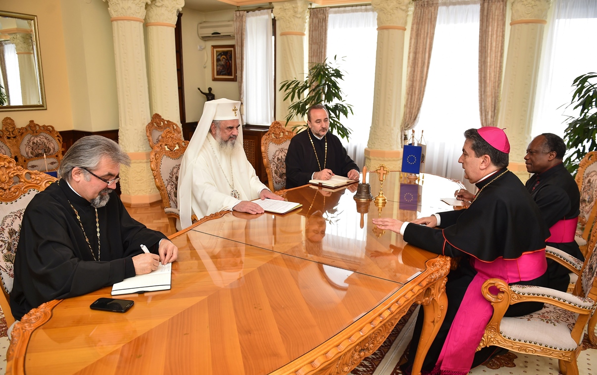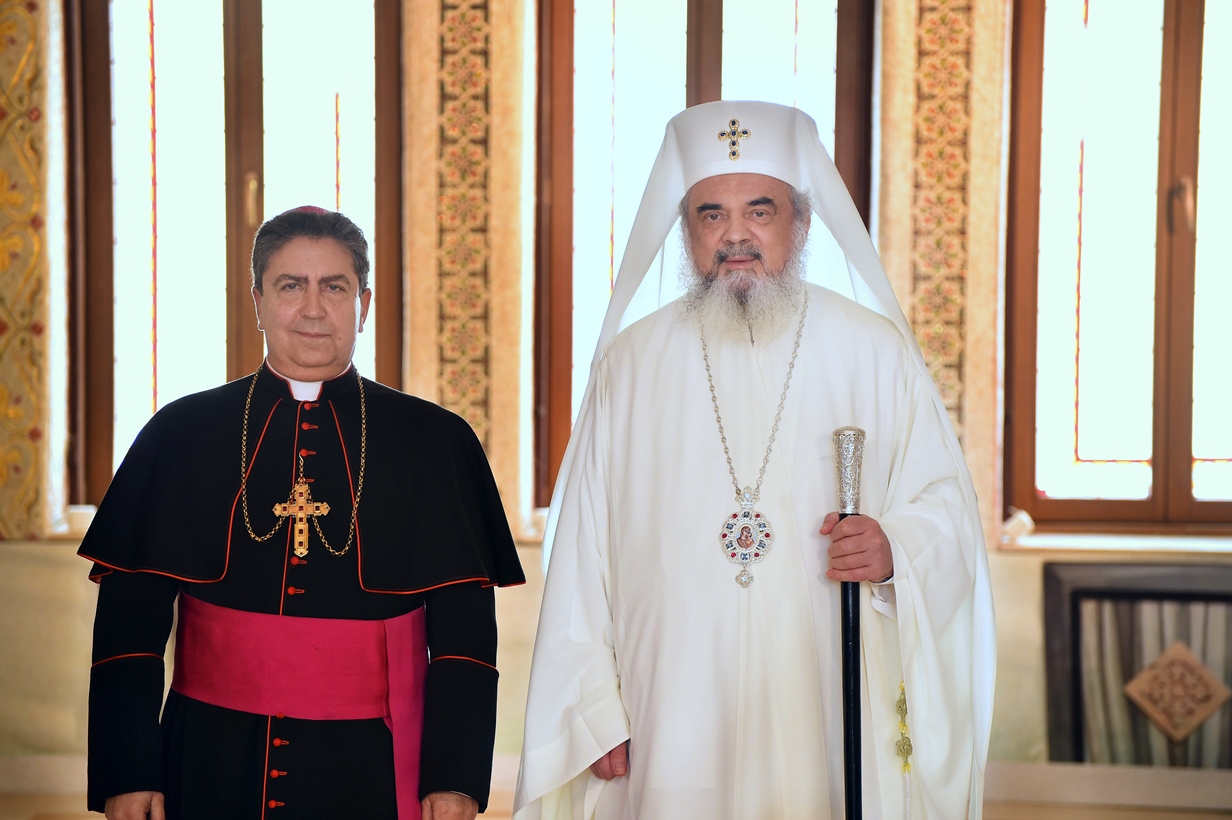 Preafericitul Părinte Patriarh Daniel a felicitat pe noul Nunţiu Apostolic la începutul misiunii diplomatice în România şi a exprimat recunoştinţa faţă de Biserica Romano-Catolică şi, personal, faţă de Sanctitatea Sa Papa Francisc pentru sprijinul acordat comunităţilor ortodoxe româneşti în diaspora occidentală prin oferirea în folosinţă a unor locaşuri de cult pentru slujire.