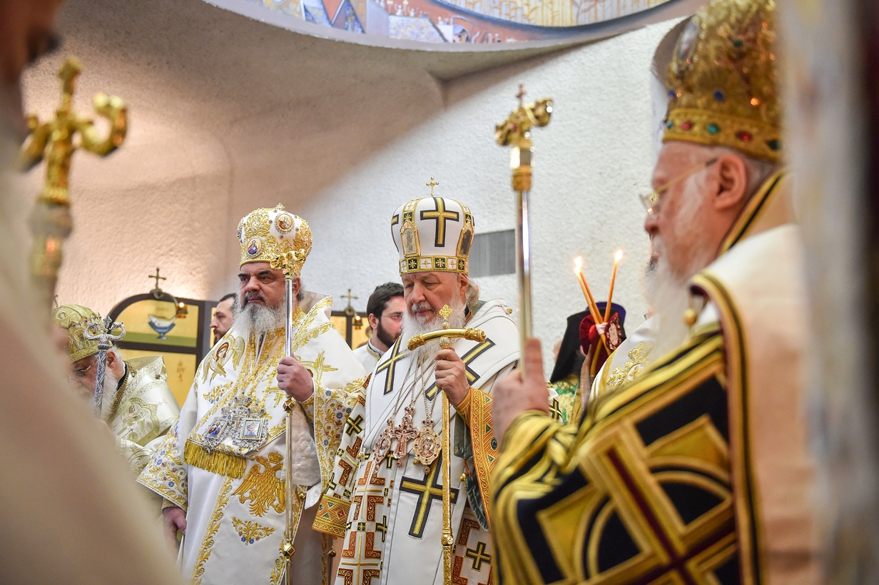 Sfânta slujbă a fost săvârşită de Sanctitatea Sa Bartolomeu, Patriarhul Ecumenic, împreună cu întâistătătorii tuturor Bisericilor Ortodoxe, între care s-a aflat şi Preafericitul Părinte Patriarh Daniel.