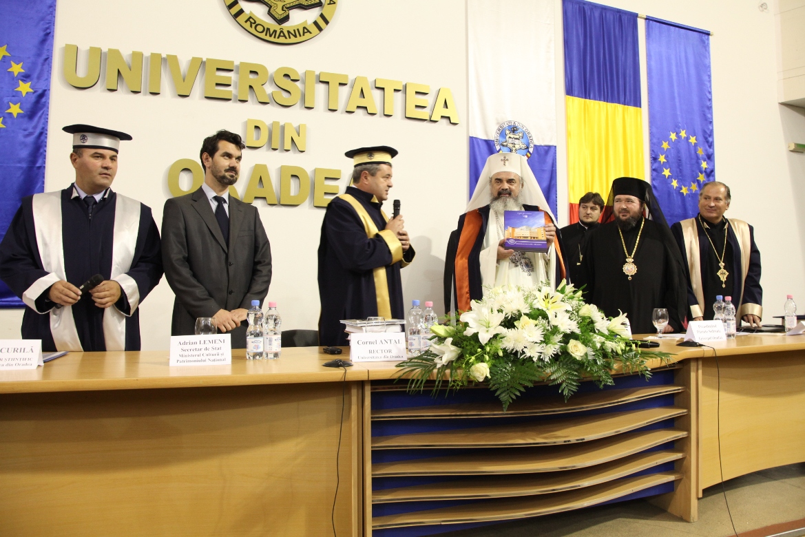 Septembrie > Întâistătătorul Bisericii Ortodoxe Române a primit titlul de „Doctor Honoris Causa” al Universităţii din Oradea (18 septembrie 2010)