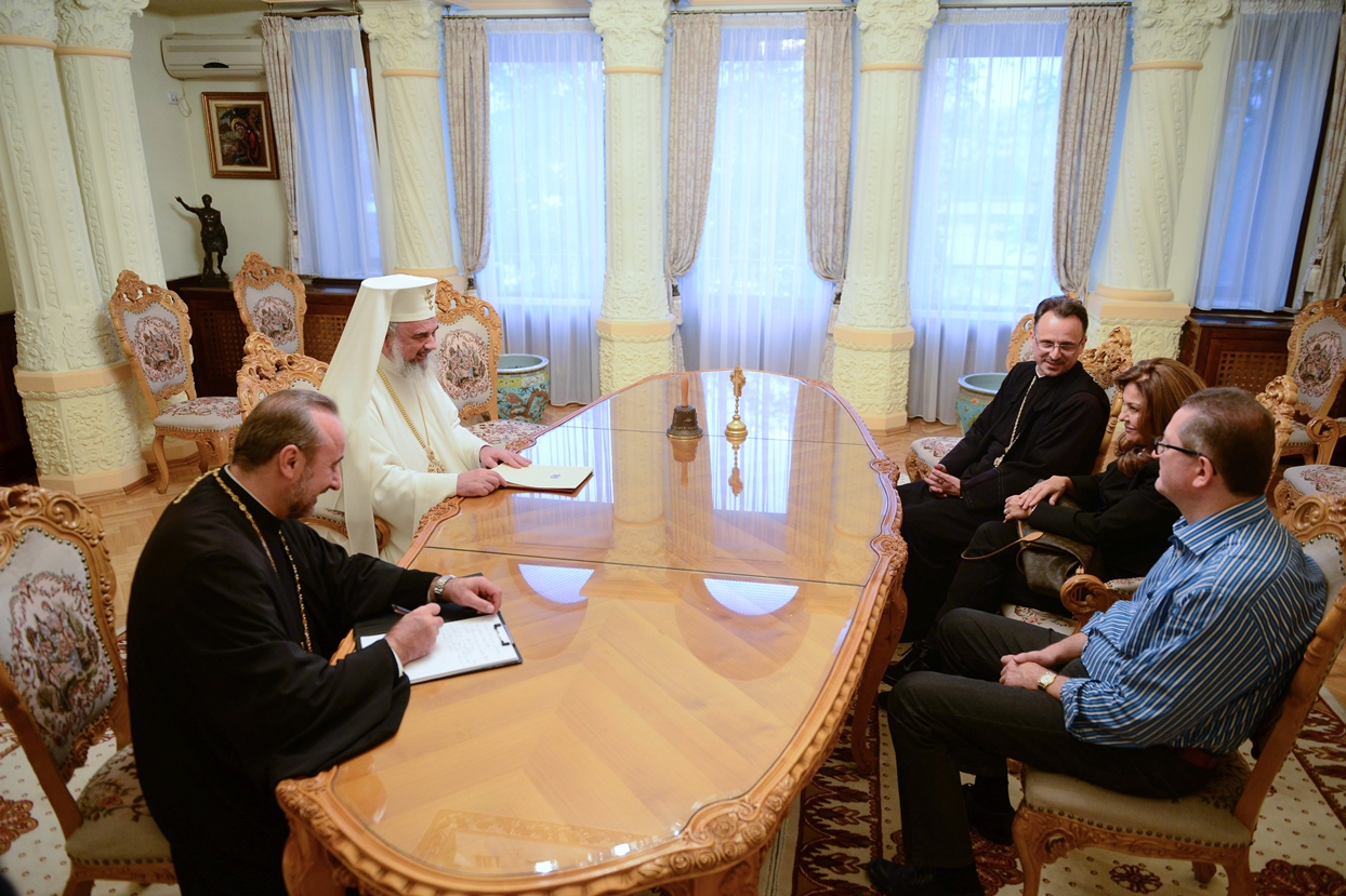 Preafericitul Părinte Daniel, Patriarhul României a primit astăzi, 26 octombrie 2014, vizita Doamnei Giovanna Iurato, Prefect în cadrul Ministerului de Interne Italian, Responsabila Departamentului pentru libertăţi civile şi imigraţie - Direcţia Centrală a Cultelor. Doamna Prefect a fost însoţită de părintele Gheorghe Militaru, consilier în cadrul Centrului eparhial din Roma şi de Domnul prof. univ. Giuseppe Giordan.