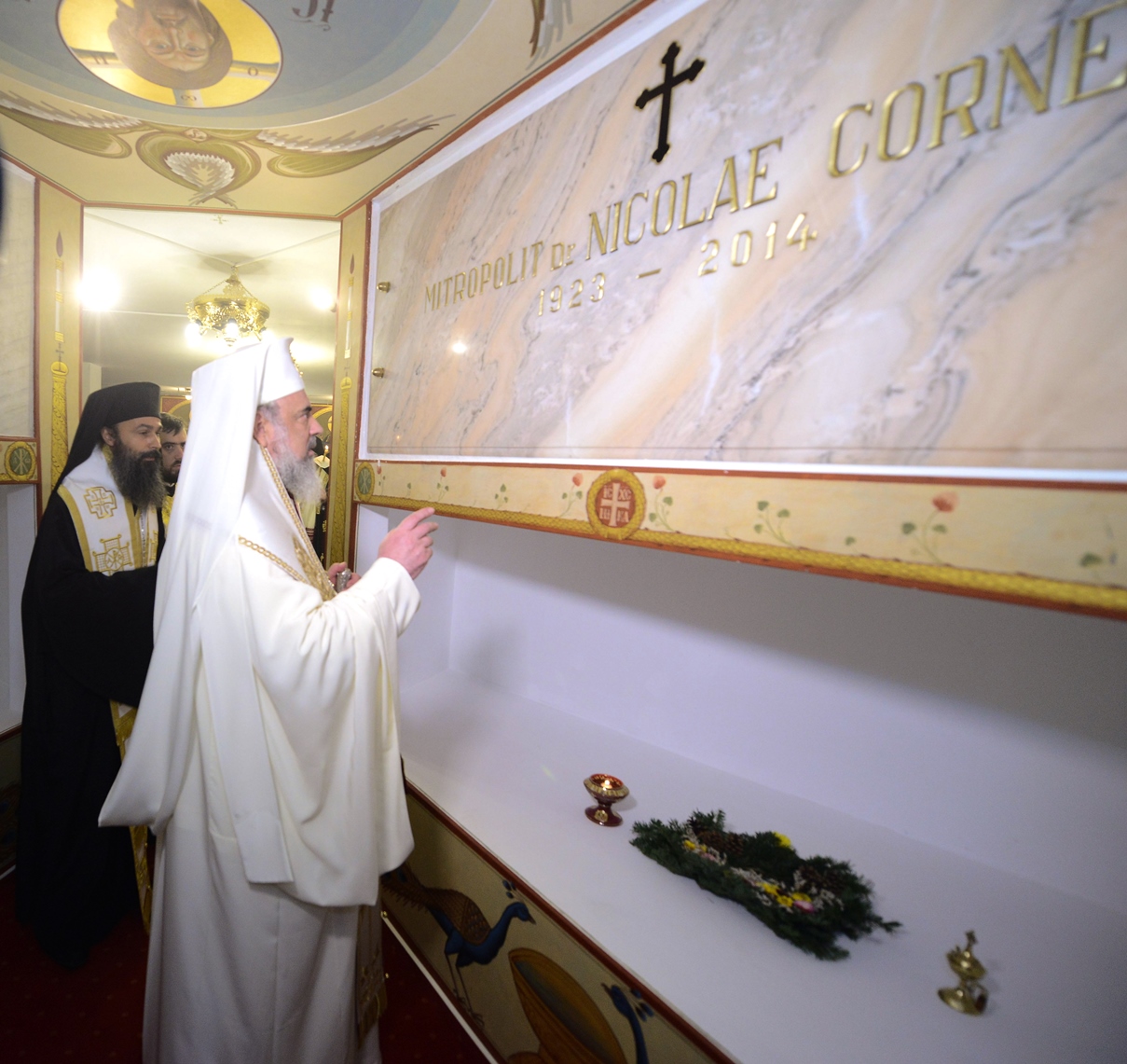 În încheierea manifestărilor comemorative, Patriarhul României înconjurat de soborul de ierarhi, preoţi şi diaconi a oficiat un Trisaghion la mormântul Mitropolitului Nicolae Corneanu, care se află în cripta de sub altarul Catedralei Mitropolitane din Timişoara.