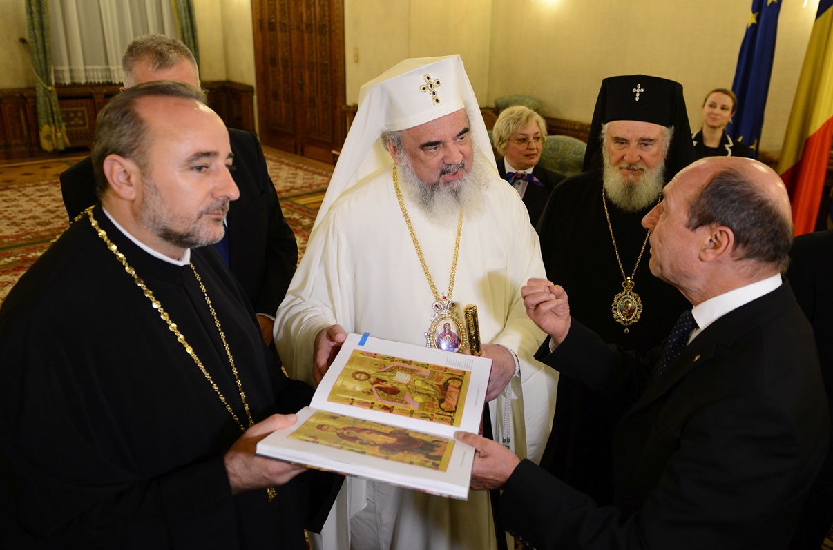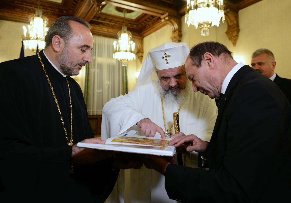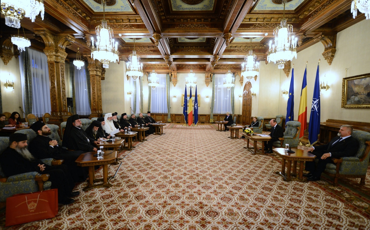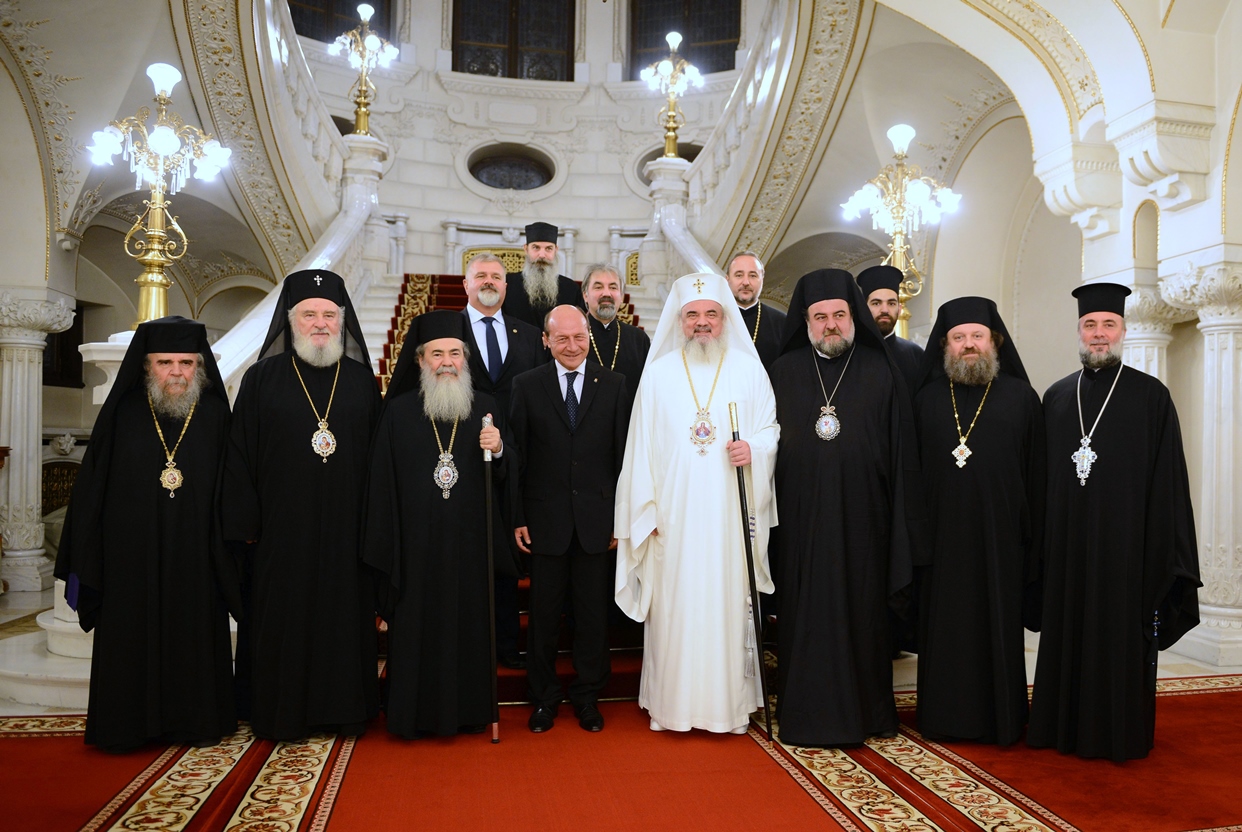 Preafericitul Părinte Teofil al III-lea, Patriarhul Ierusalimului și Preafericitul Părinte Daniel, Patriarhul României au fost primiţi astăzi, 25 octombrie 2014, la Palatul Cotroceni, de Președintele României, domnul Traian Băsescu.