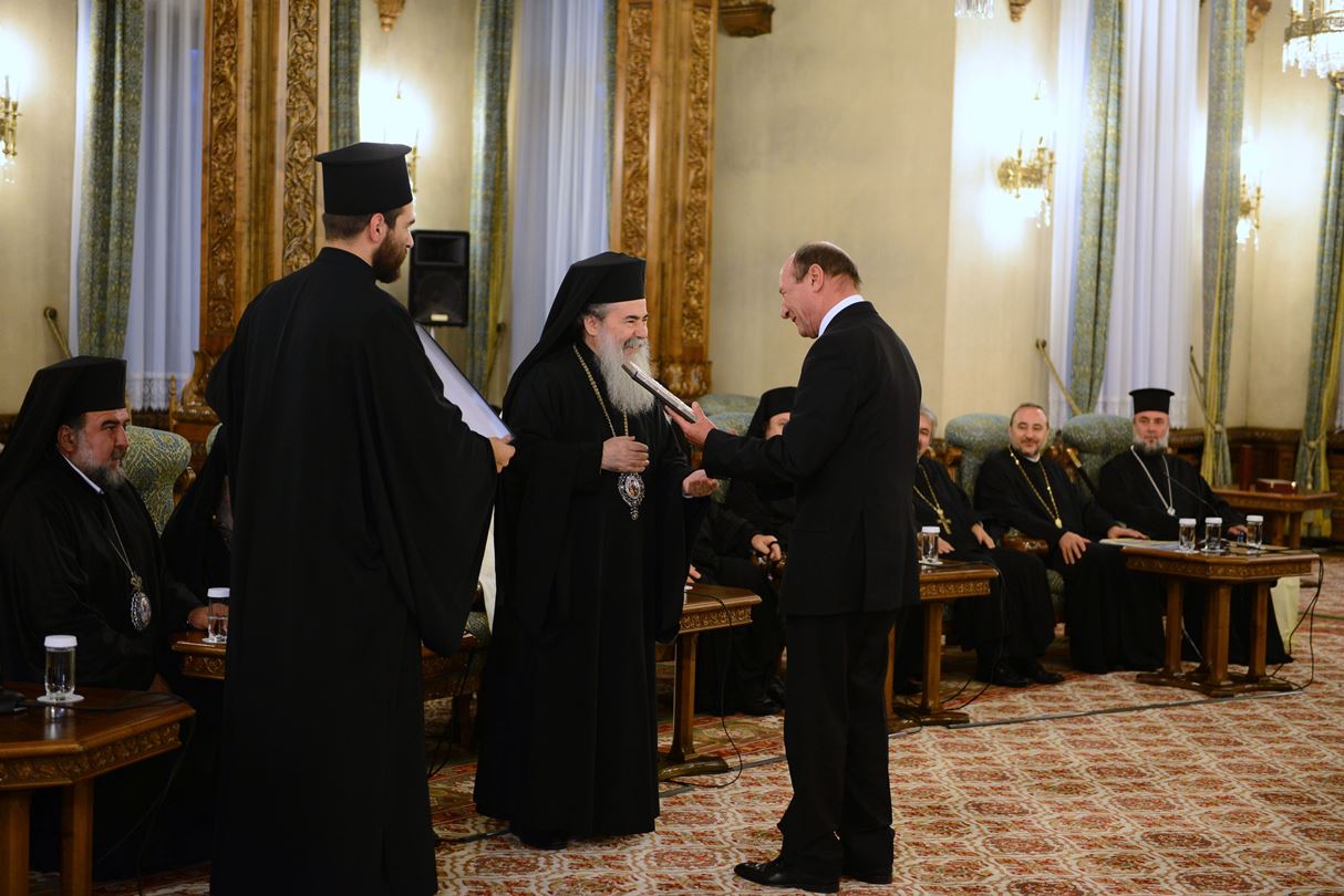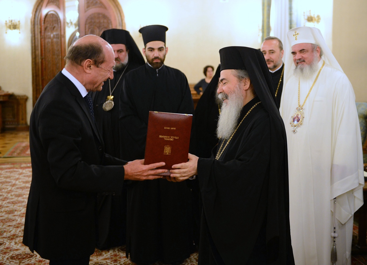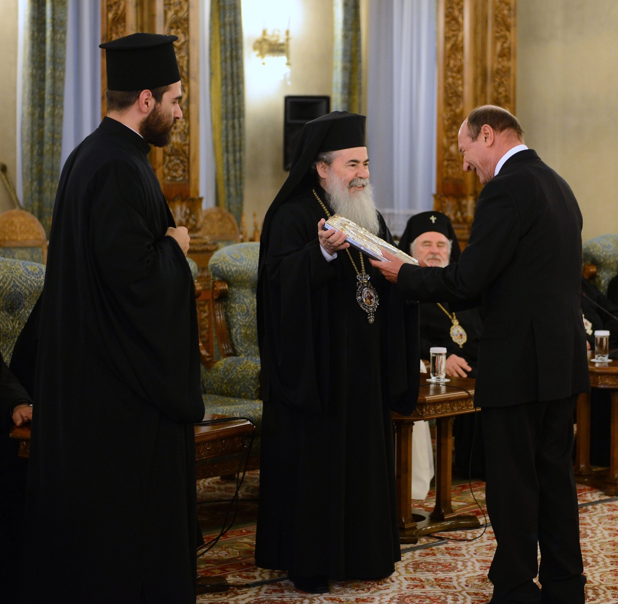 Patriarhul României i-a mulțumit președintelui pentru modul în care a încurajat, în toți acești ani, cooperarea dintre instituțiile statului și Biserică, adăugând faptul că vizita Preafericirii Sale Teofil al III-lea în România înseamnă foarte mult pentru credincioșii din țara noastră, confirmând, astfel, legăturile istorice și spirituale profunde care ne leagă de Locurile Sfinte.