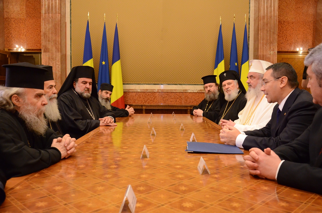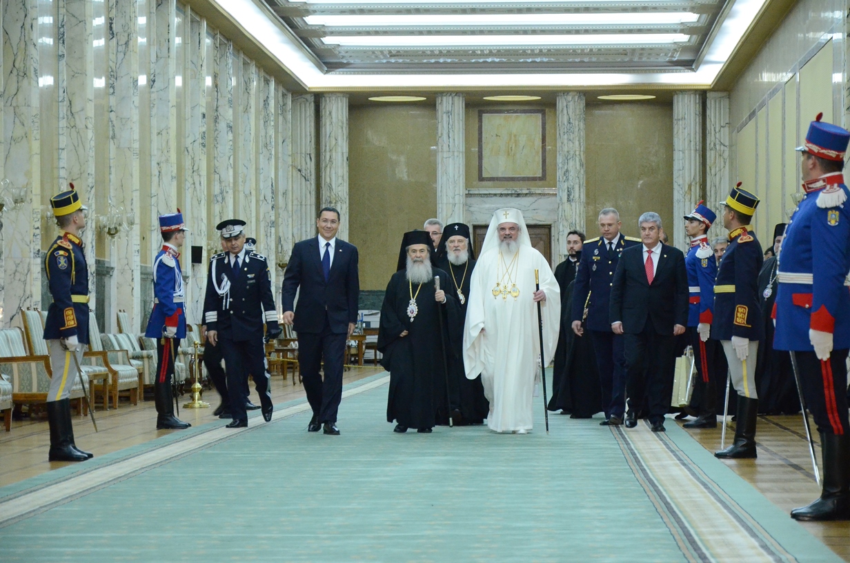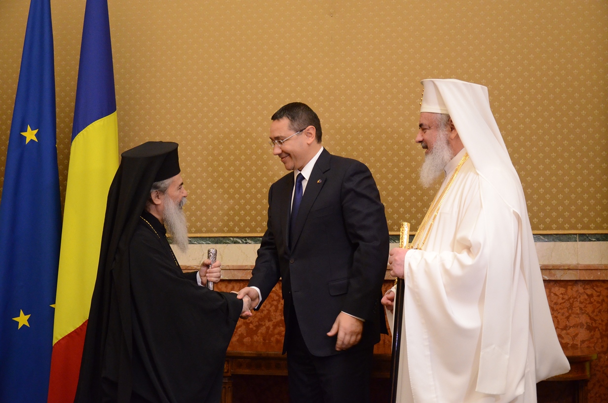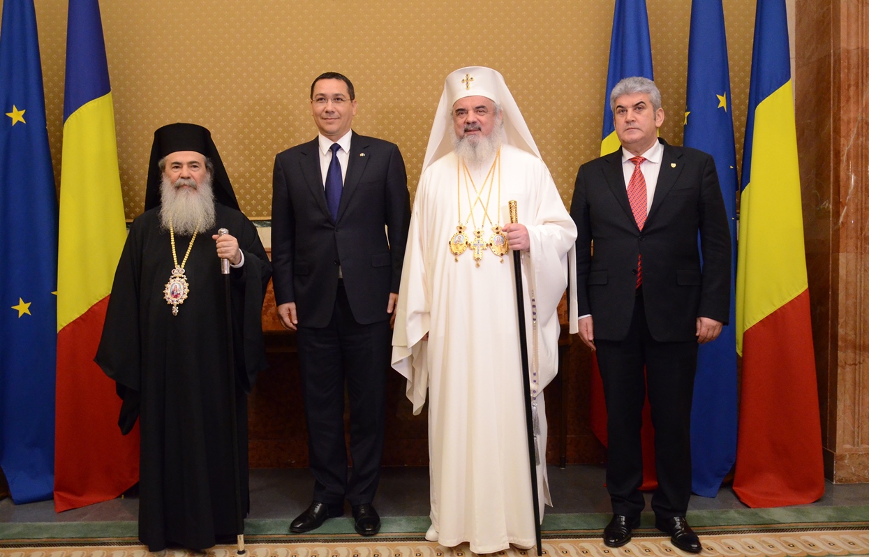 Patriarhul Ierusalimului și Patriarhul României au vizitat luni seară, 27 octombrie 2014, Palatul Victoria. Preafericitul Părinte Teofil al III-lea și Preafericitul Părinte Daniel s-au întâlnit cu premierul Victor Ponta, întrevedere în cadrul căreia s-a discutat și despre pelerinii care vizitează Țara Sfântă dar și despre frumusețea zilelor de sărbătoare de la București.