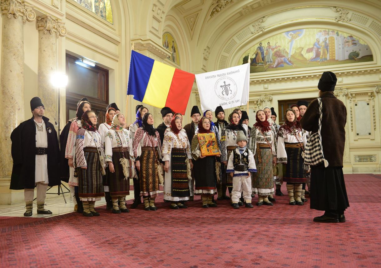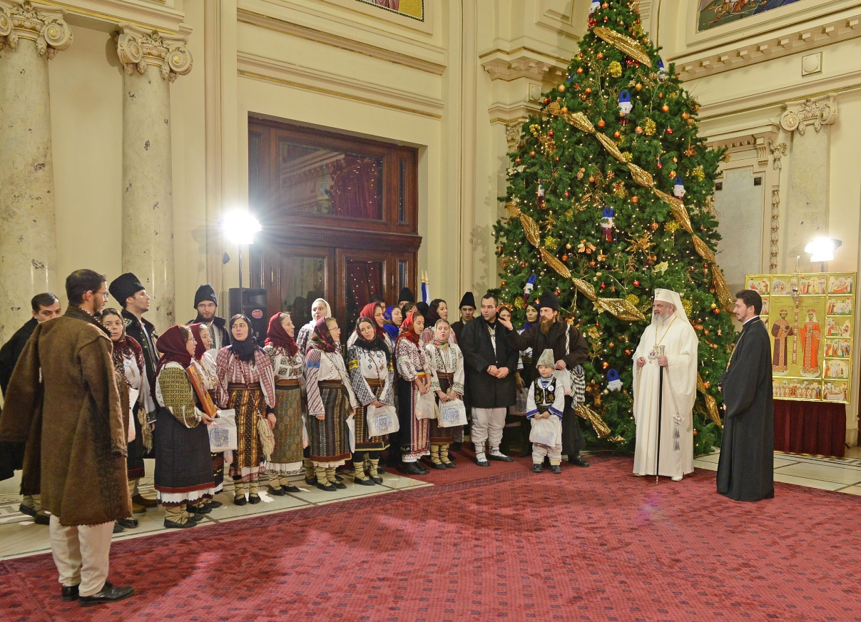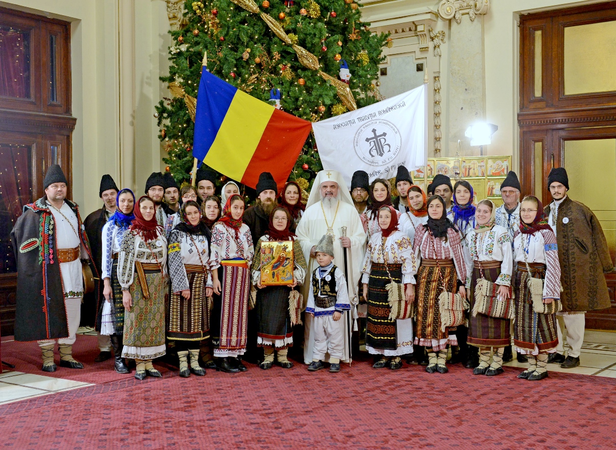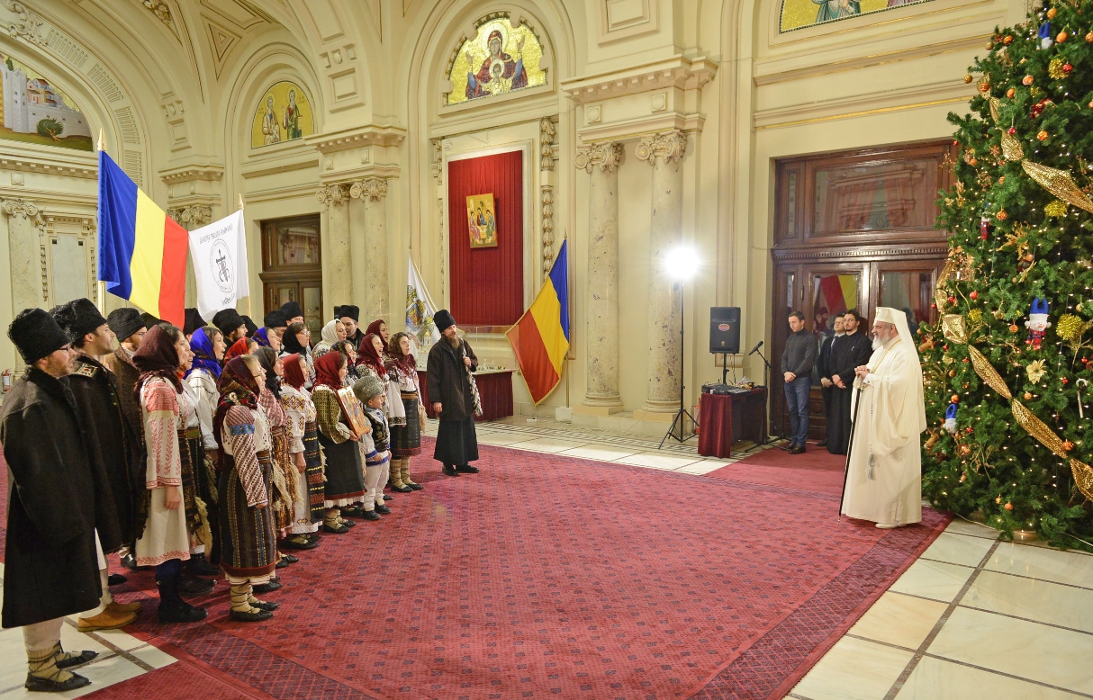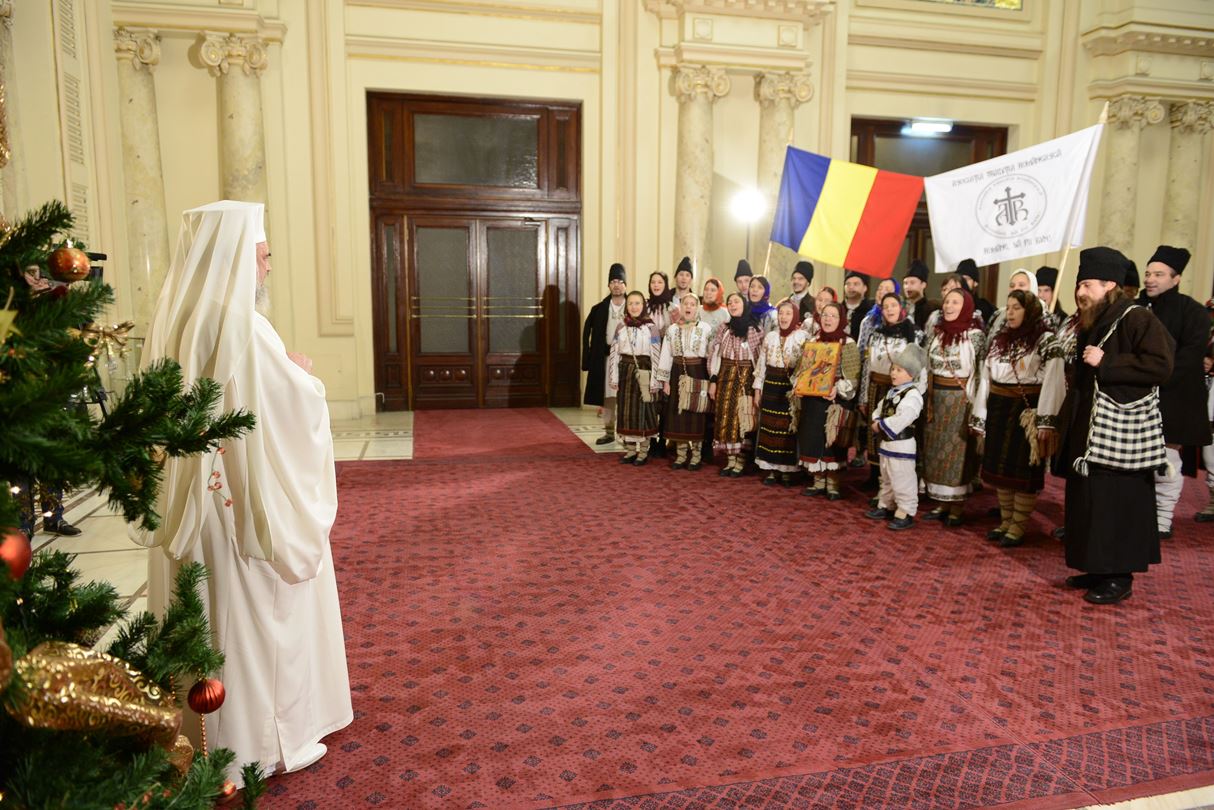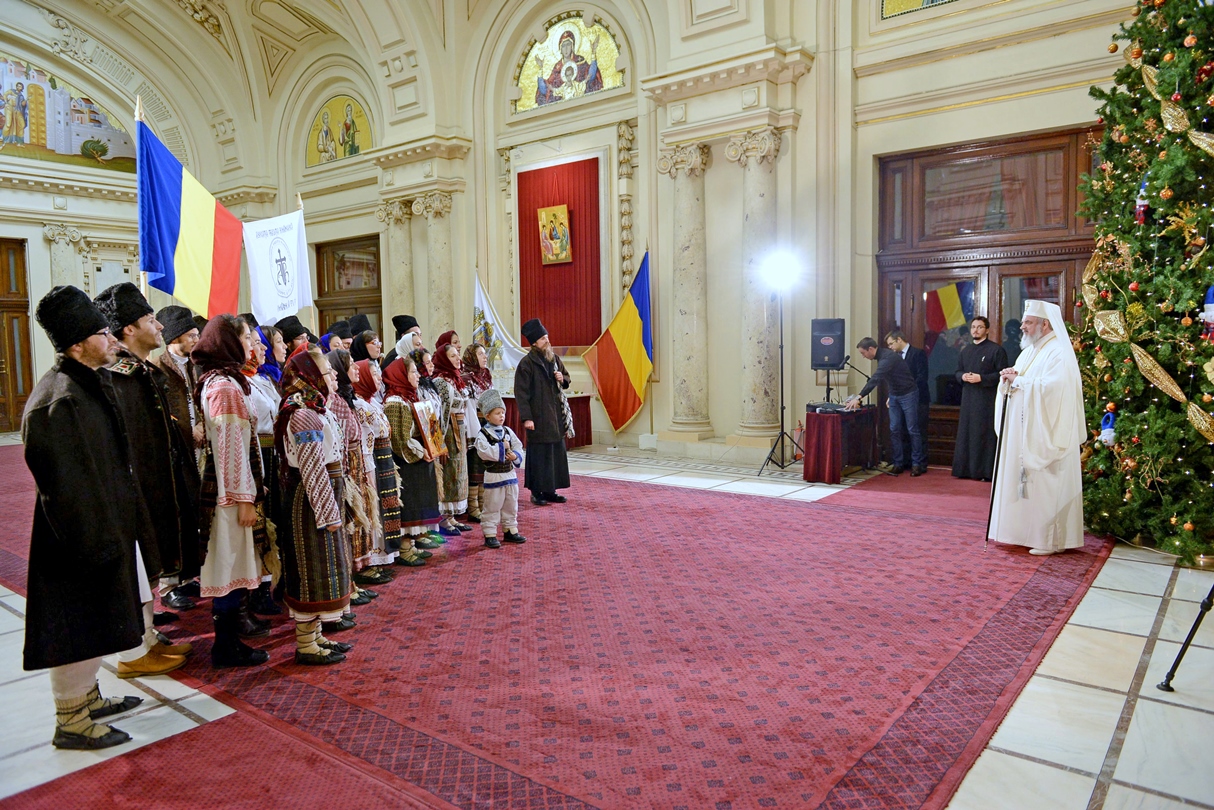 > Patriarhul României a fost colindat de grupul „Datina românească” (19 decembrie 2013)