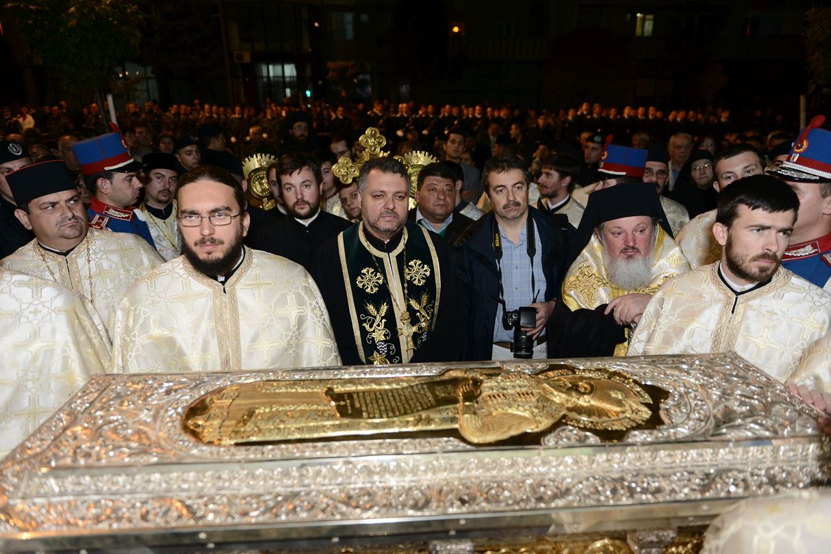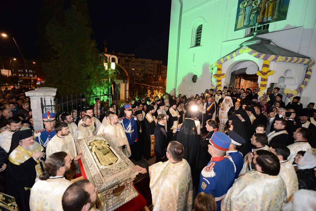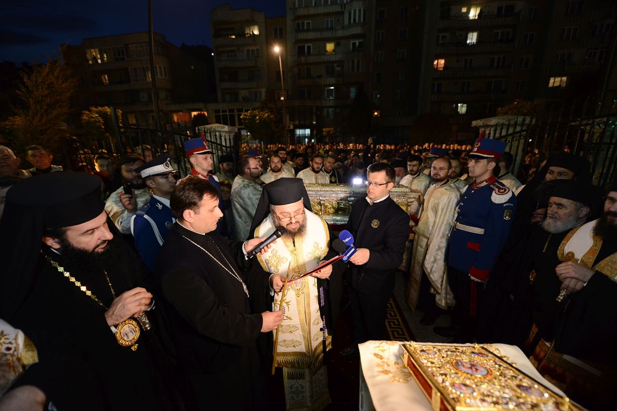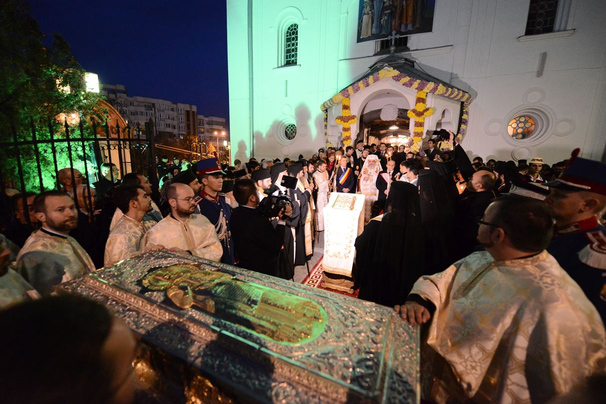 În continuare, Preafericitul Părinte Patriarh Daniel, soborul de ierarhi, preoţii şi credincioşii au întâmpinat racla cu sfintele moaşte ale Sfântului Voievod Constantin Brâncoveanu adusă de la Biserica „Sfântul Gheorghe” – Nou din București, de o delegație condusă de Preasfințitul Părinte Varlaam Ploieșteanul, Episcop-vicar patriarhal.