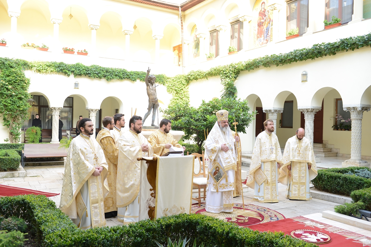 La această mare sărbătoare a Bisericii Ortodoxe, în altarul de vară din incinta Reşedinţei Patriarhale, Preafericitul Părinte Daniel, Patriarhul Bisericii Ortodoxe Române a oficiat Sfânta Liturghie, înconjurat de un sobor de preoţi şi diaconi.