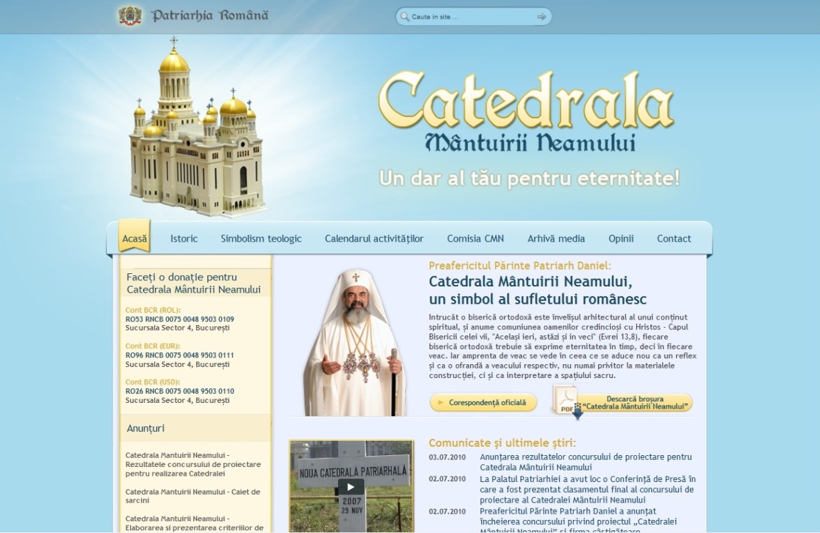 Iulie > Patriarhul României a premiat firmele participante la Concursul pentru construcţia Catedralei Mântuirii Neamului în Aula Magna "Teoctist Patriarhul" din Palatul Patriarhiei şi a lansat site-ul www.catedralaneamului.ro