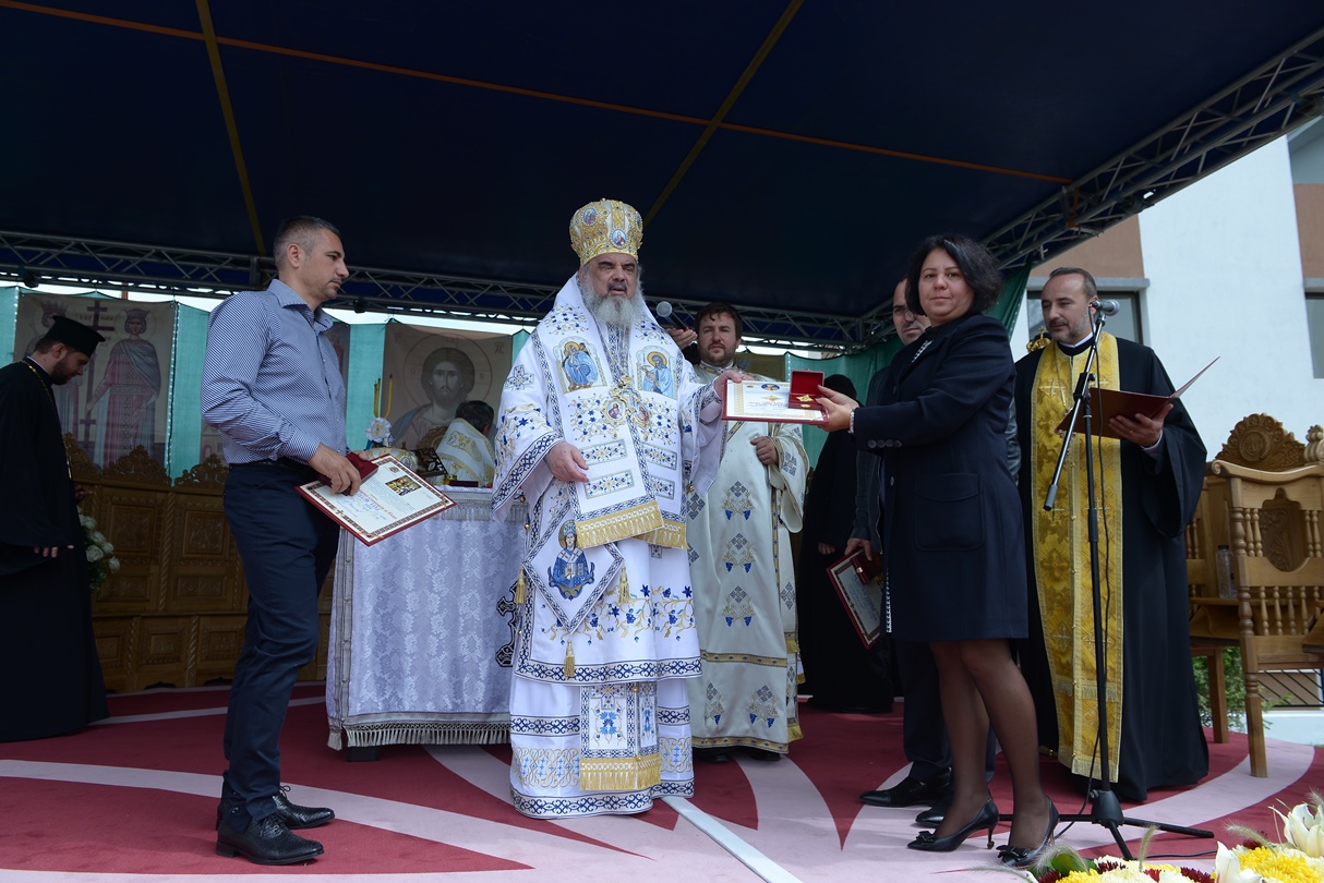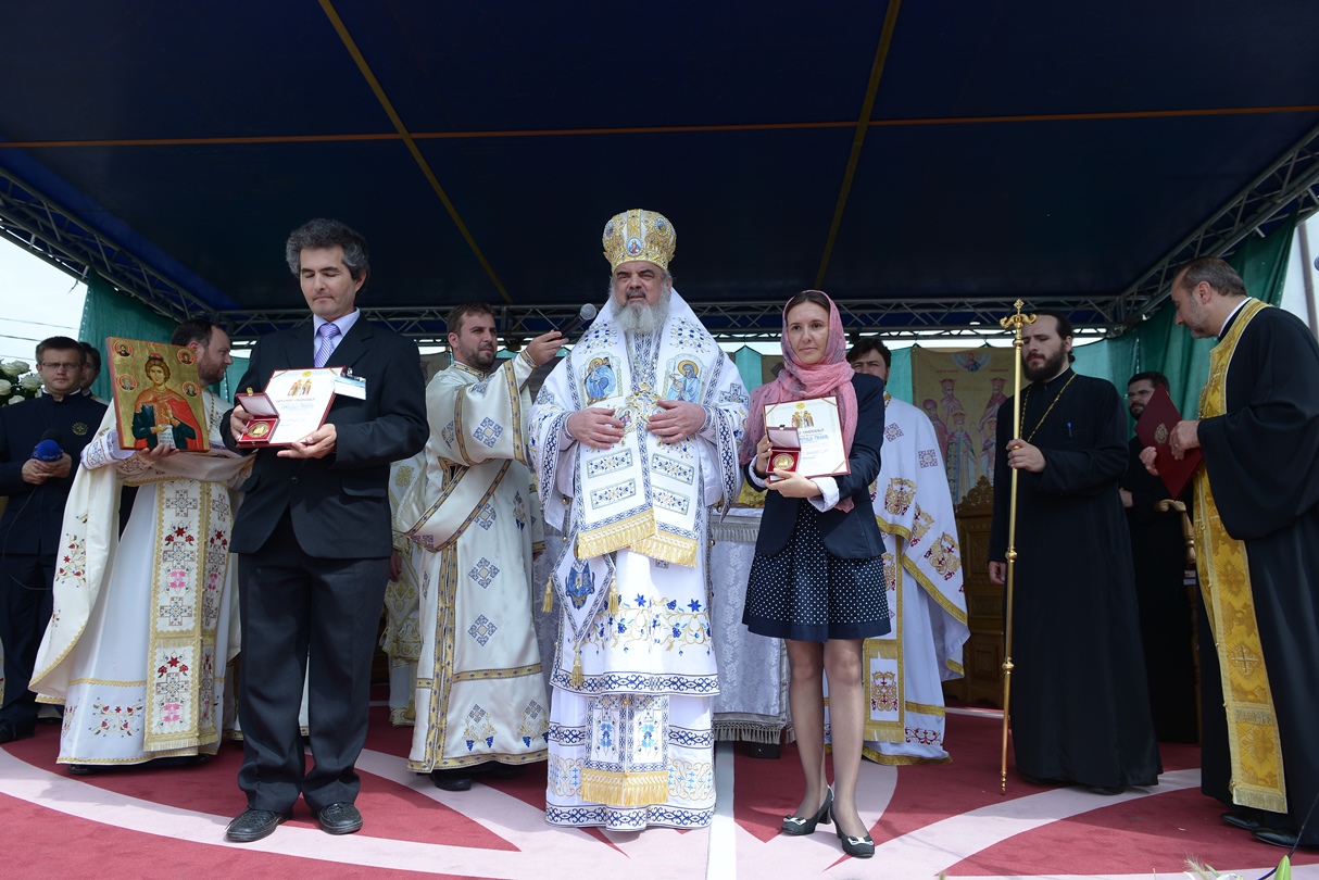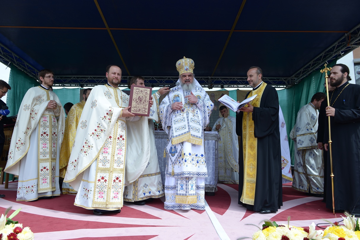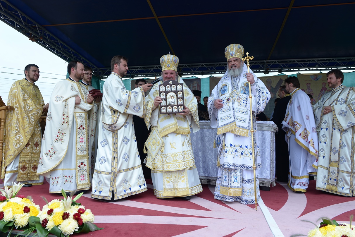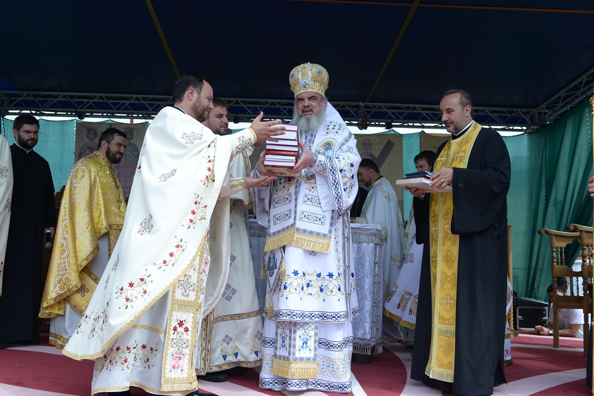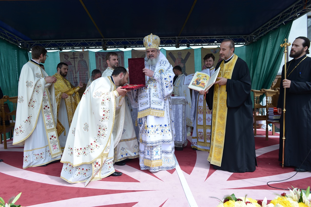 La rândul său, în semn de mulţumire, părintele paroh Narcis Mihail Ursuleasa a dăruit Preafericitului Părinte Daniel un omofor, o icoană cu chipul Sfântului Proroc Daniel şi un coş cu flori, iar Preasfinţitului Părinte Episcop Varlaam Ploieşteanul o icoană cu chipul Maicii Domnului, iar ctitorilor icoane ale Maicii Domnului, precum şi două Sfinte Scripturi.