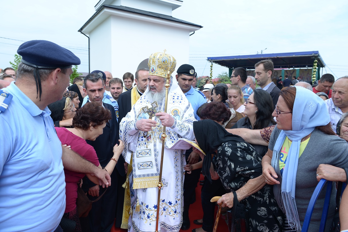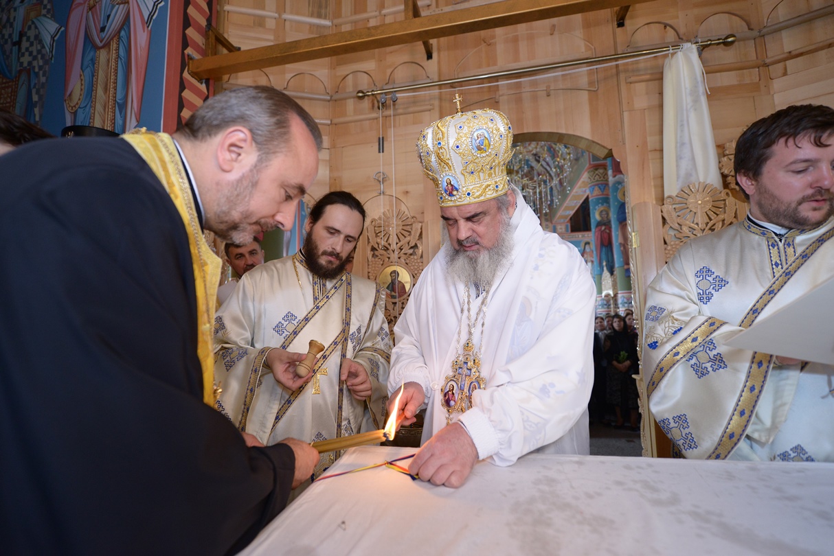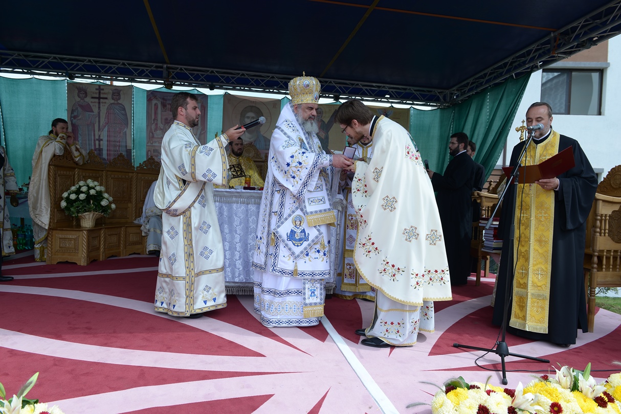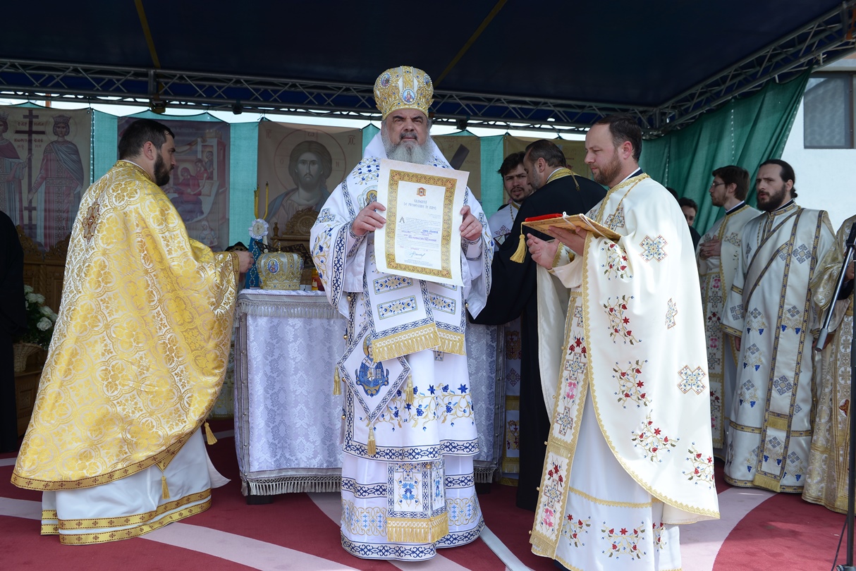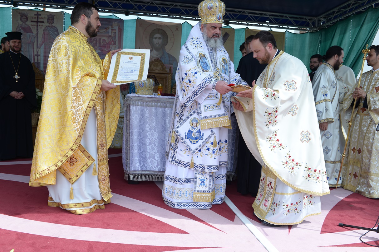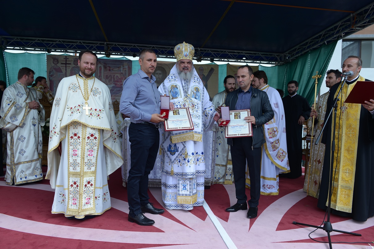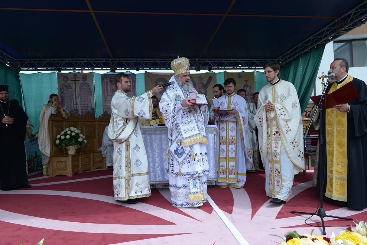 La rândul său, în semn de mulţumire, părintele paroh Narcis Mihail Ursuleasa a dăruit Preafericitului Părinte Daniel un omofor, o icoană cu chipul Sfântului Proroc Daniel şi un coş cu flori, iar Preasfinţitului Părinte Episcop Varlaam Ploieşteanul o icoană cu chipul Maicii Domnului, iar ctitorilor icoane ale Maicii Domnului, precum şi două Sfinte Scripturi.