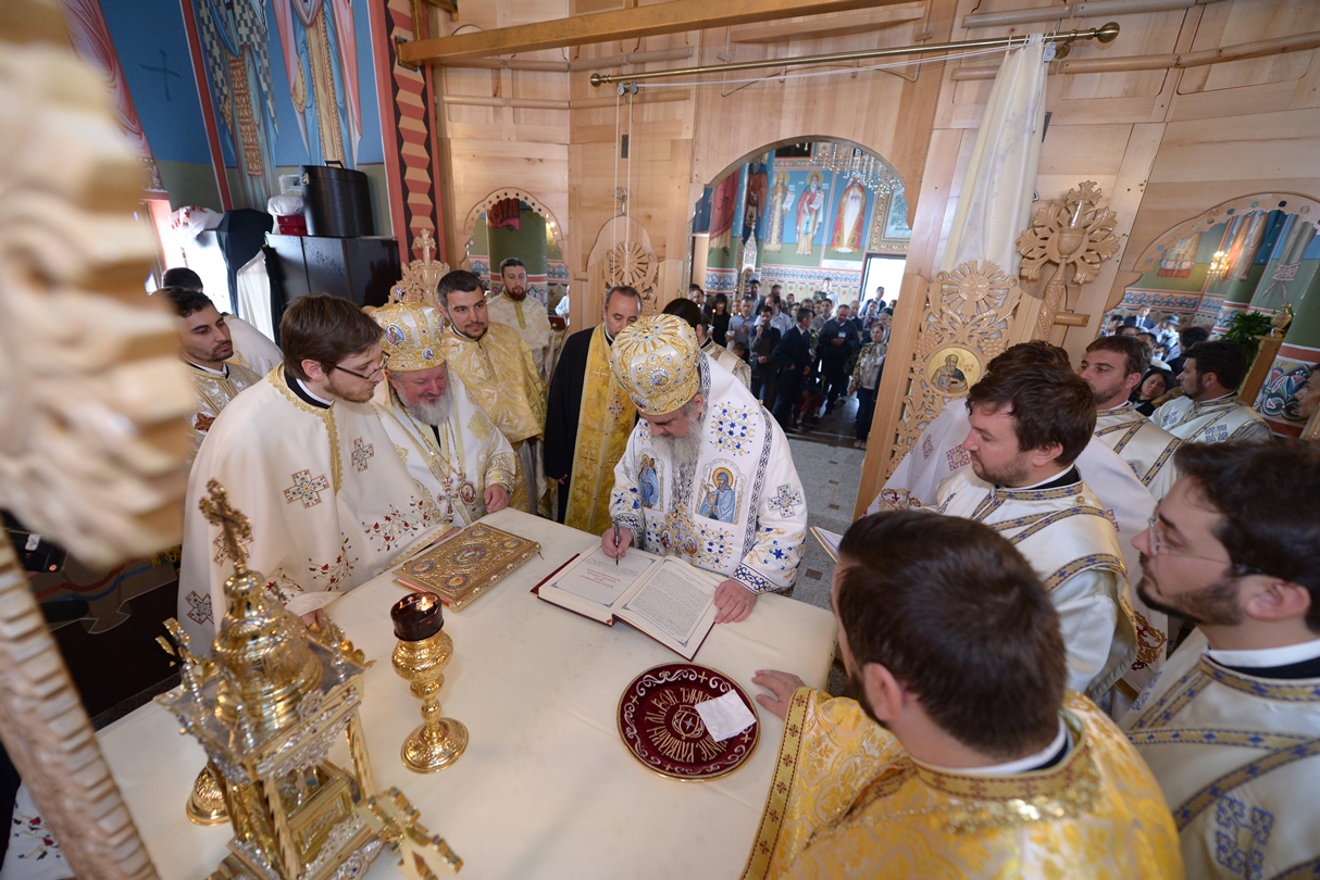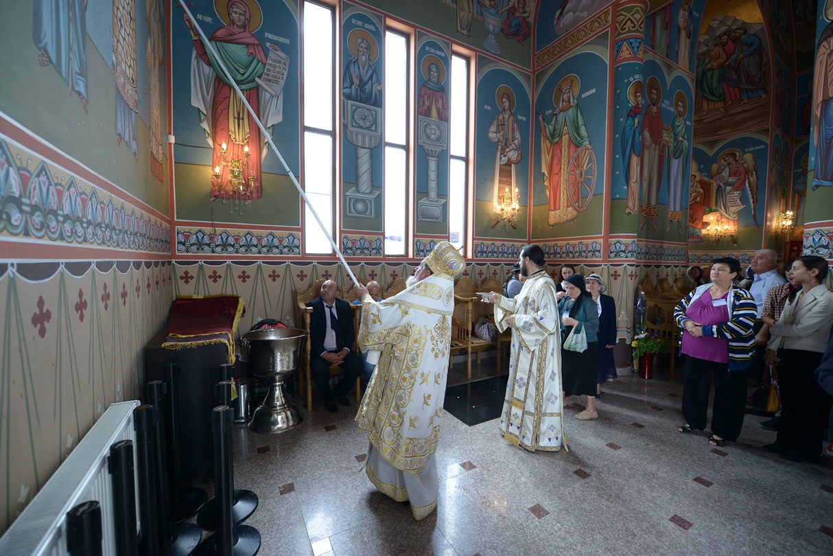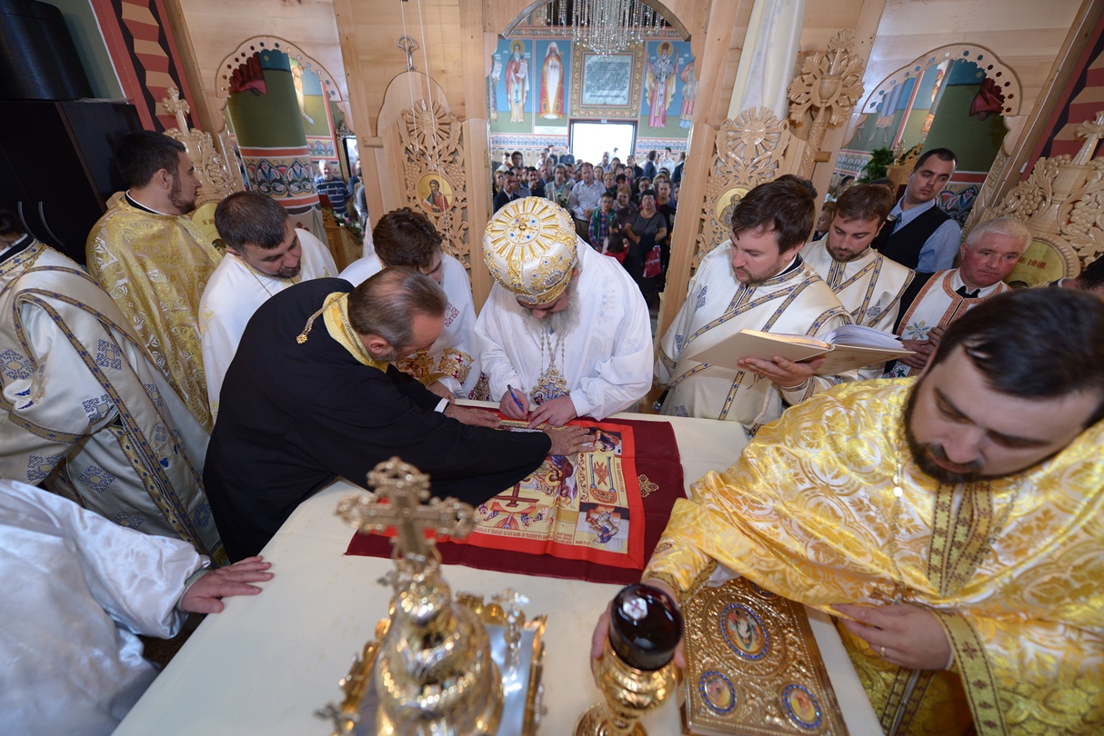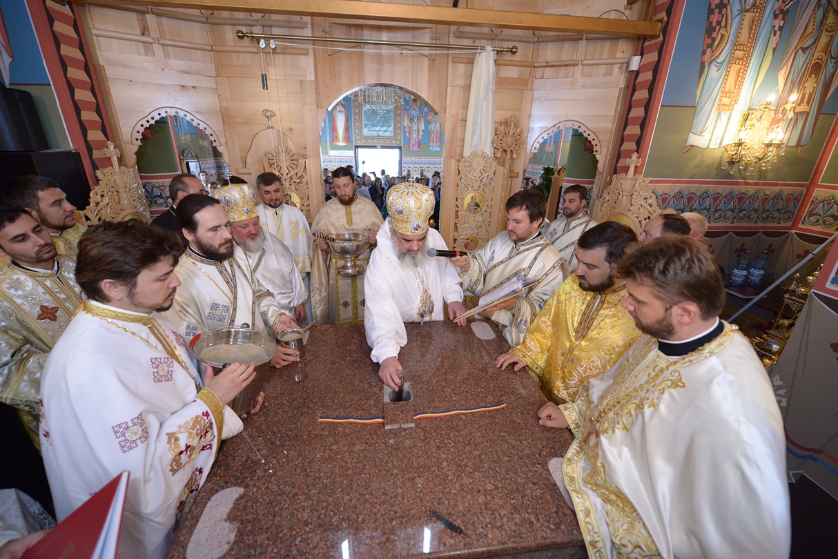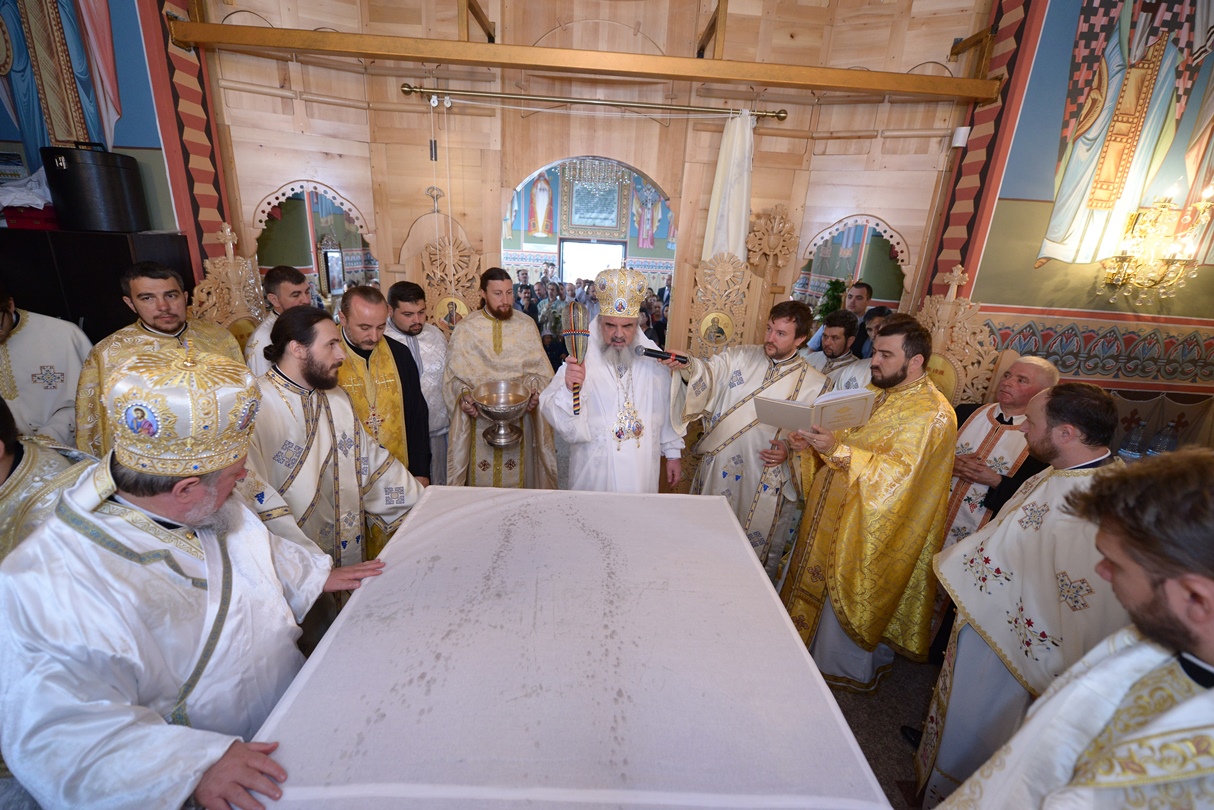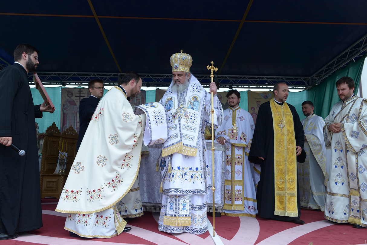 La rândul său, în semn de mulţumire, părintele paroh Narcis Mihail Ursuleasa a dăruit Preafericitului Părinte Daniel un omofor, o icoană cu chipul Sfântului Proroc Daniel şi un coş cu flori, iar Preasfinţitului Părinte Episcop Varlaam Ploieşteanul o icoană cu chipul Maicii Domnului, iar ctitorilor icoane ale Maicii Domnului, precum şi două Sfinte Scripturi.