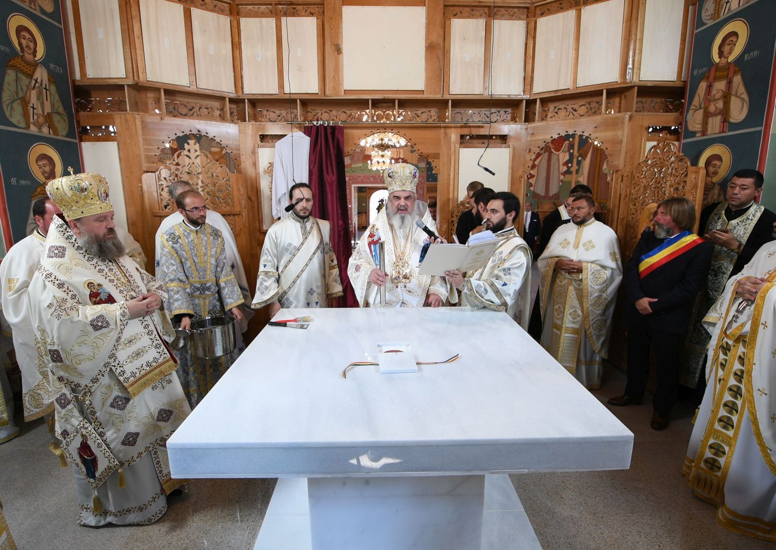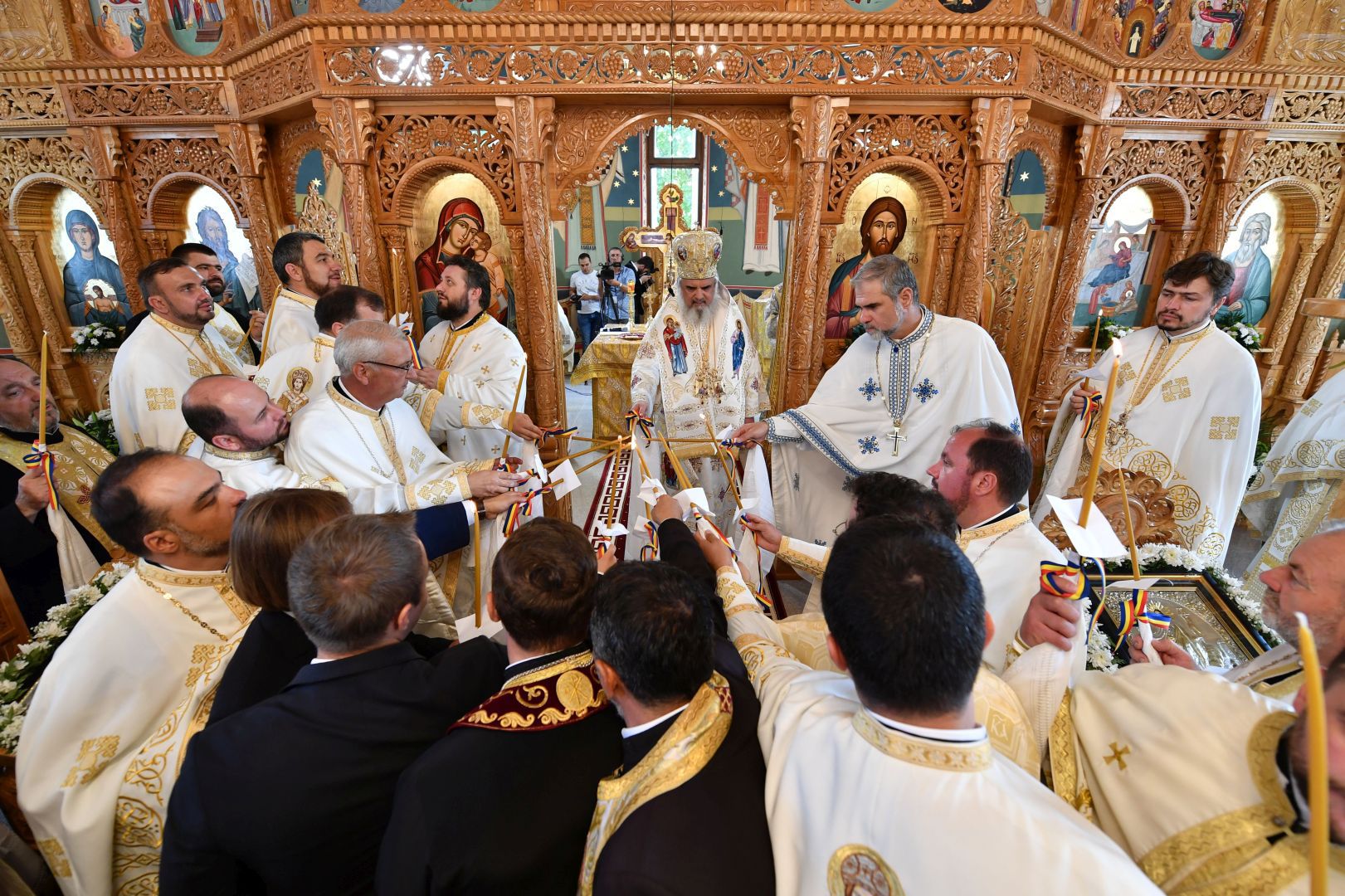 Această biserică este o mare binecuvântare, pentru că sfinţirea unei biserici înseamnă deschiderea unei noi porţi a Cerului. Sfinţirea unei biserici este binecuvântare pentru parohia respectivă, dar şi pentru toată zona. Este o lucrare anevoioasă, dar după sfinţire rămâne bucuria că am făcut ceva care durează mai mult decât viaţa noastră, ceva care rămâne după noi şi dincolo de noi. De aceea, ctitorii sunt pomeniţi în Biserica Ortodoxă ca fiind «fericiţii şi pururea pomeniţii ctitori». Ei vor fi pomeniţi şi când nu mai au pe nimeni din neamul lo,r pentru că vor fi pomeniţi aici la toate slujbele care se săvârşesc în această biserică. Este o mare binecuvântare să fii ctitor de biserică şi să fi contribuit la zidirea şi pictarea ei, a spus Preafericirea Sa.