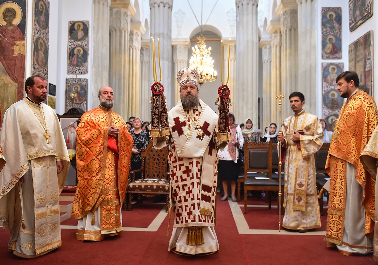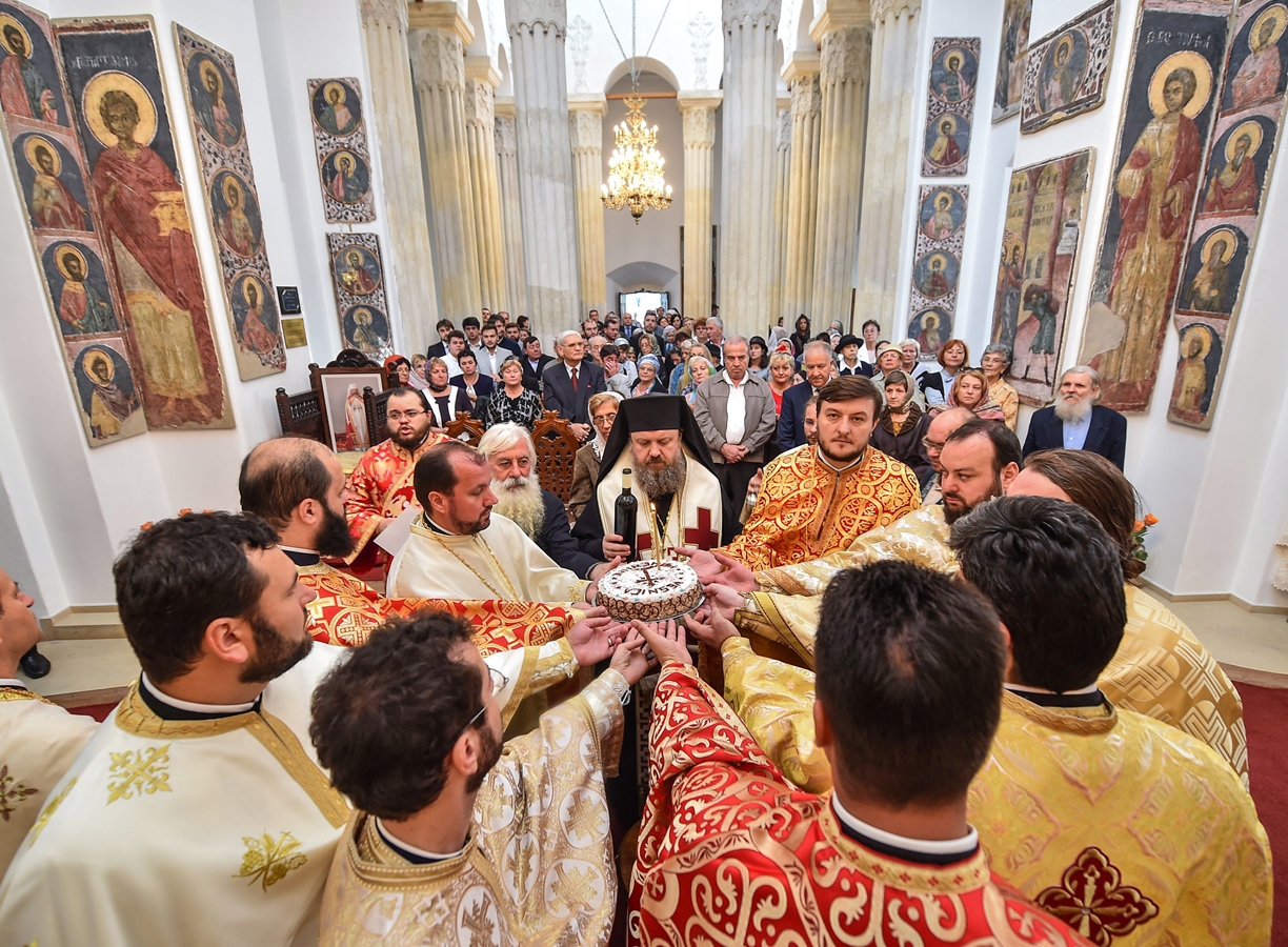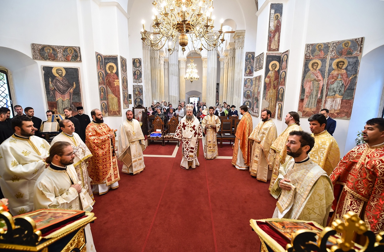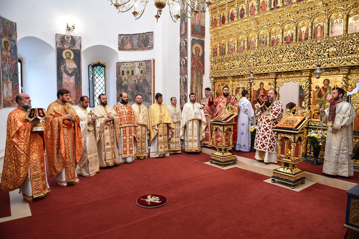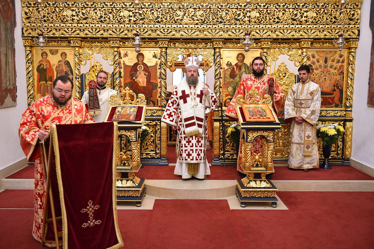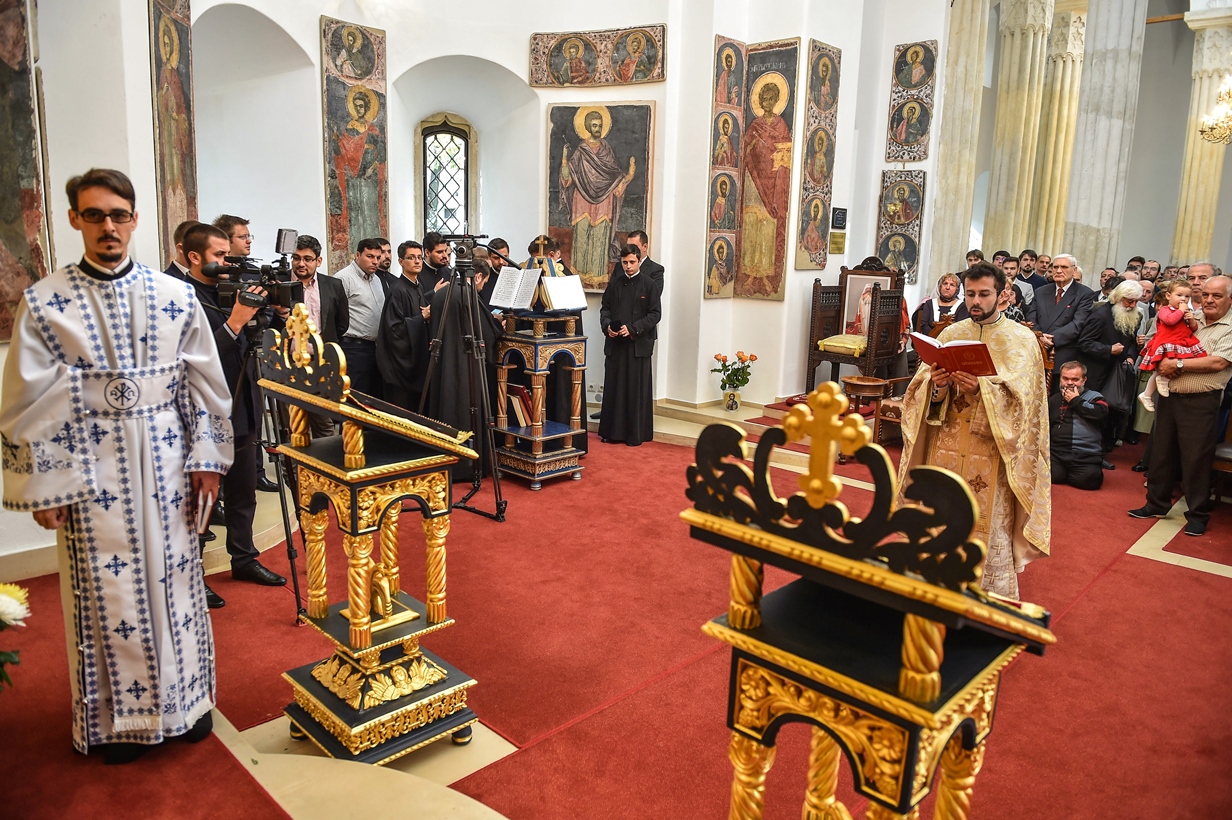 Slujba de sfinţire a fost precedată de Sfânta Liturghie care a fost oficiată de Preasfinţitul Părinte Timotei, Episcop-vicar al Arhiepiscopiei Bucureştilor, înconjurat de un sobor de preoţi şi diaconi. În cadrul Sfintei Slujbe, Preasfinţia Sa a hirotonit întru Preot pe Diac. Cornel Enache, reporter la Radio TRINITAS, şi întru Diacon pe tânărul teolog Gheorghe Anghel, secretar eparhial la Agenţia de ştiri Basilica a Patriarhiei Române.