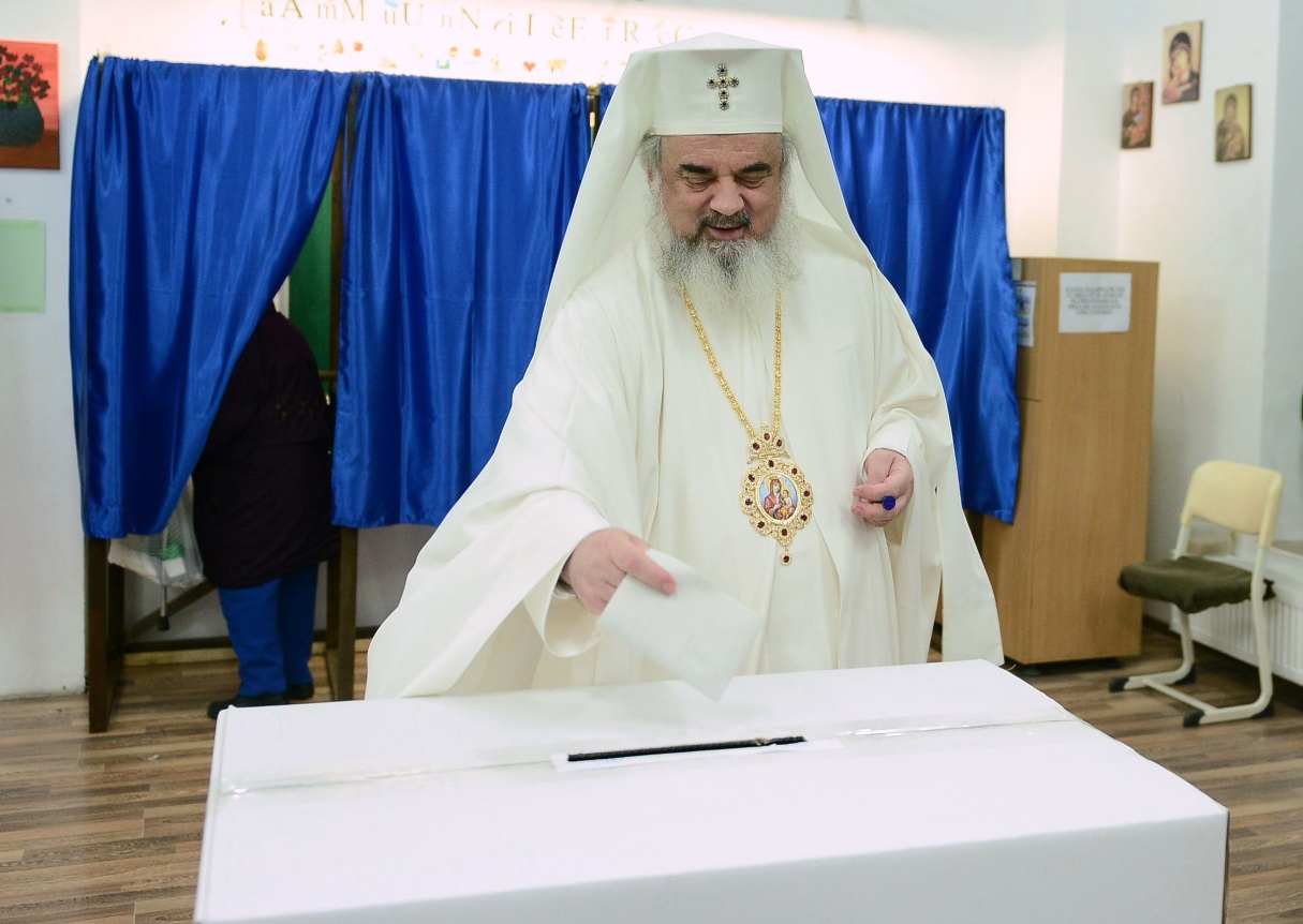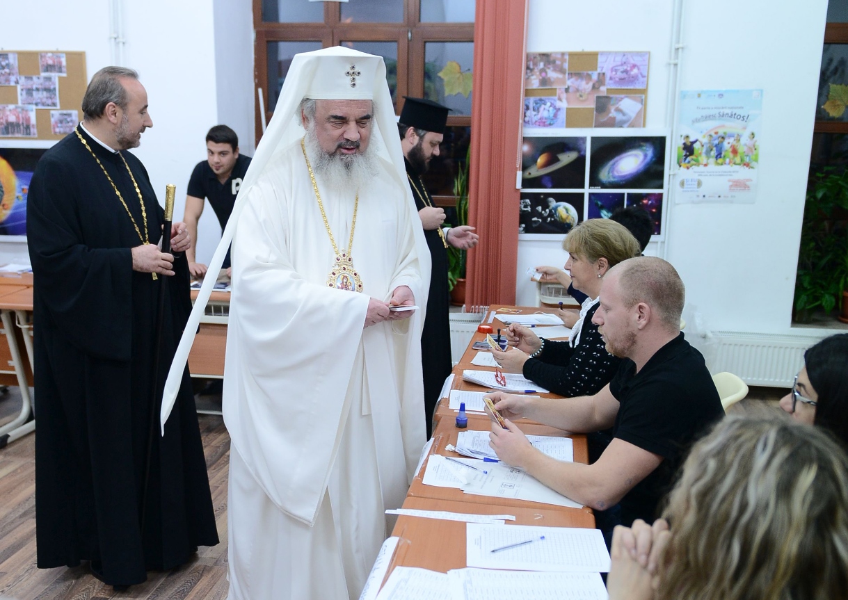 Preafericitul Părinte Daniel, Patriarhul Bisericii Ortodoxe Române, a votat în această seară, în jurul orelor 17:00, la secția de votare numărul 644 din cadrul Școlii Nr. 74 - "Ienăchiță Văcărescu" din București.
